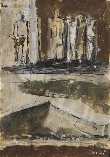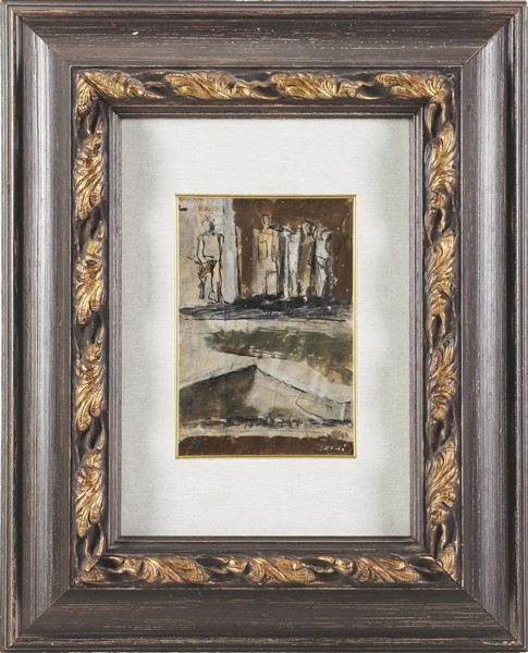 Mario Sironi "Composizione con figure e montagne" 1942 circa tempera, china e ma