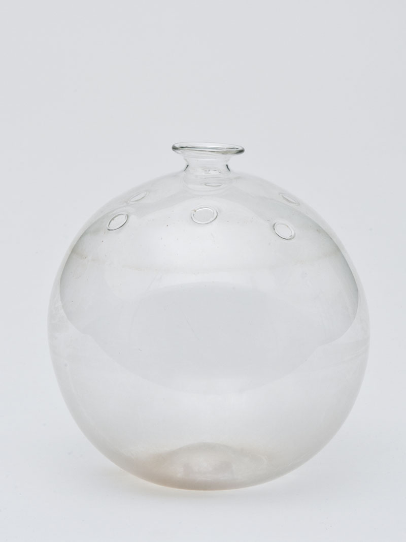 Manifattura di Murano - Piccolo vaso sferoidale portafiori in vetro cristallo soffiato. Anni 30/40 del sec XX (h cm 15)
