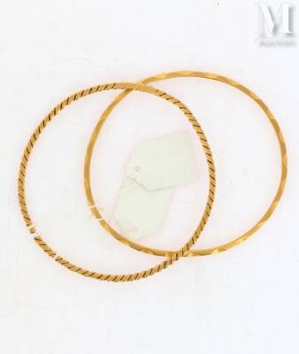 Deux bracelets en or jaune 18k (750 millièmes), l'un torsadé, l'autre à décor ciselé.