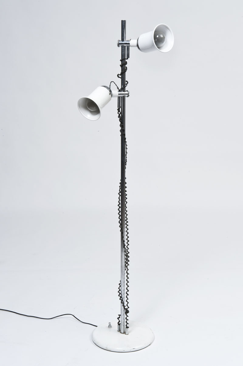 Lampada da terra in acciaio cromato e laccato bianco. Produzione italiana anni '60 (difetti)