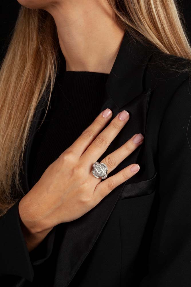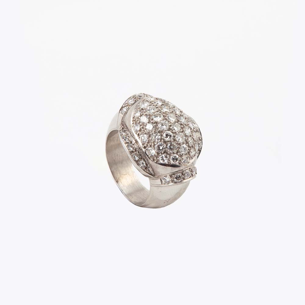 Lotto 133 | Anello a cupola in oro e brillanti Misura 16 Oro bianco 750/000. Diamanti ct....
