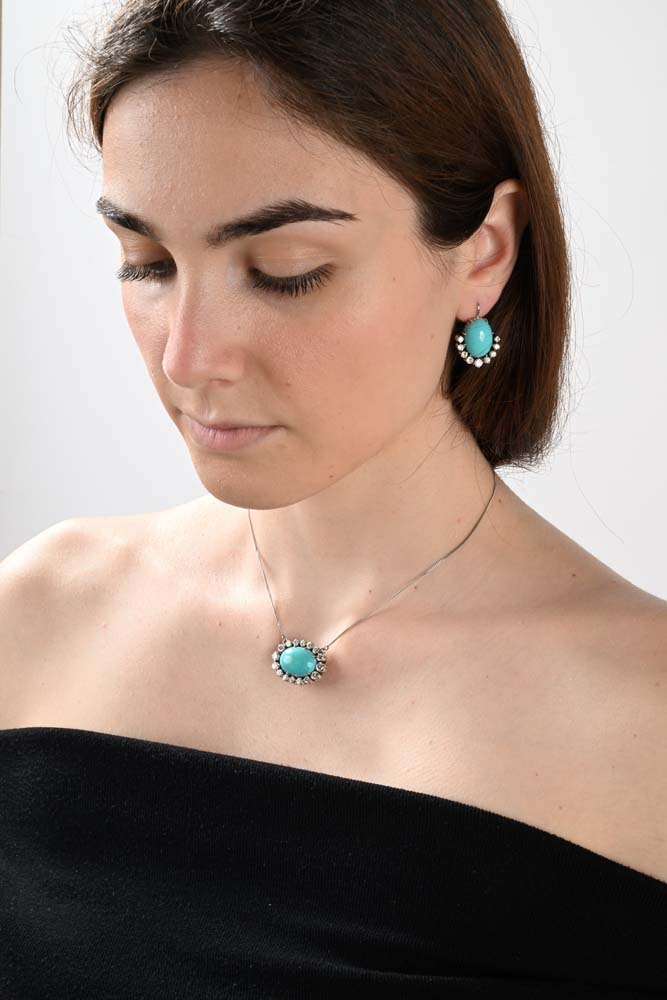 Parure girocollo e orecchini in oro, turchese e brillanti Girocollo lunghezza...