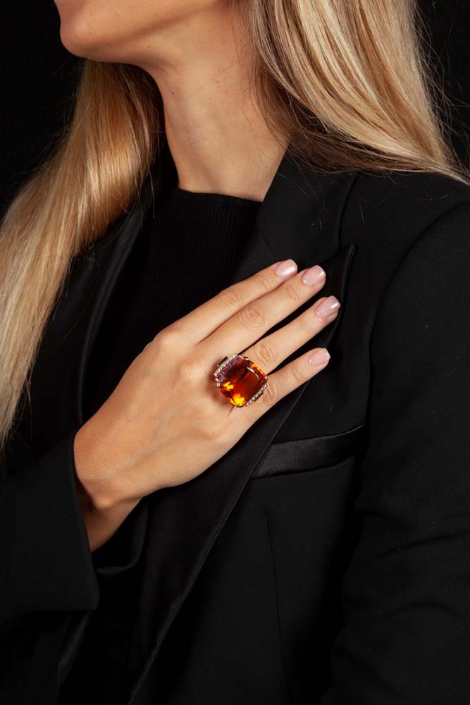 Anello in oro rosa, quarzo citrino, diamanti e rubini Misura 21 Art Retrò Oro...