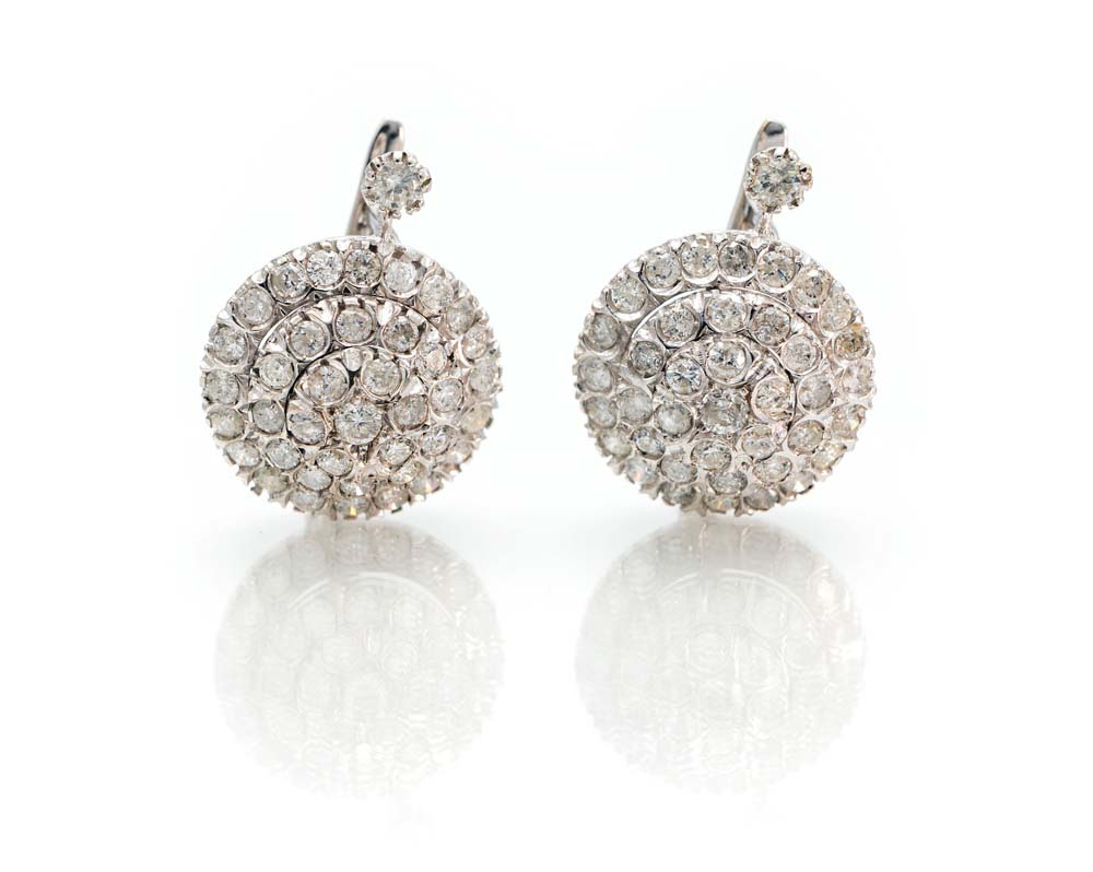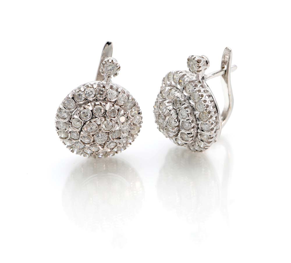 Lotto 194 | Orecchini a toppa in oro e brillanti Diametro cm 2 Oro bianco 750/000....