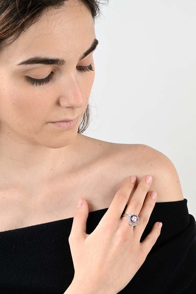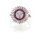 Anello a fiore in oro, diamanti e rubini Misura 16 Oro bianco 750/000....