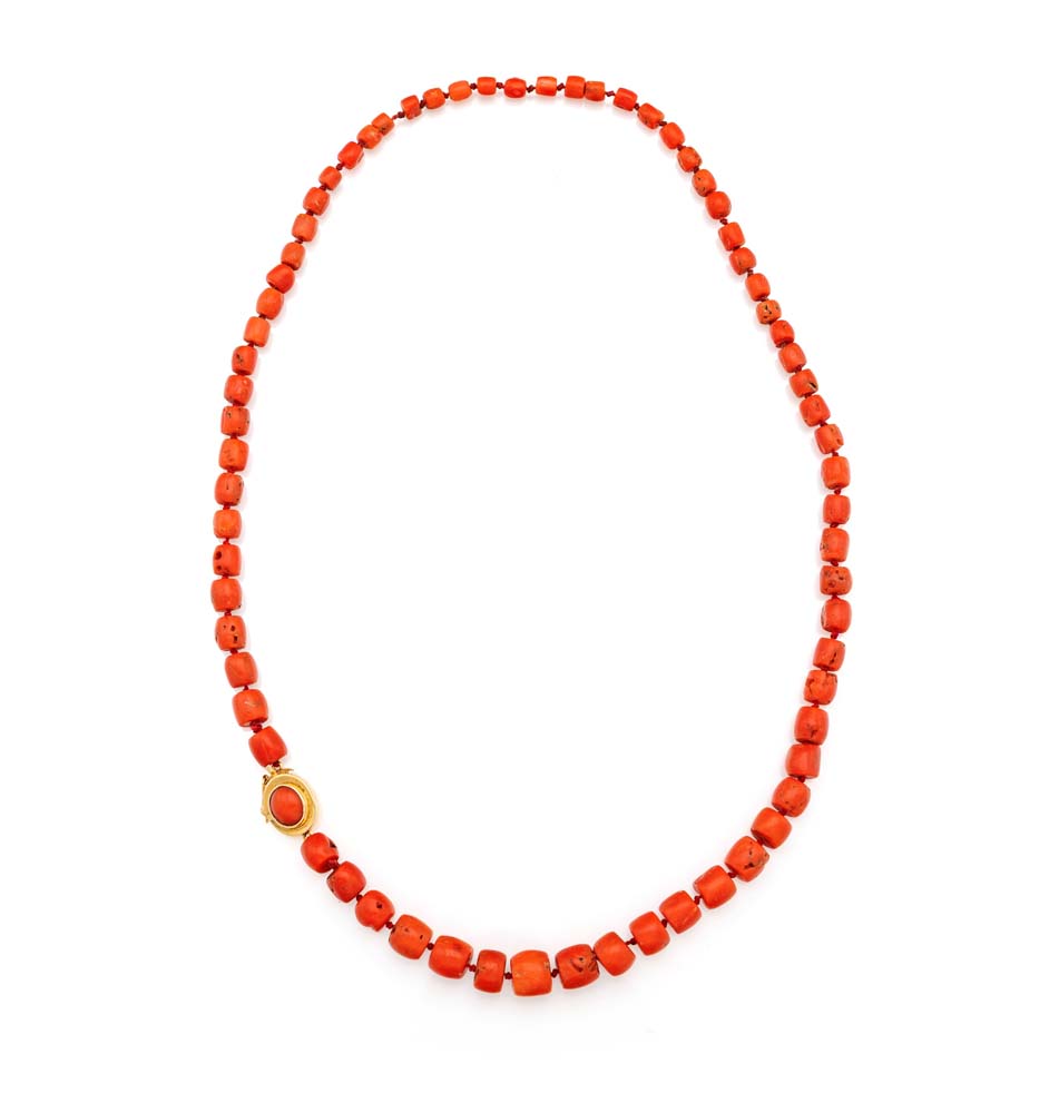 Collana di corallo rosso e oro Lunghezza cm 65 Oro giallo 750/000. Corallo da...