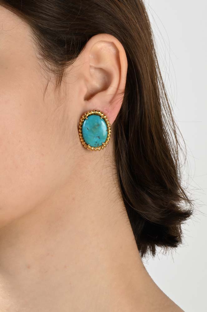 Coppia di orecchini in oro e turchese cm 3 x 2 Oro giallo 750/000. Peso...