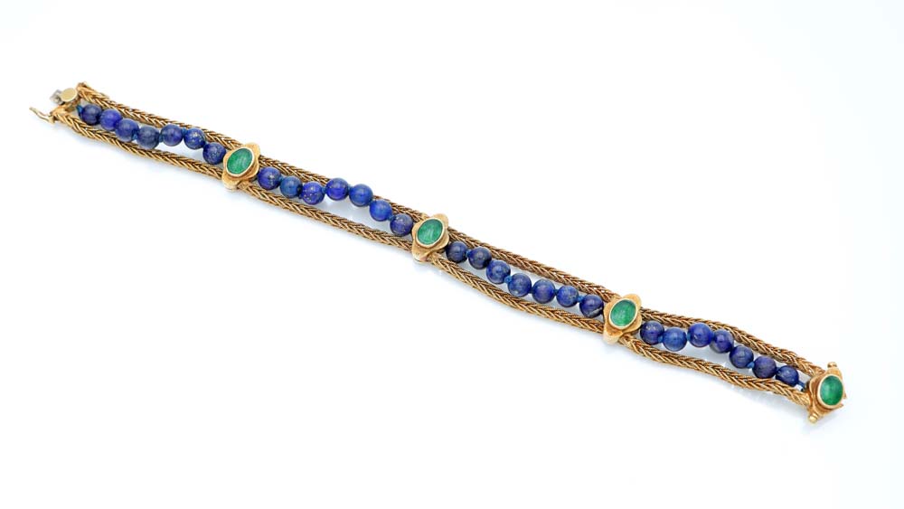 Lotto 290 | Bracciale in oro, lapislazzuli e smalto verde Lunghezza cm 19 Oro giallo...