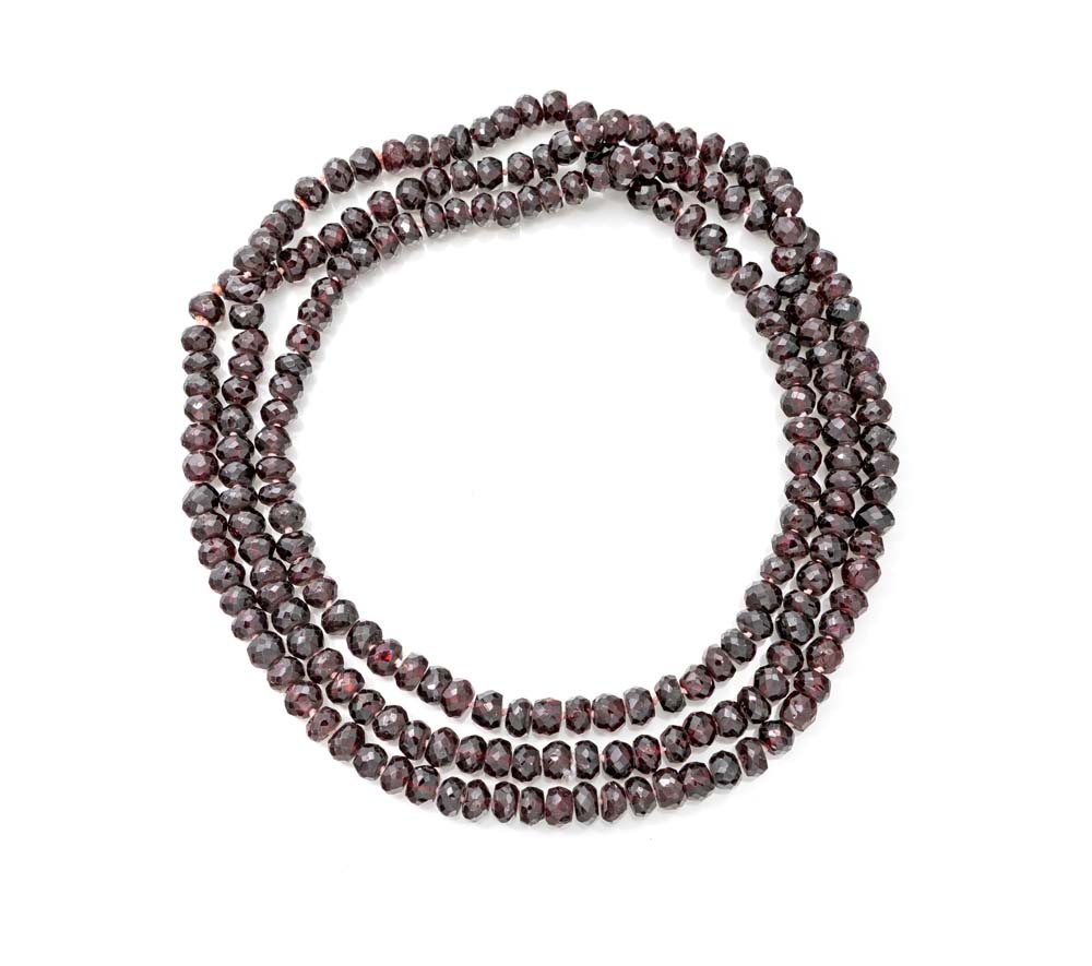Lunga collana a laccio con granati Lunghezza cm 160 Granati in taglio briolette mm. 10. Peso complessivo gr. 301.