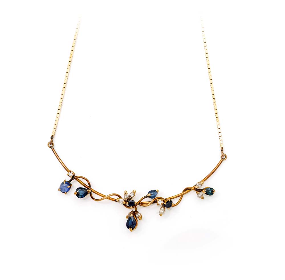 Girocollo in oro, zaffiri e brillanti Veste cm 41 Oro giallo 750/000. Peso complessivo gr. 11,50