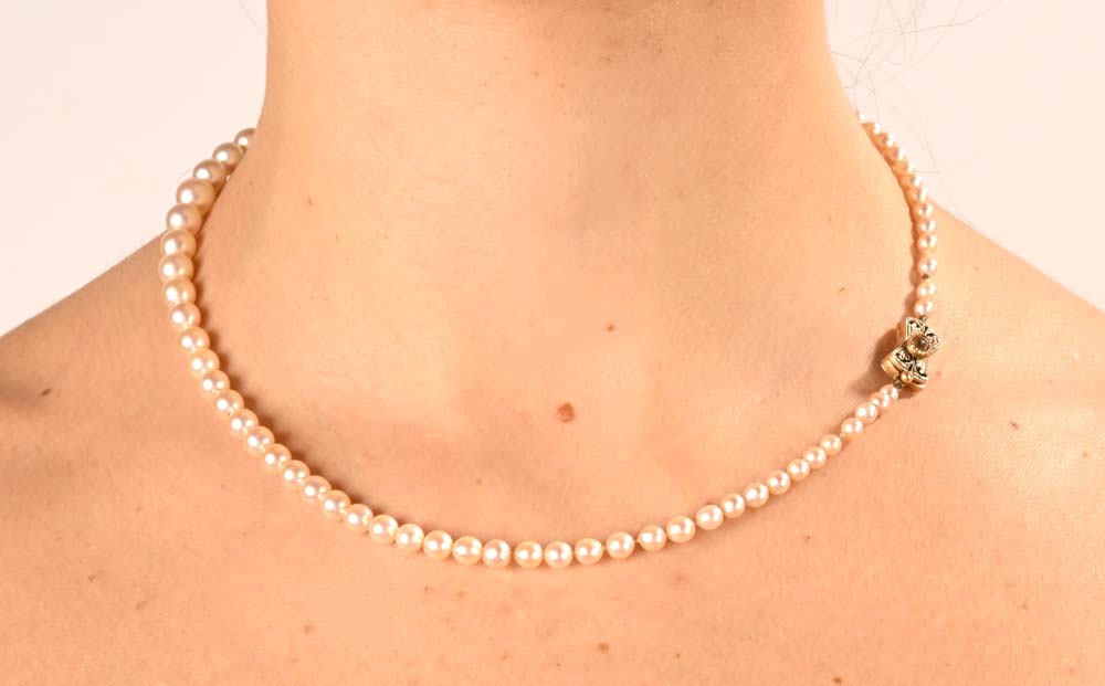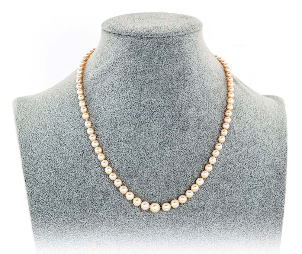 Collana di perle coltivate a gradazione, chiusura in oro Lunghezza cm 45