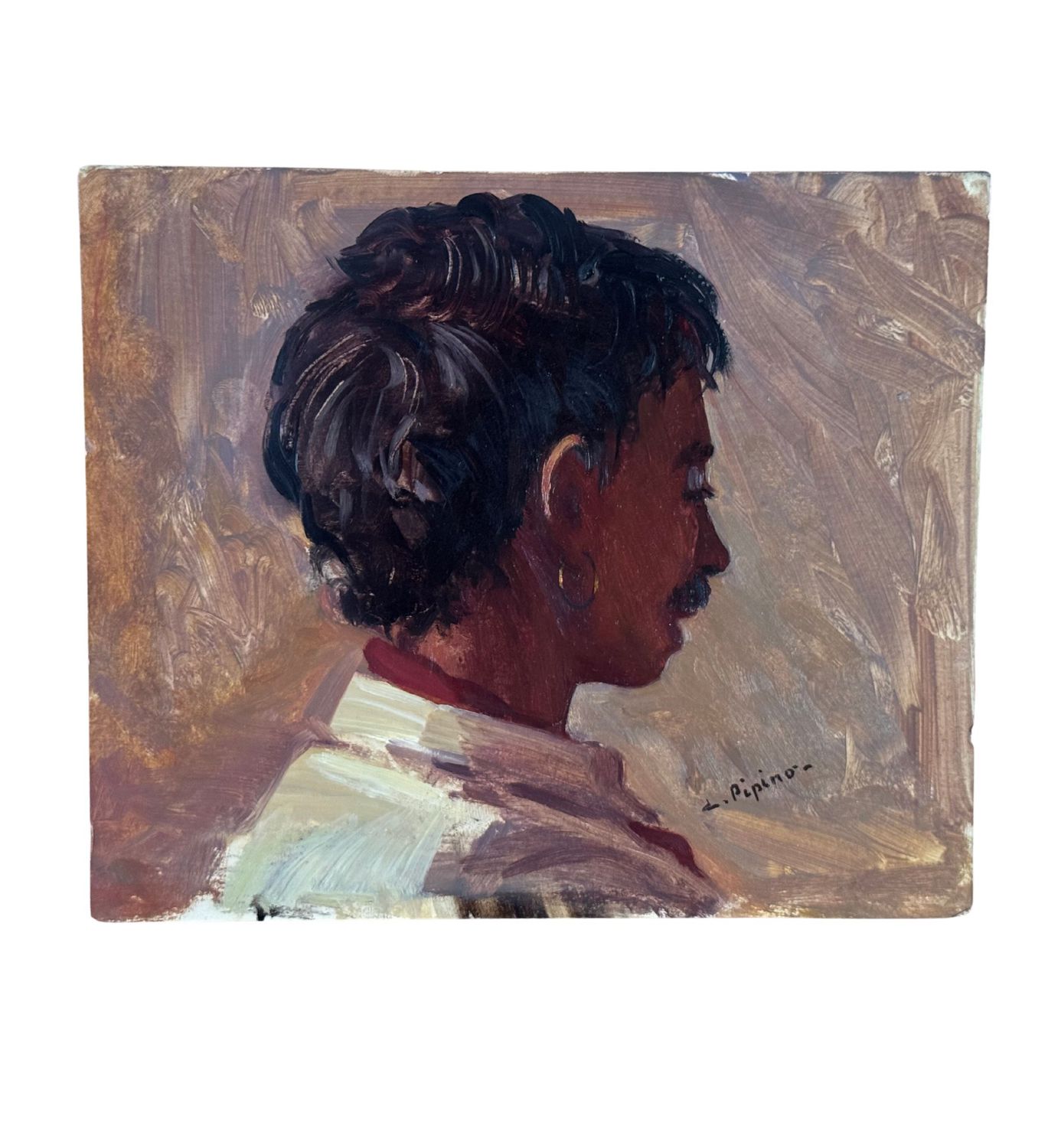 Dipinto olio su cartoncino, periodo XX secolo scuola Italiana, raffigurante Profilo di uomo arabo. Dimensioni: 22,5x19 cm. Reca firma in basso a destra da L.Pipino. Opera in buone condizioni e di ottima qualità artistica.