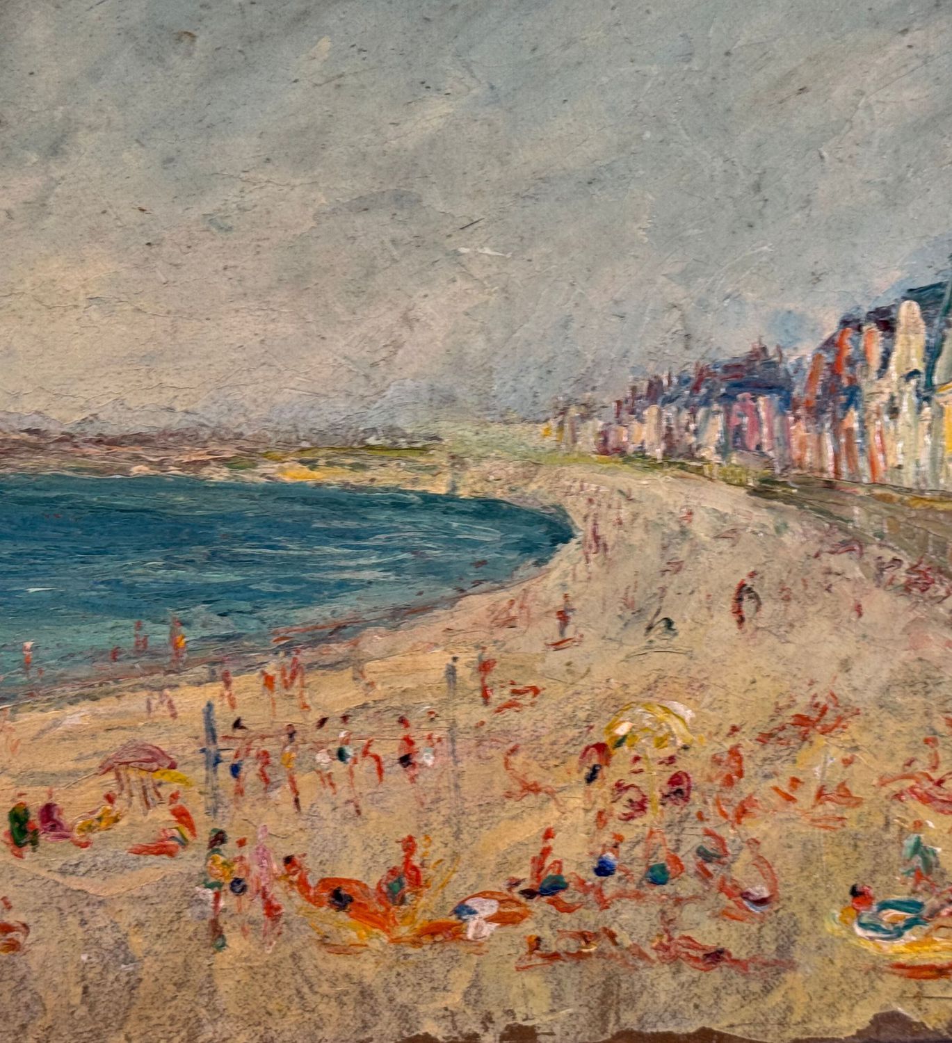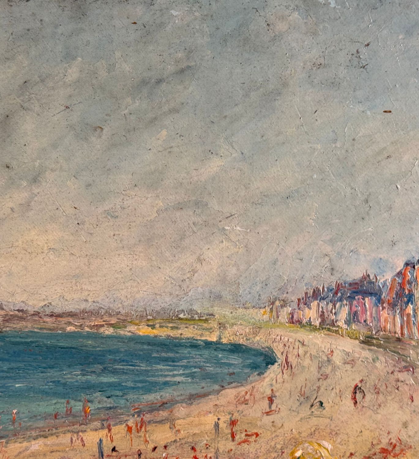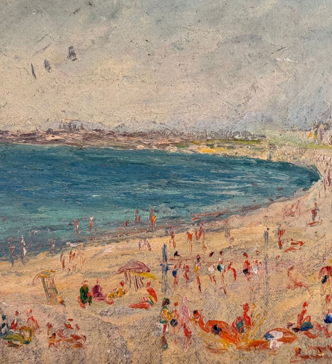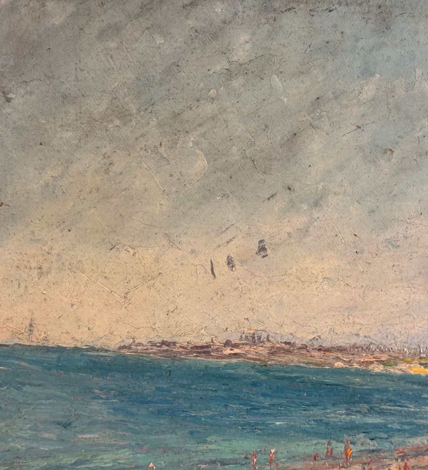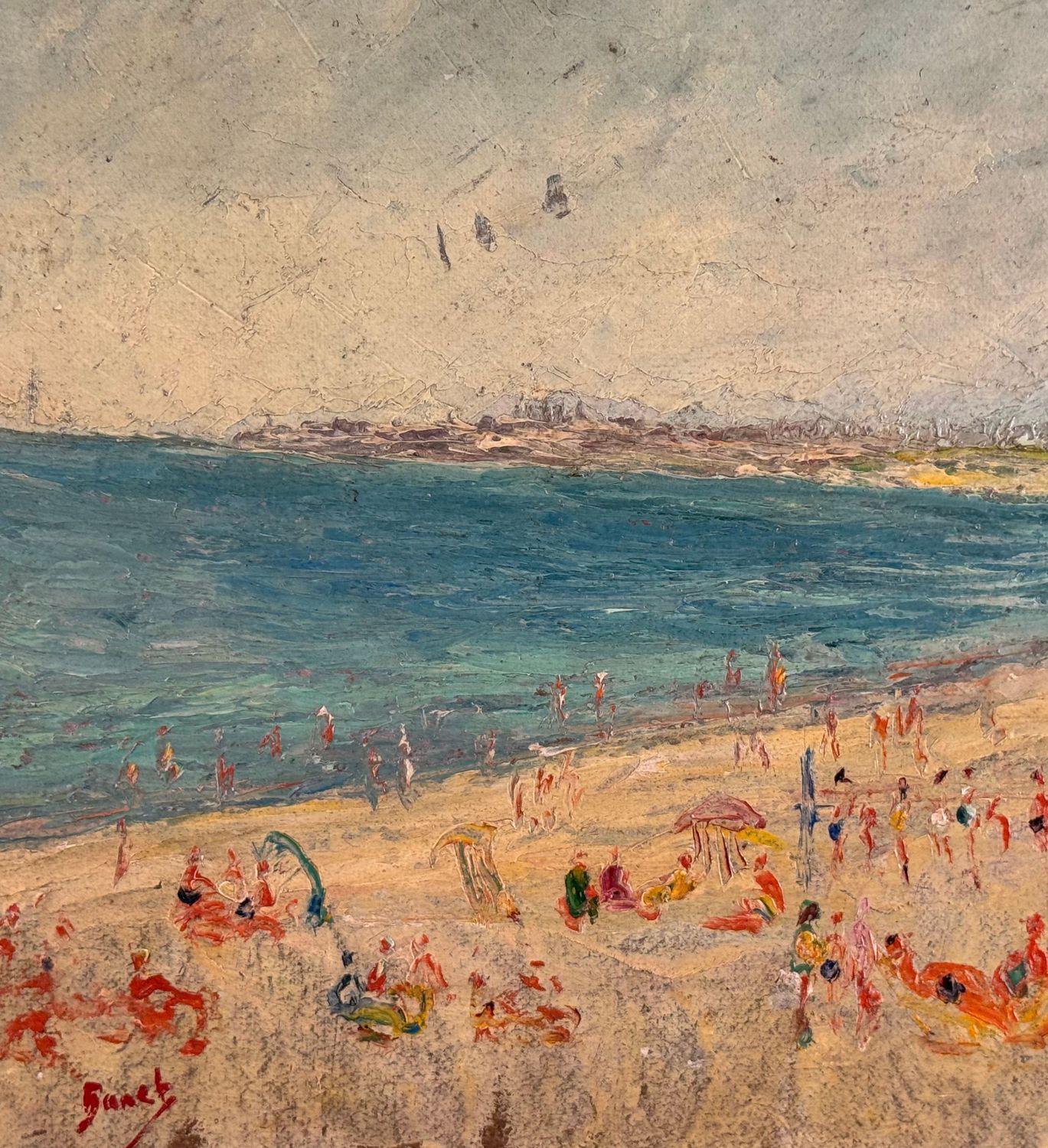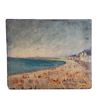 Dipinto olio su pannello, periodo XX secolo, scuola Italiana, raffigurante Personaggi su marina. Dimensioni: 46x38 cm. Reca firma in basso a sinistra artista non identificato. Opera in buone condizioni con lievi segni di vissuto come da foto allegate.