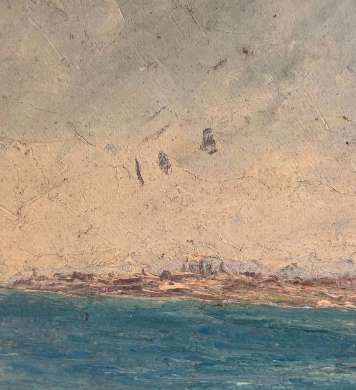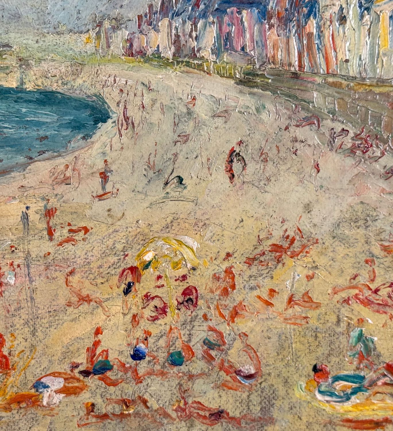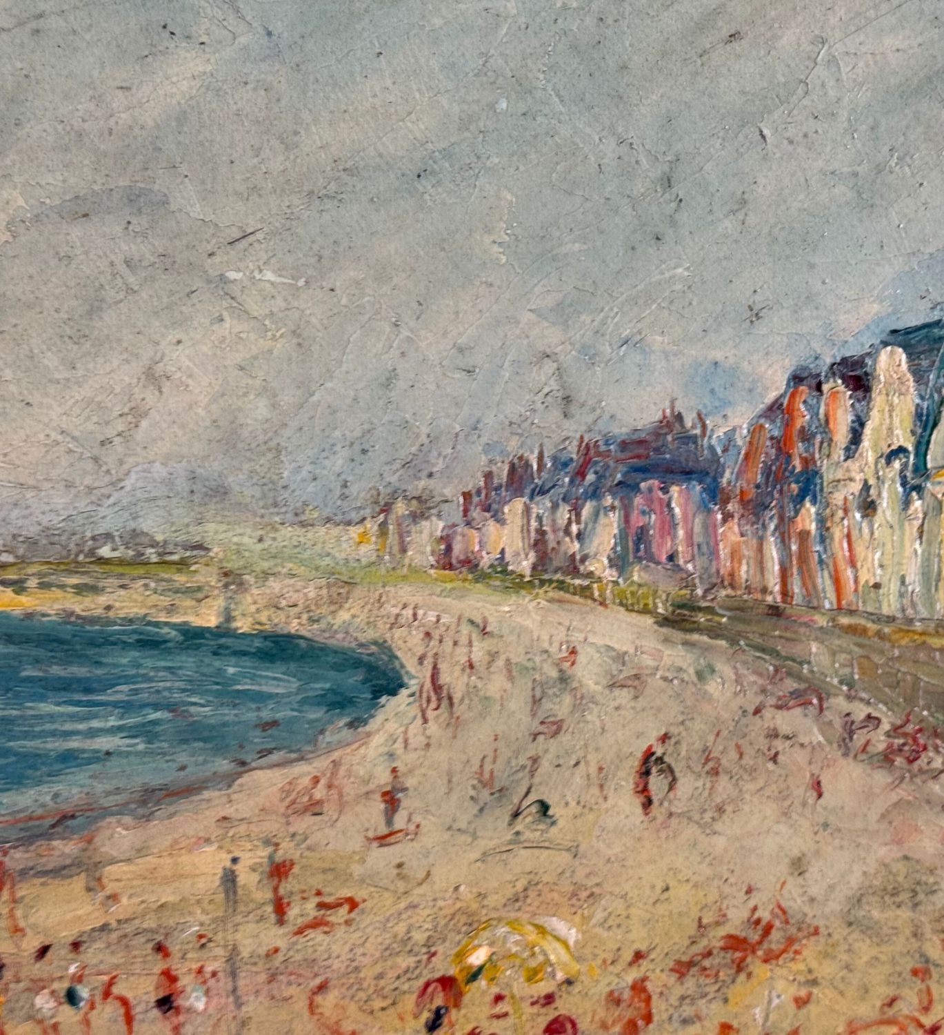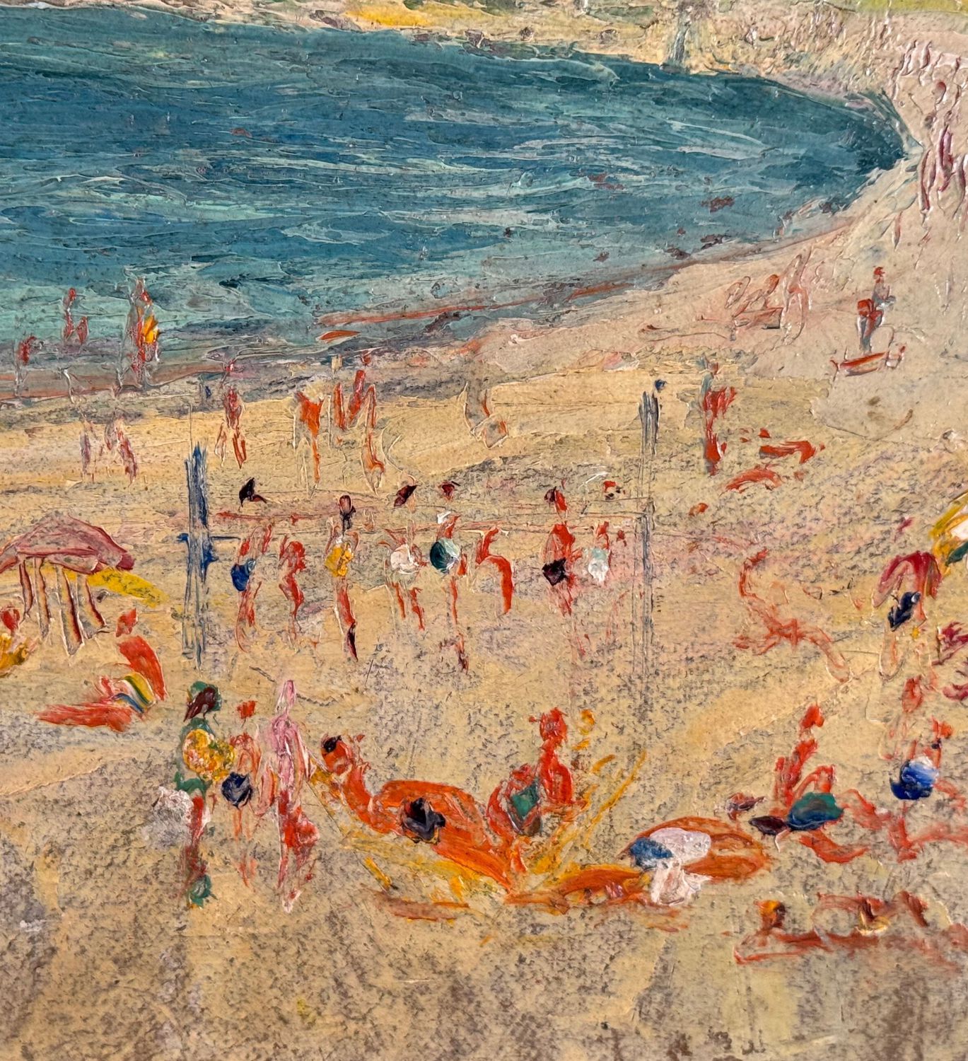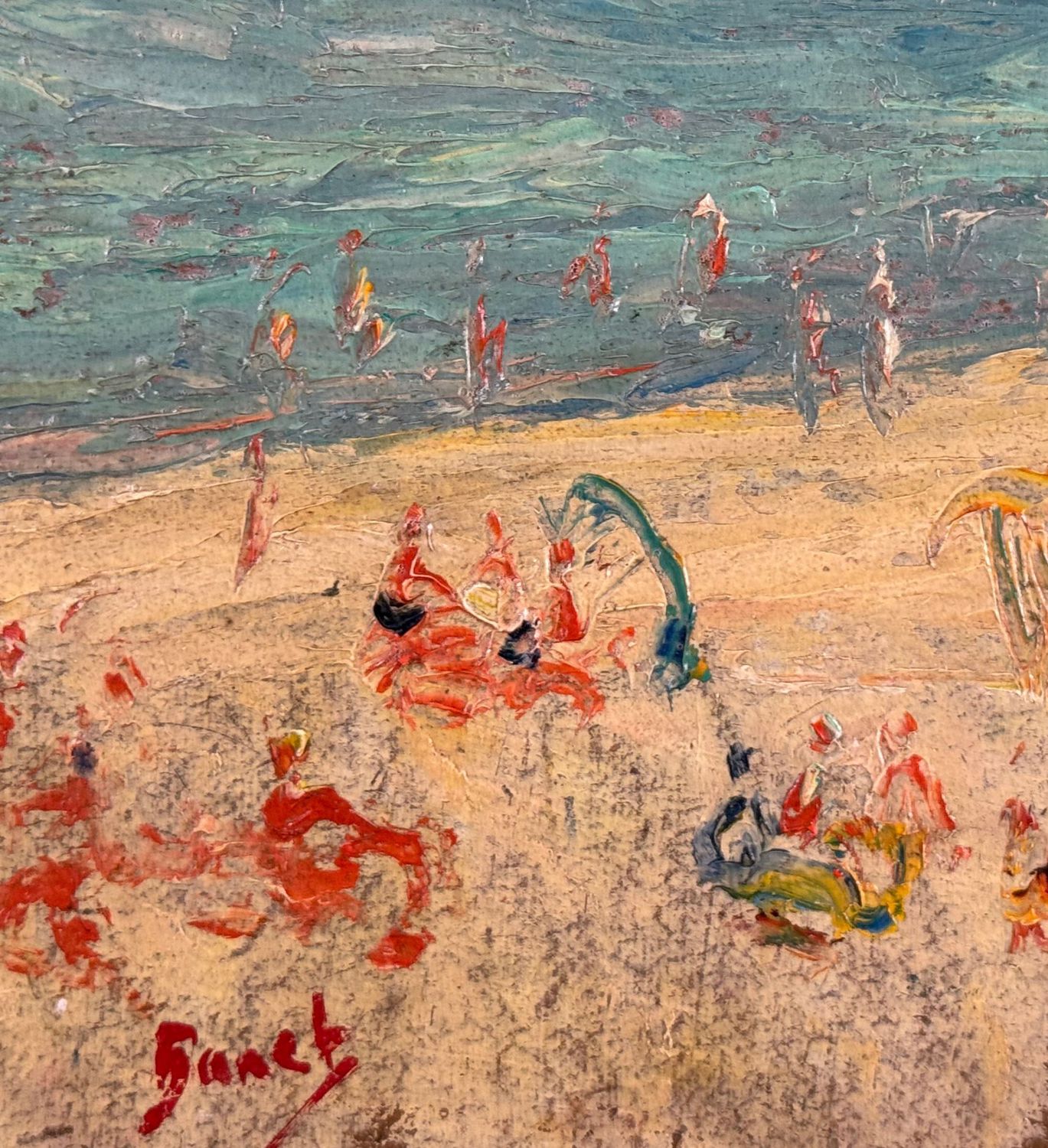 Dipinto olio su pannello, periodo XX secolo, scuola Italiana, raffigurante Personaggi su marina. Dimensioni: 46x38 cm. Reca firma in basso a sinistra artista non identificato. Opera in buone condizioni con lievi segni di vissuto come da foto allegate.