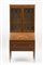 Paolo Buffa (Milano 1903 - 1970) - e Giovanni Gariboldi - Trumeau in legno di noce Torchio con corpo a due cassetti e un'anta ribaltabile con tarsia raffigurante una ghirlanda vegetale su disegno di Giovanni Gariboldi. Alzata a due ante vetrate con ripiani in vetro. Interni in frassino olivato, puntali regolabili in ottone e maniglie in fusione di ottone con decoro su disegno di Giovanni Gariboldi. Esecuzione Marelli & Colico, Cantù 1954. (cm 92x205x45). Bibliografia per esemplari simili: Paolo Buffa designer. 30 opere dal 1939 al 1968, Eredi di Angelo Marelli, Cantù, 1993, p. 21; I mobili di Paolo Buffa, a cura di R. Rizzi Galleria del Design e dell’Arredamento, Cantù, 2001, p. 55.