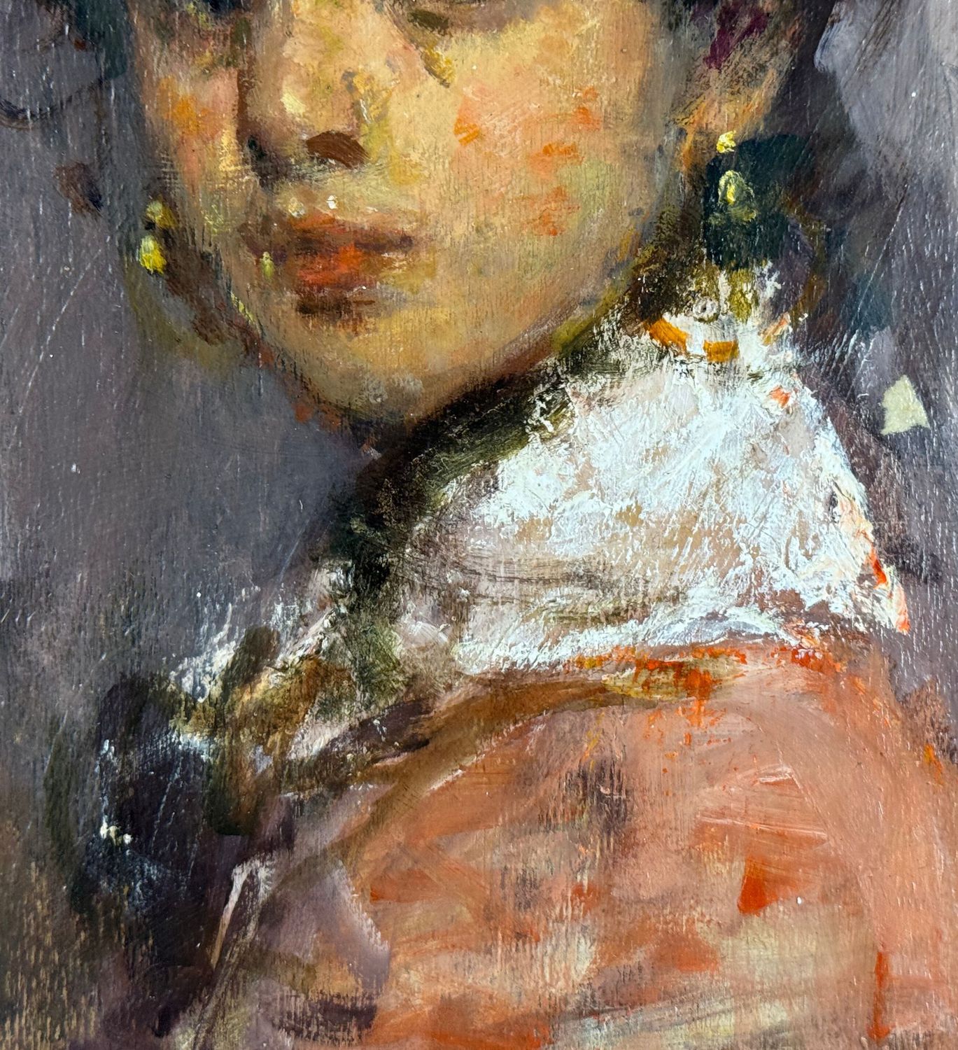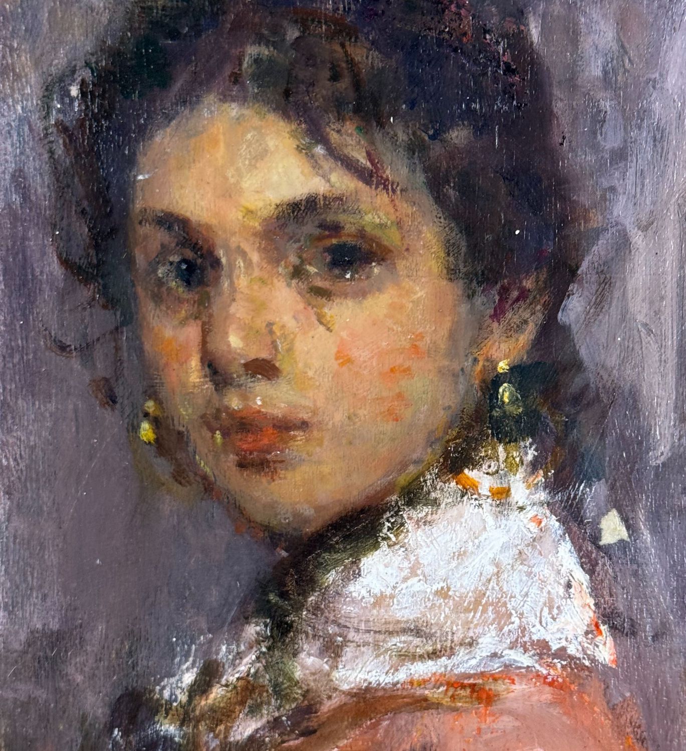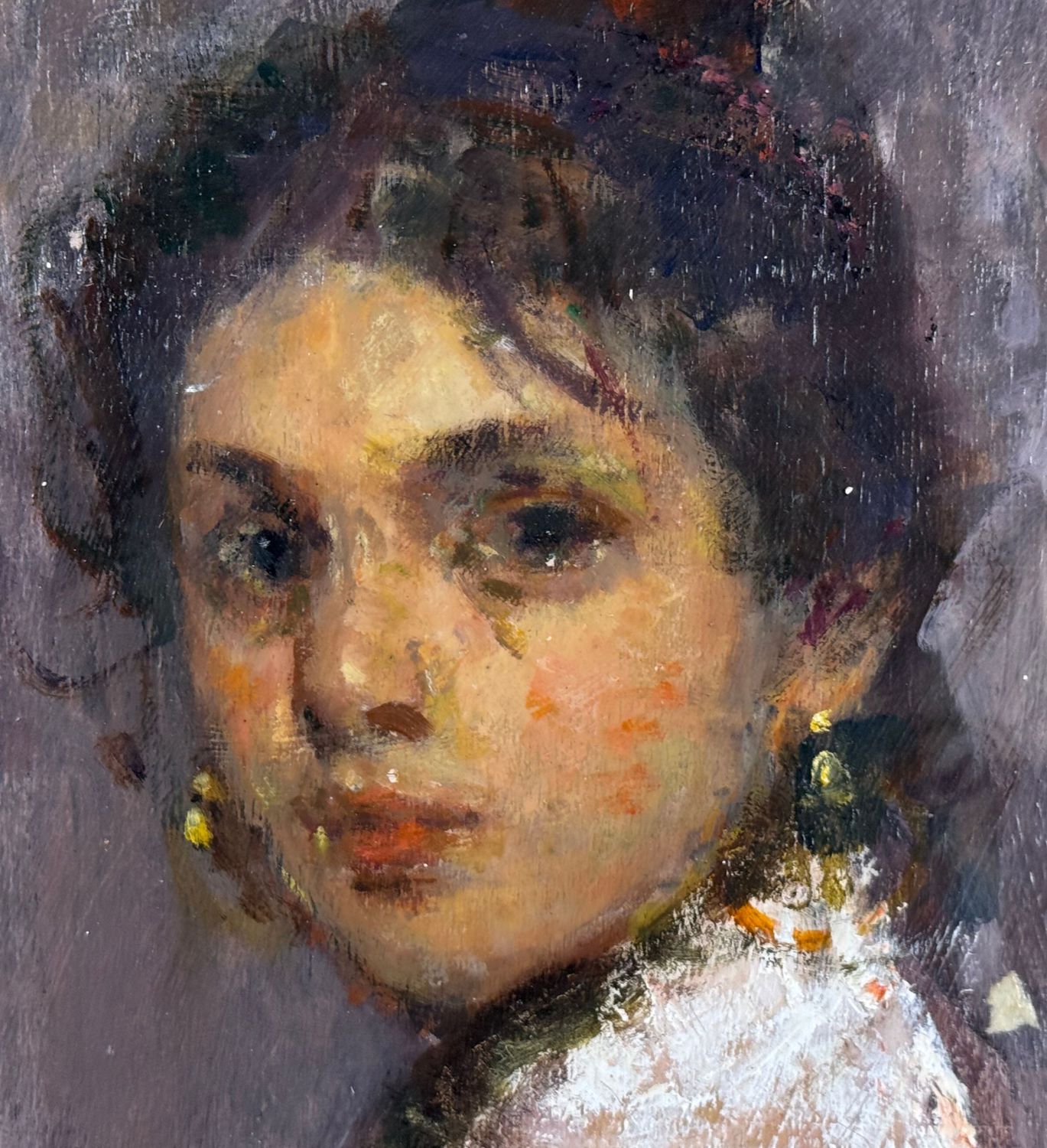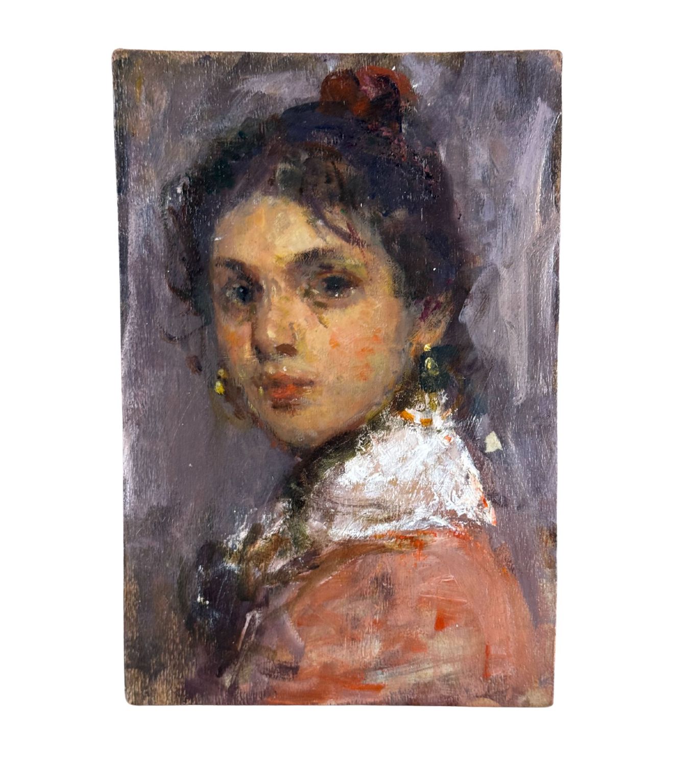Dipinto olio su tavola, periodo XX secolo, scuola Italiana, raffigurante Profilo di donna. Dimensioni: 17x25 cm. Artista anonimo. Opera in buone condizioni e di ottima qualità artistica.