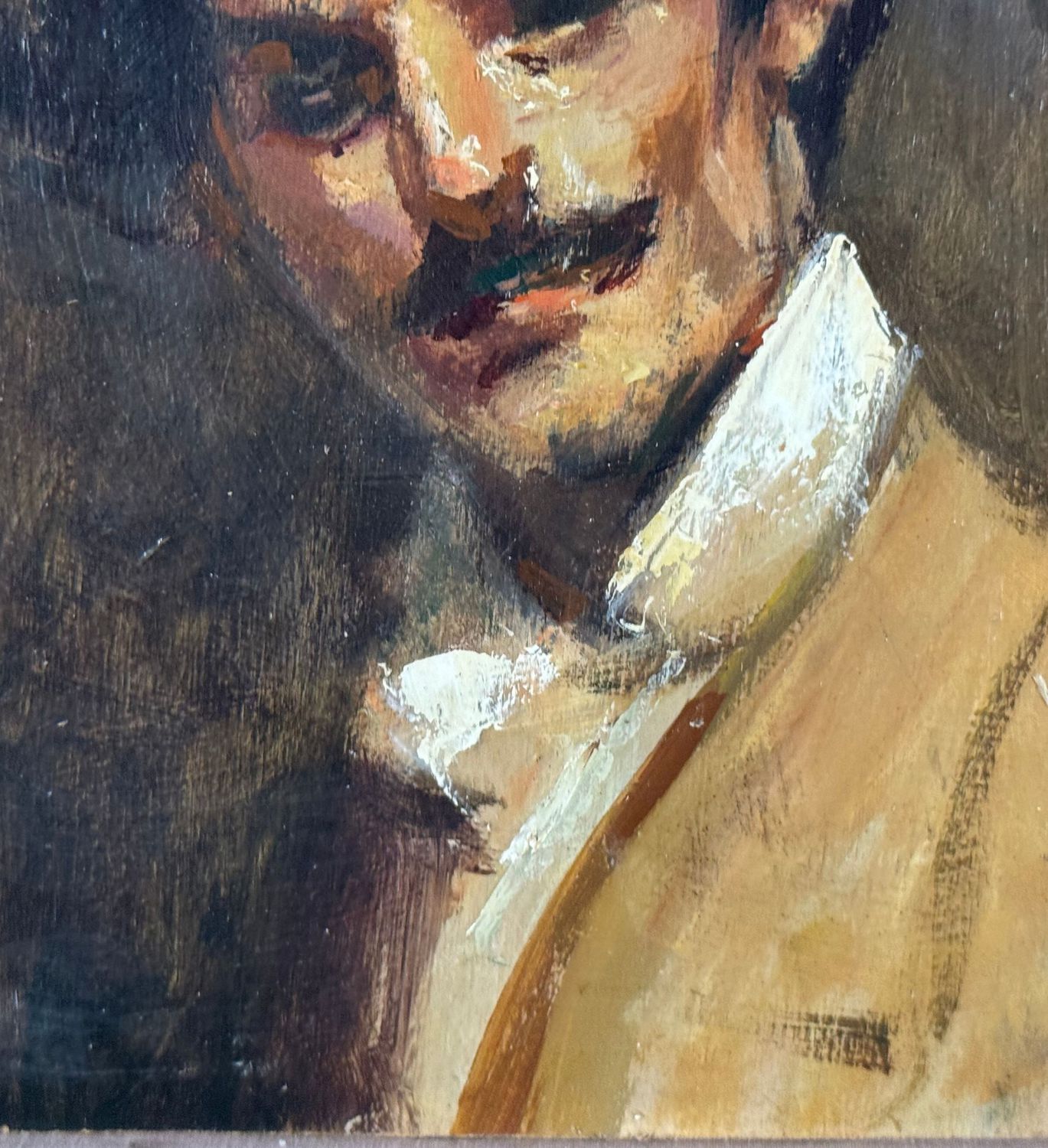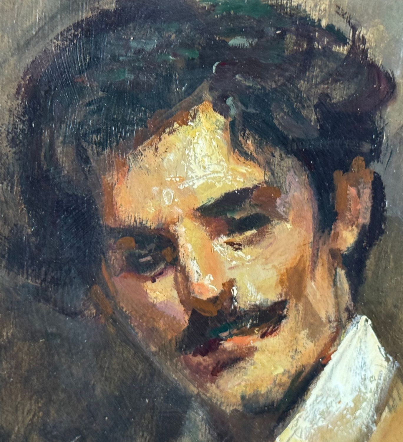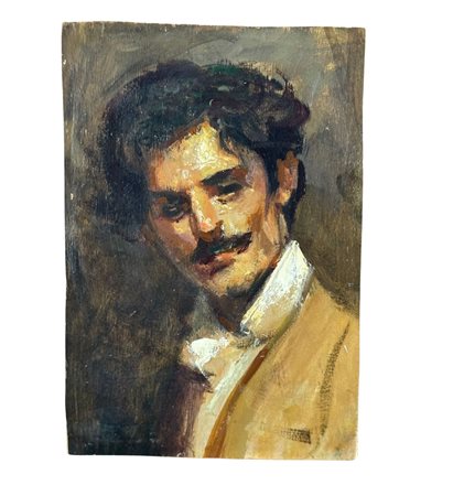 Dipinto olio su tavola, periodo XX secolo, scuola Italiana, raffigurante Ritratto di uomo. Dimensioni: 20x13,5 cm. Artista anonimo. Opera in buone condizioni e di ottima qualità artistica.