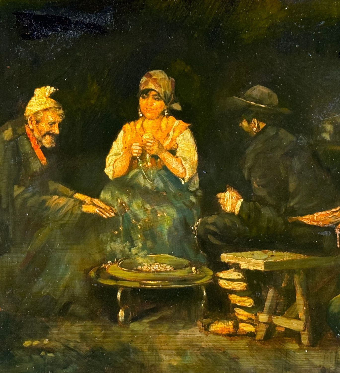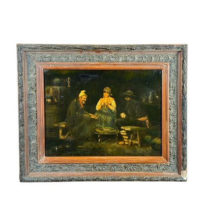 Dipinto olio su pannello, periodo XX secolo scuola Italiana, raffigurante Scena di interno con personaggi. Dimensioni compreso cornice: 45x55 cm. Dimensioni interno cornice: 40x30 cm. Da artista anonimo. Opera in buone condizioni con lievi segni di vissuto come da foto allegate.