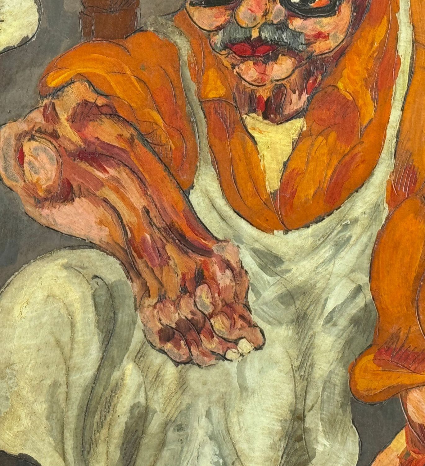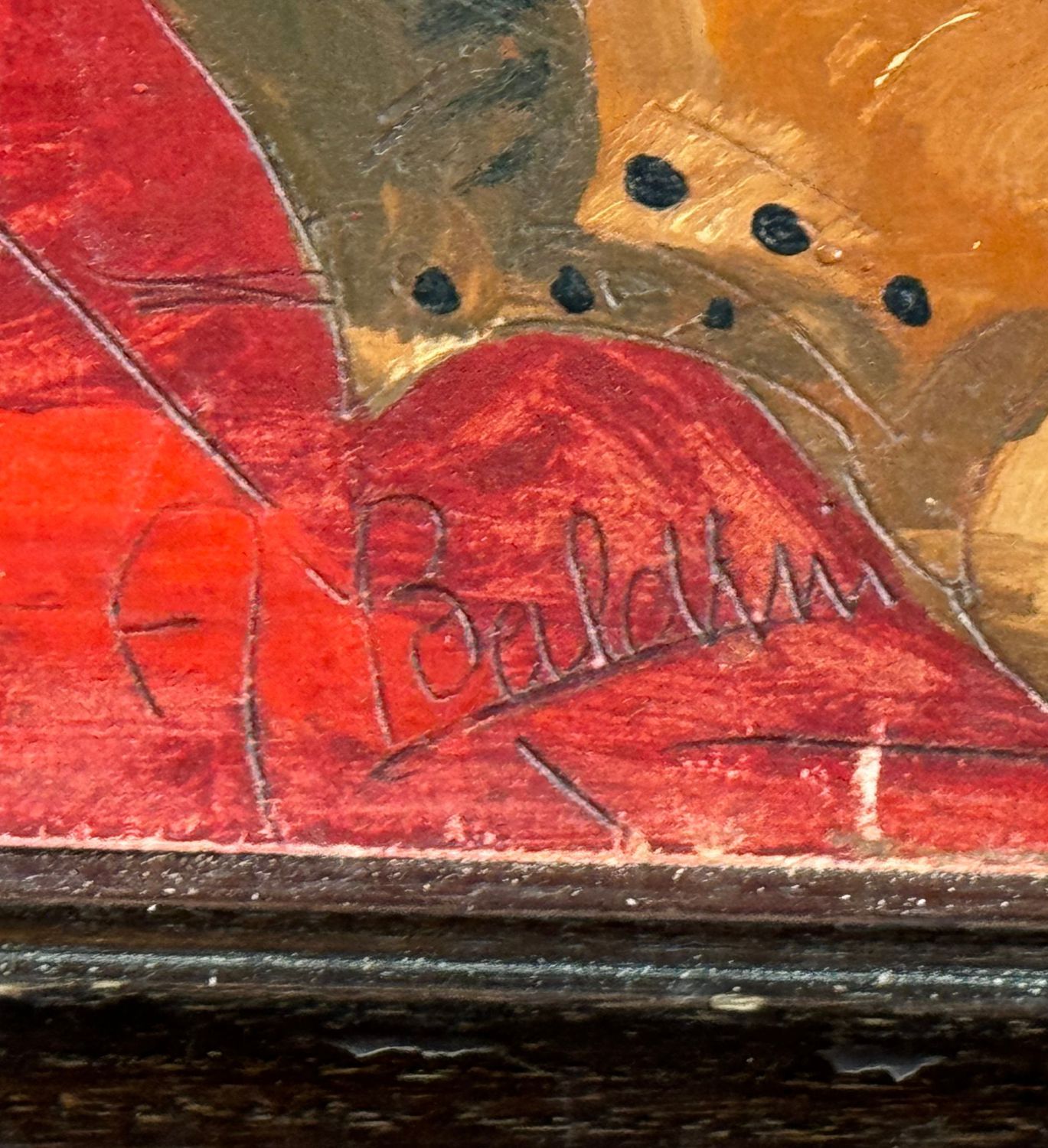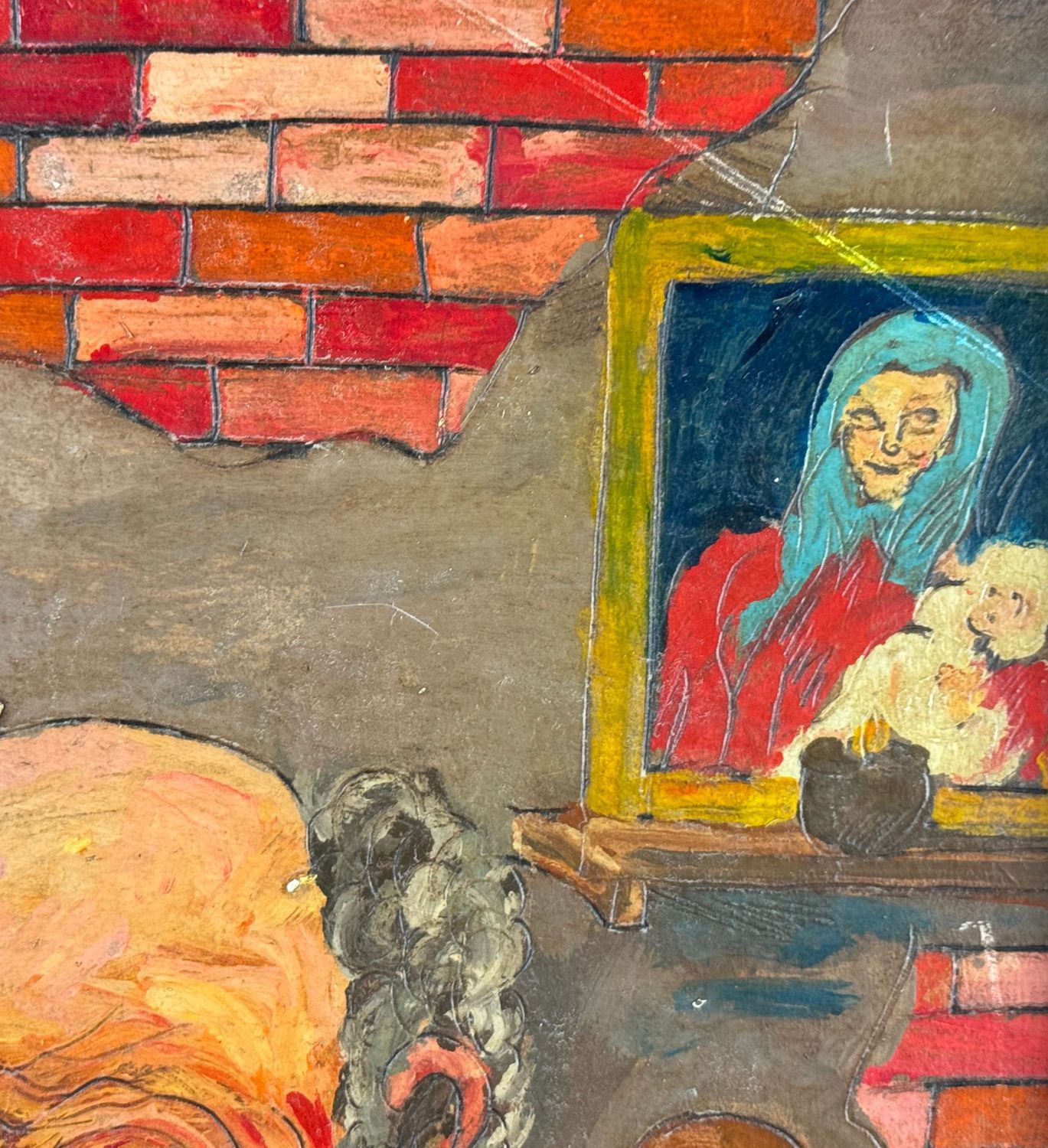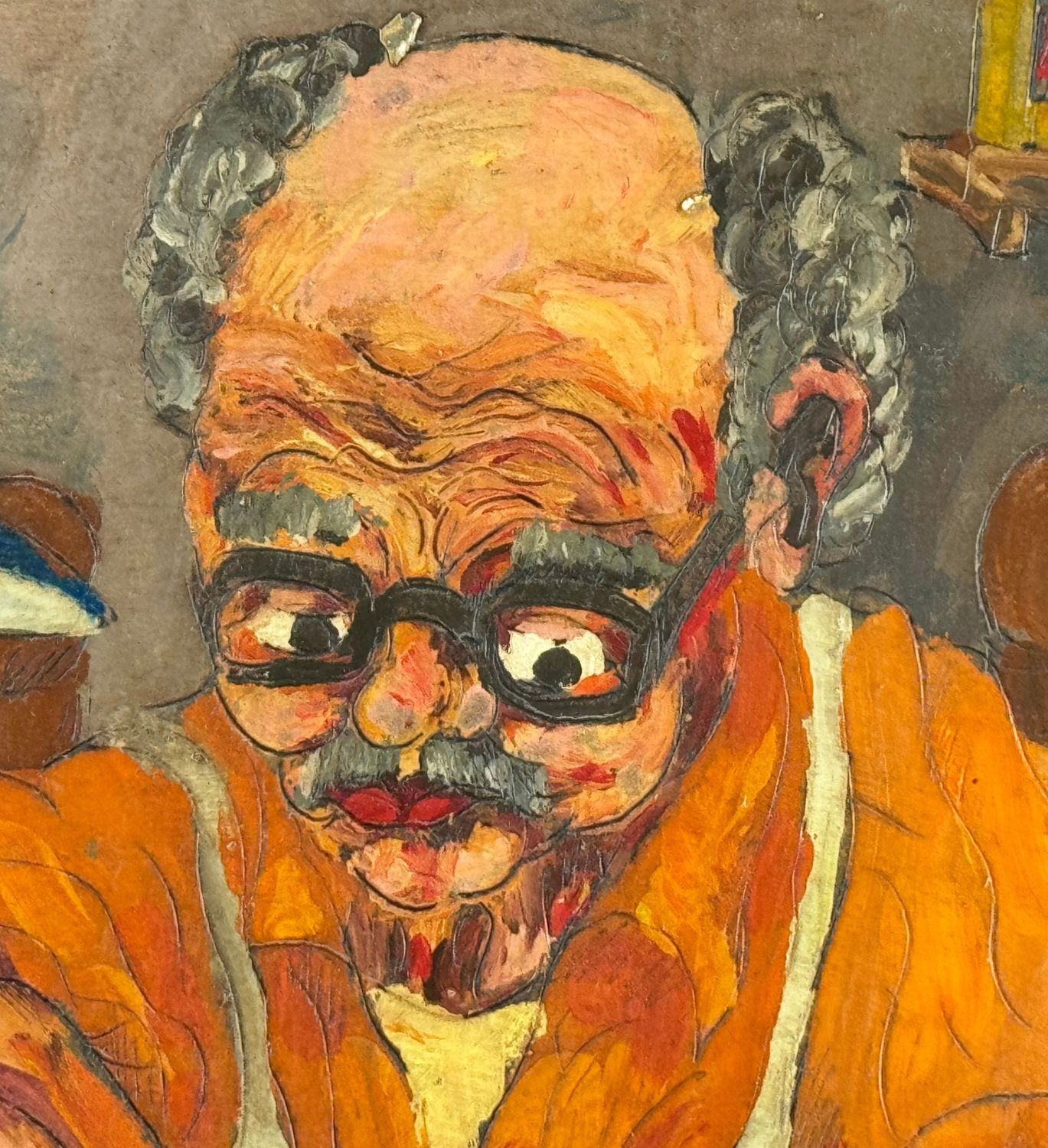 Dipinto tecnica mista su pannello, periodo XX secolo scuola italiana, raffigurante Anziano con gatto. Dimensioni compreso cornice: 59x81 cm. Dimensioni interno cornice: 51x72 cm. Reca firma in basso a destra da artista non identificato. Opera in buone condizioni.