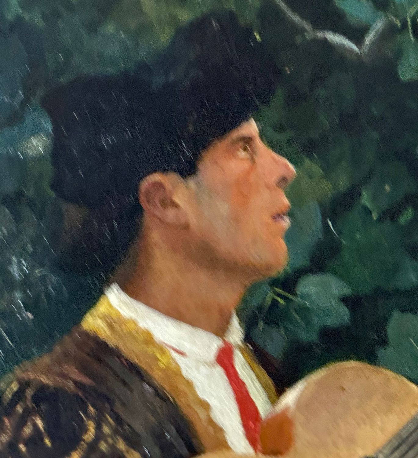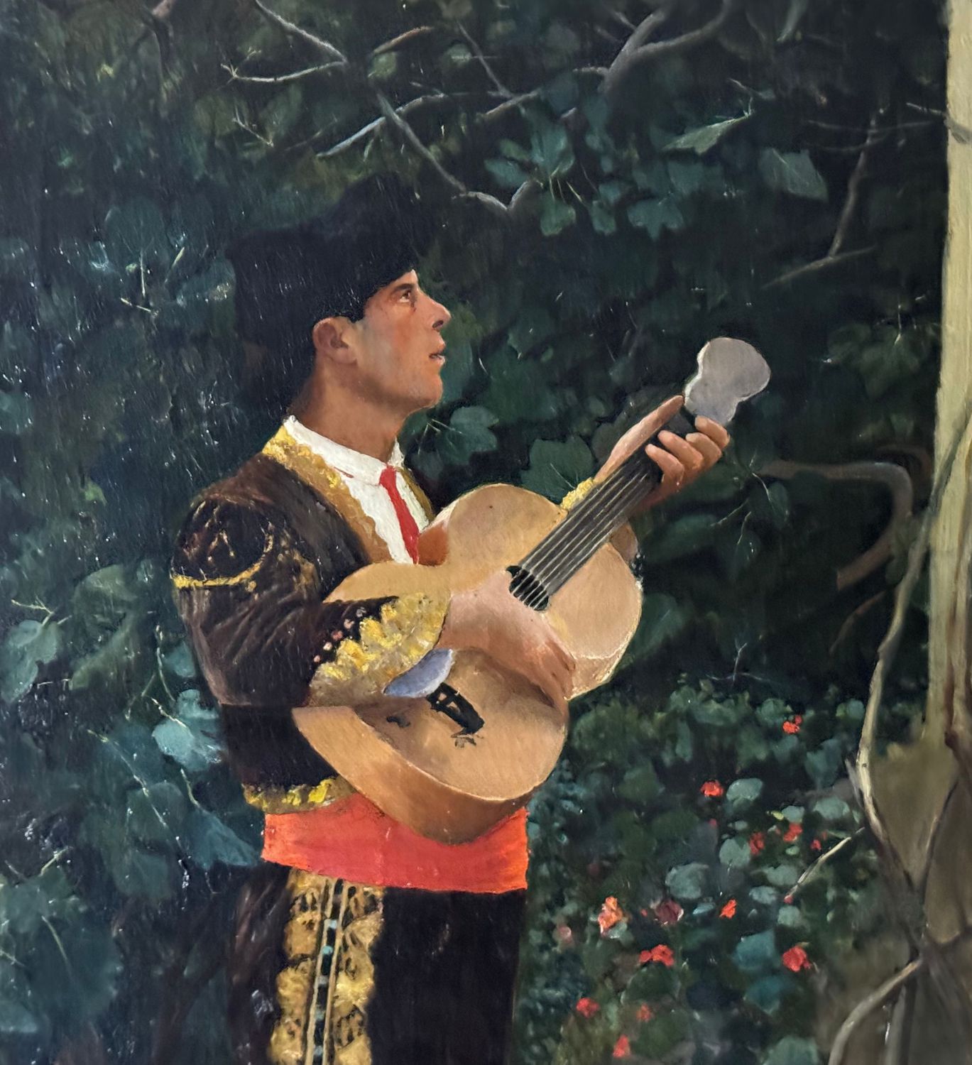 Dipinto olio su tela, periodo XIX secolo scuola Italiana, raffigurante La serenata. Dimensioni compreso cornice: 91x141 cm. Dimensioni interno cornice: 70x121 cm. Reca firma in basso a destra da artista non identificato. Opera in buone condizioni.