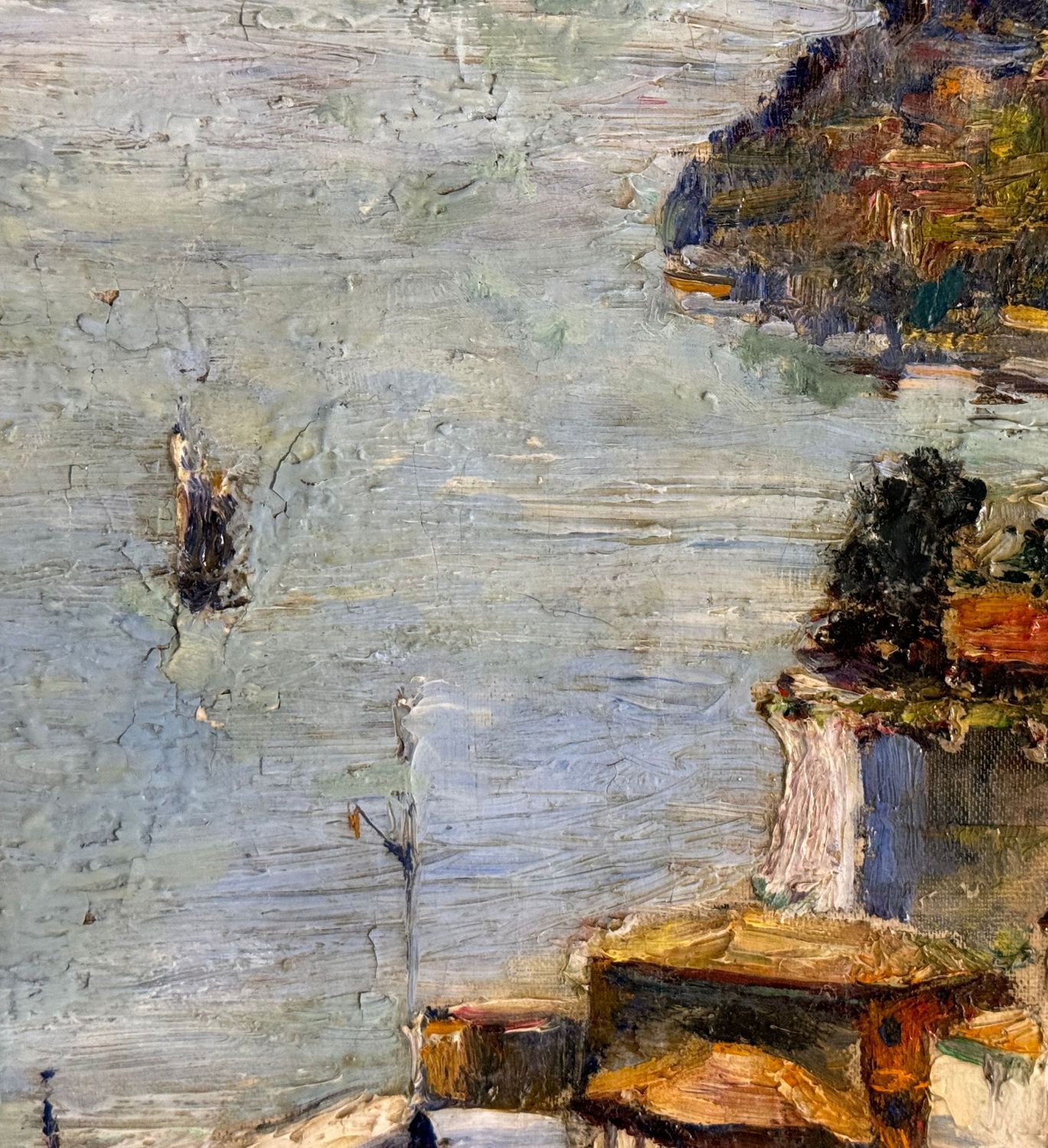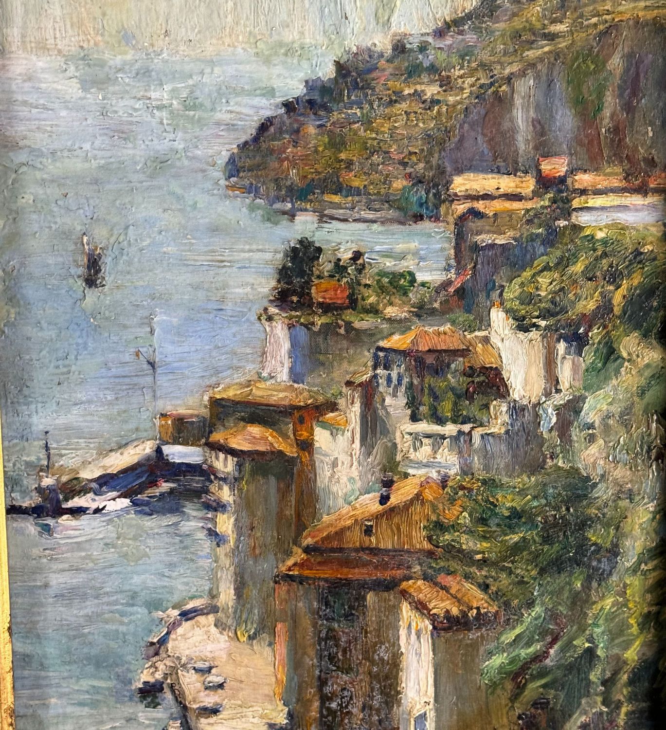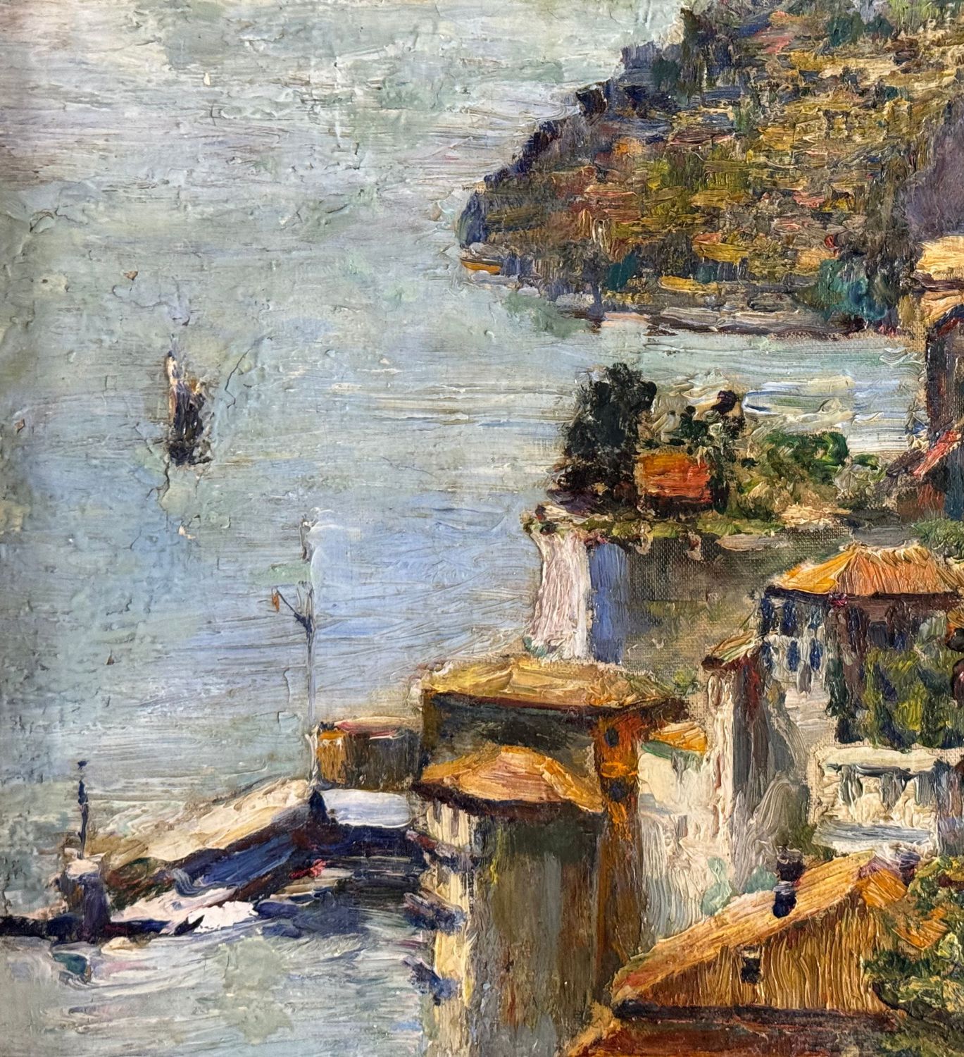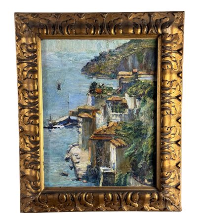 Dipinto olio su tela, periodo XX secolo scuola Italiana, raffigurante Scorcio di costiera. Dimensioni compreso cornice: 60,5x74 cm. Dimensioni interno cornice: 45x54 cm. Reca firma in basso a destra (Probabile attribuzione a Luigi Crisconio). Opera in buone condizioni.