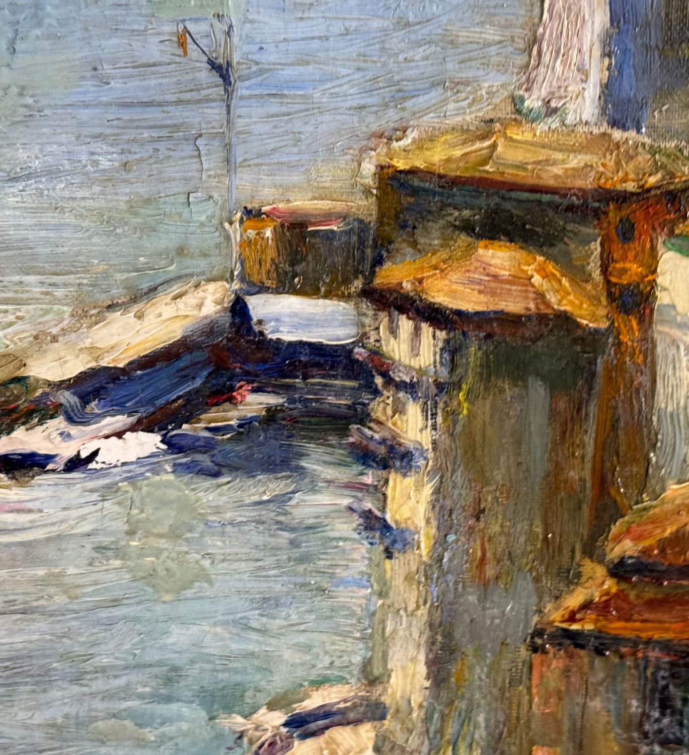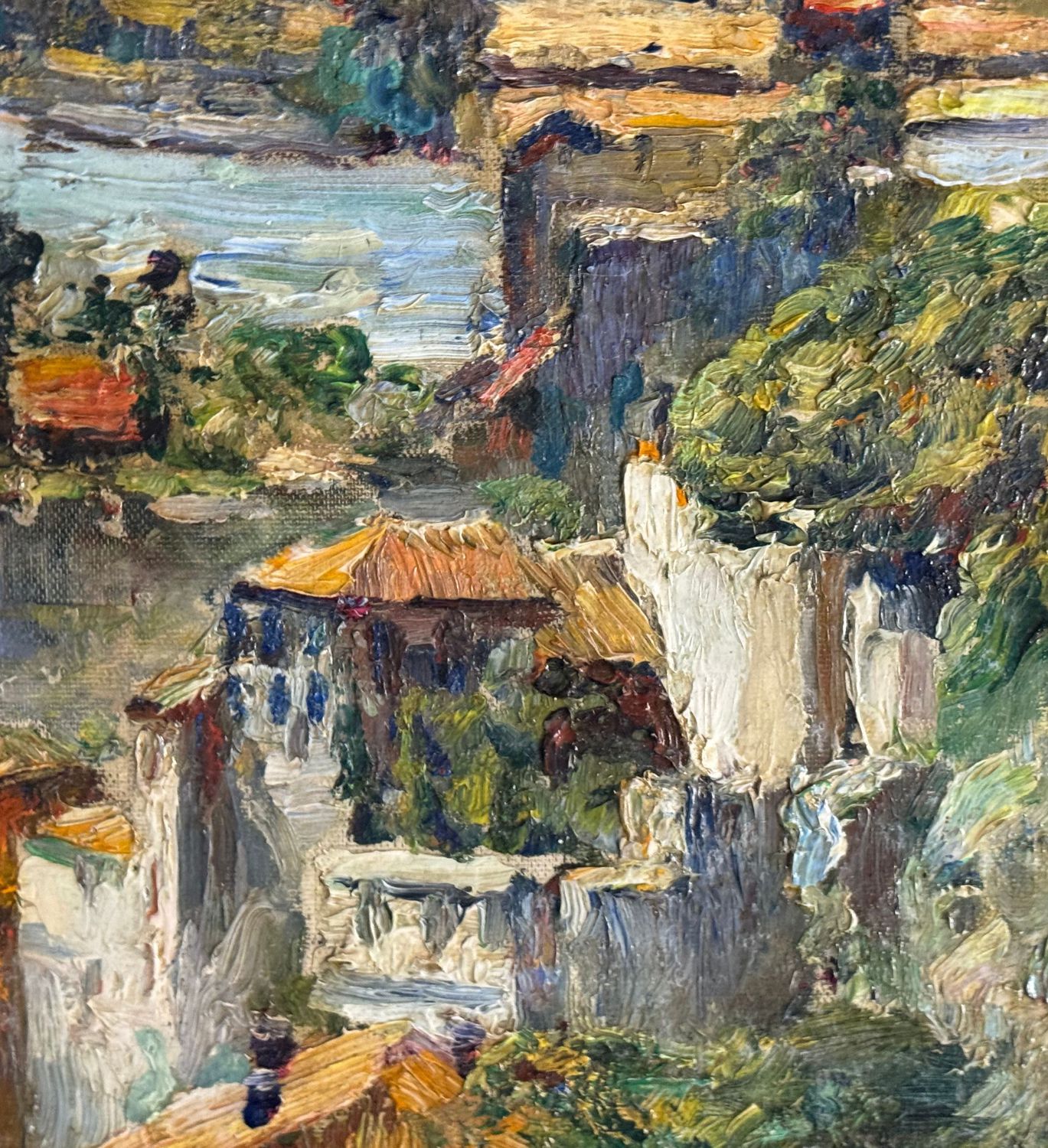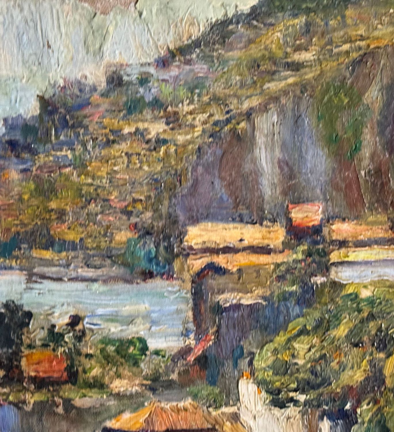 Dipinto olio su tela, periodo XX secolo scuola Italiana, raffigurante Scorcio di costiera. Dimensioni compreso cornice: 60,5x74 cm. Dimensioni interno cornice: 45x54 cm. Reca firma in basso a destra (Probabile attribuzione a Luigi Crisconio). Opera in buone condizioni.