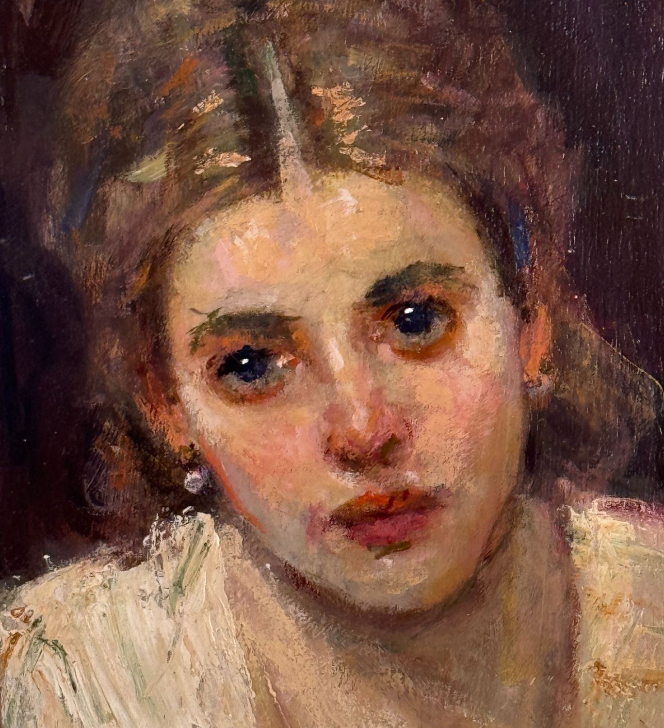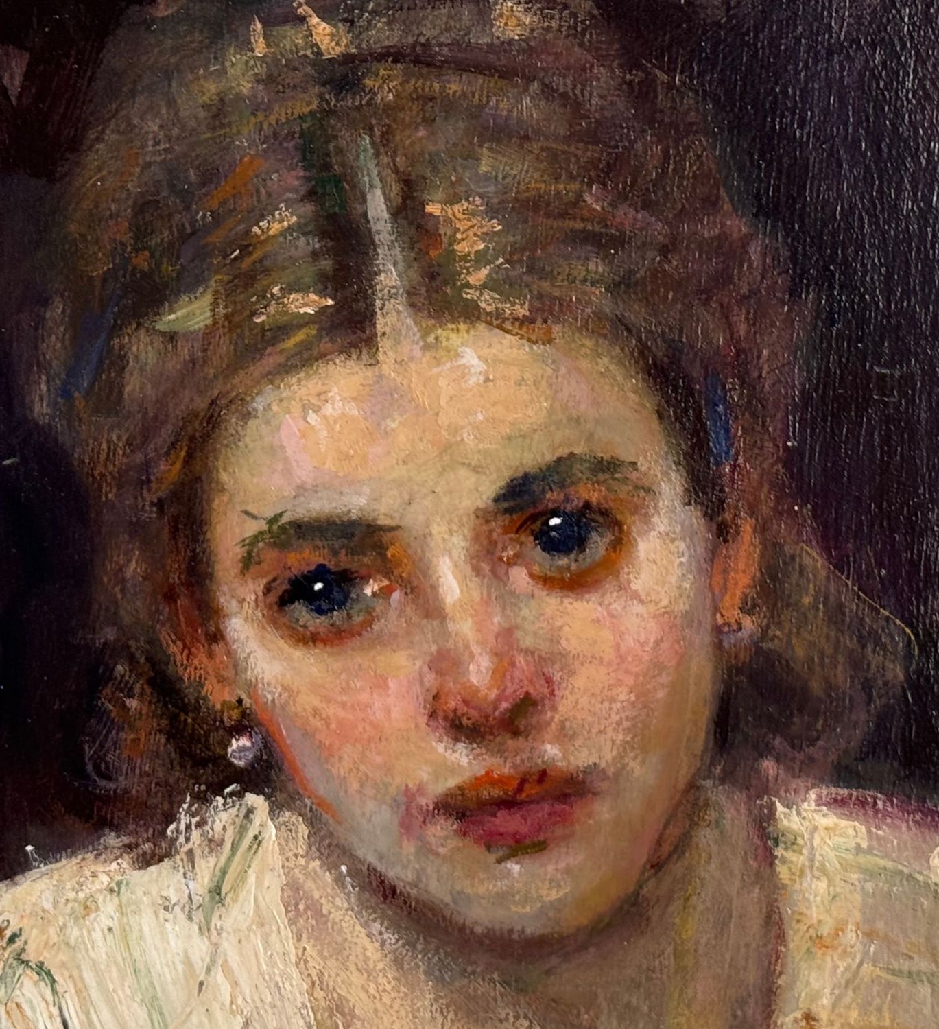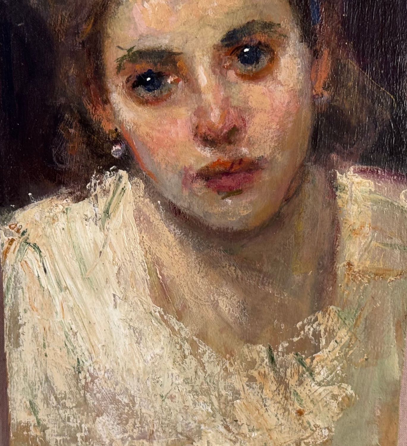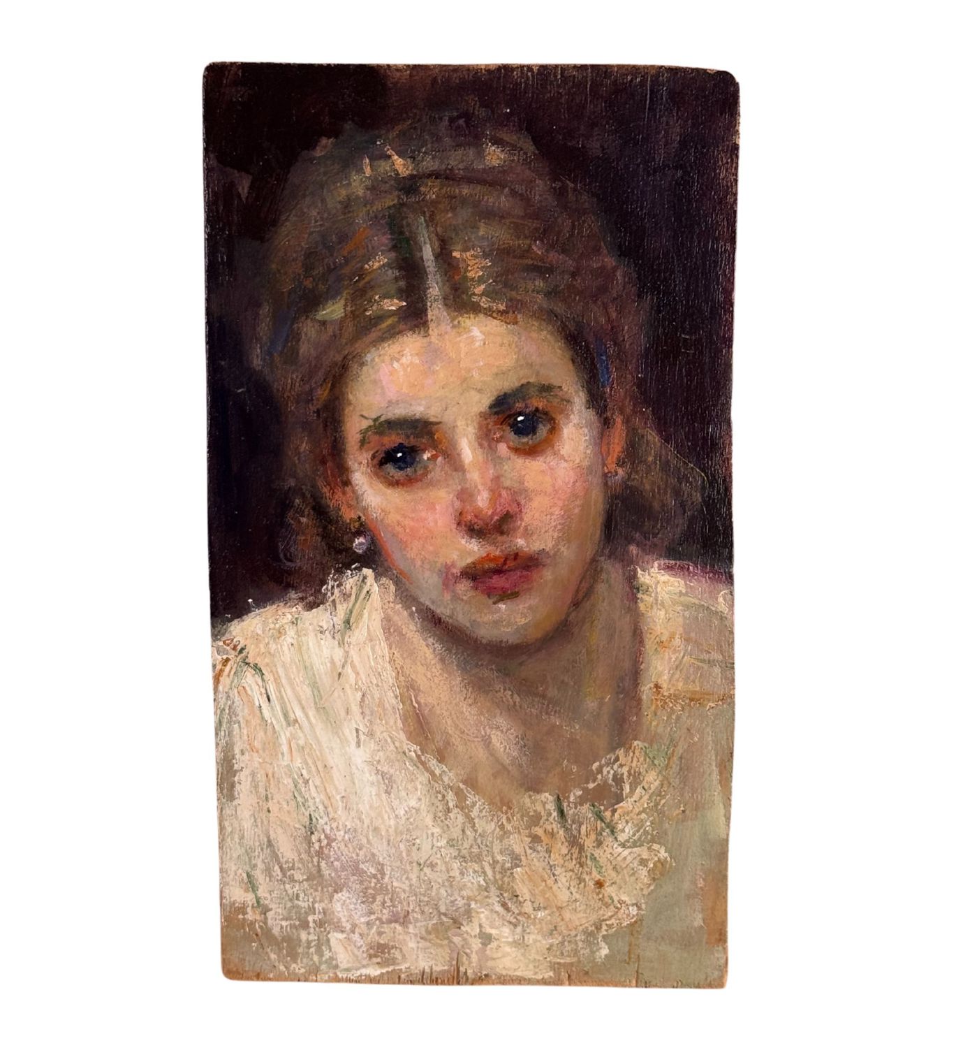 Dipinto olio su tavola, periodo XX secolo scuola Italiana, raffigurante Ritratto di giovane donna. Dimensioni: 25x14 cm. Artista anonimo. Opera in buone condizioni.