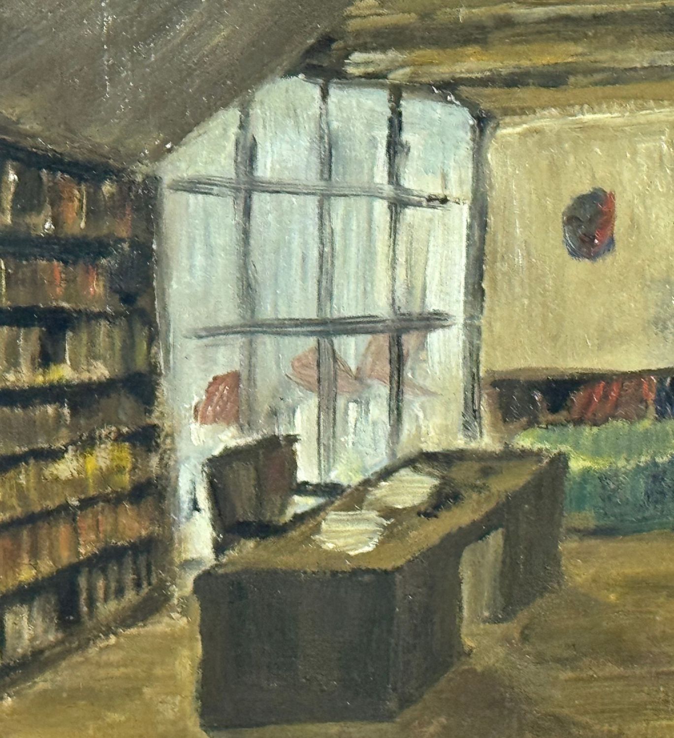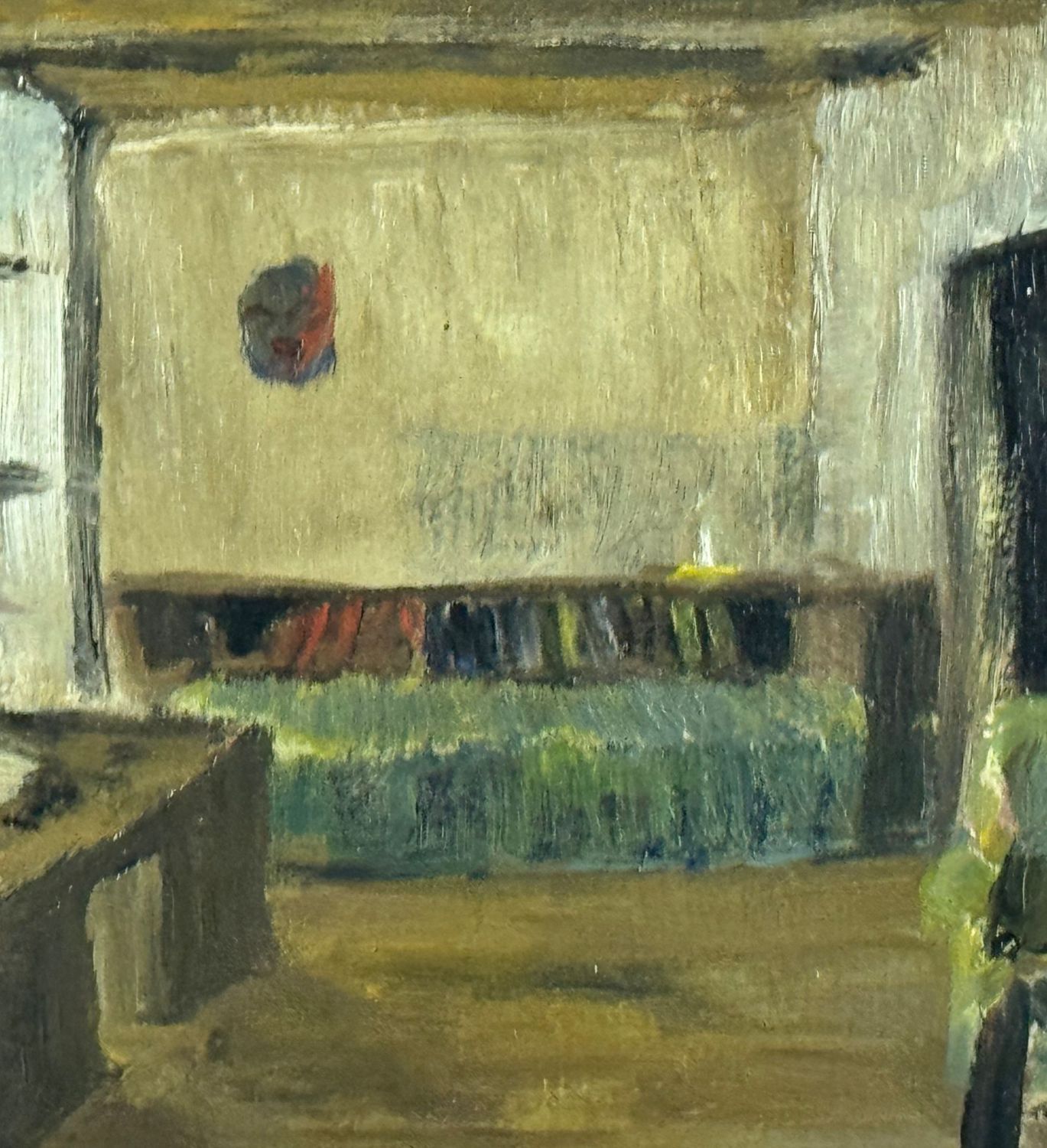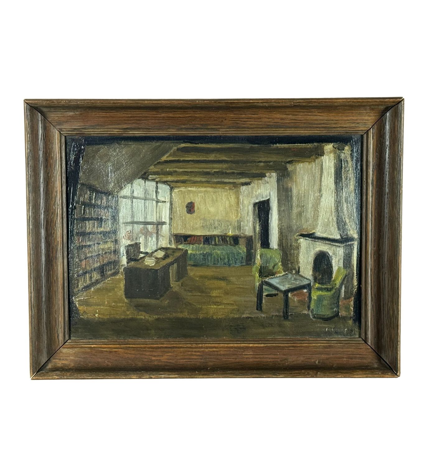 Dipinto olio su tela applicata su cartoncino, periodo XX secolo scuola Europea, raffigurante Interno. Dimensioni compreso cornice: 40,5x30,5 cm. Diemnsioni interno cornice: 34x24 cm. Reca firma in basso a destra da artista non identiifcato. Opera in buone condizioni.