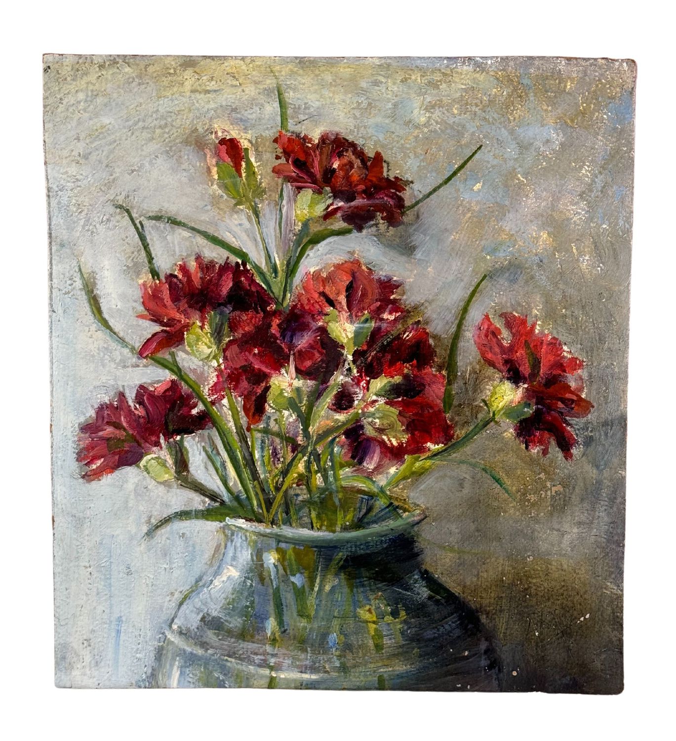 Dipinto olio su cartoncino, periodo XX secolo scuola Italiana, raffigurante Vaso con fiori. Dimensioni: 28x30,5 cm. Da artista anonimo. Opera in buone condizioni.