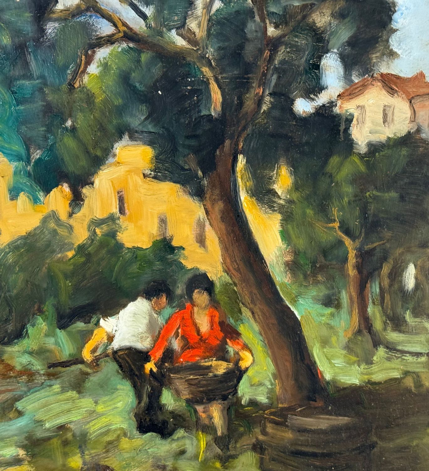Dipinto olio su pannello, periodo XX secolo scuola Italiana, raffigurante Paesaggio con personaggi. Dimensioni: 50x40 cm. Reca firma in basso a destra F. Nicolardi. Opera in buone condizioni con lievi segni di vissuto come da foto allegate.