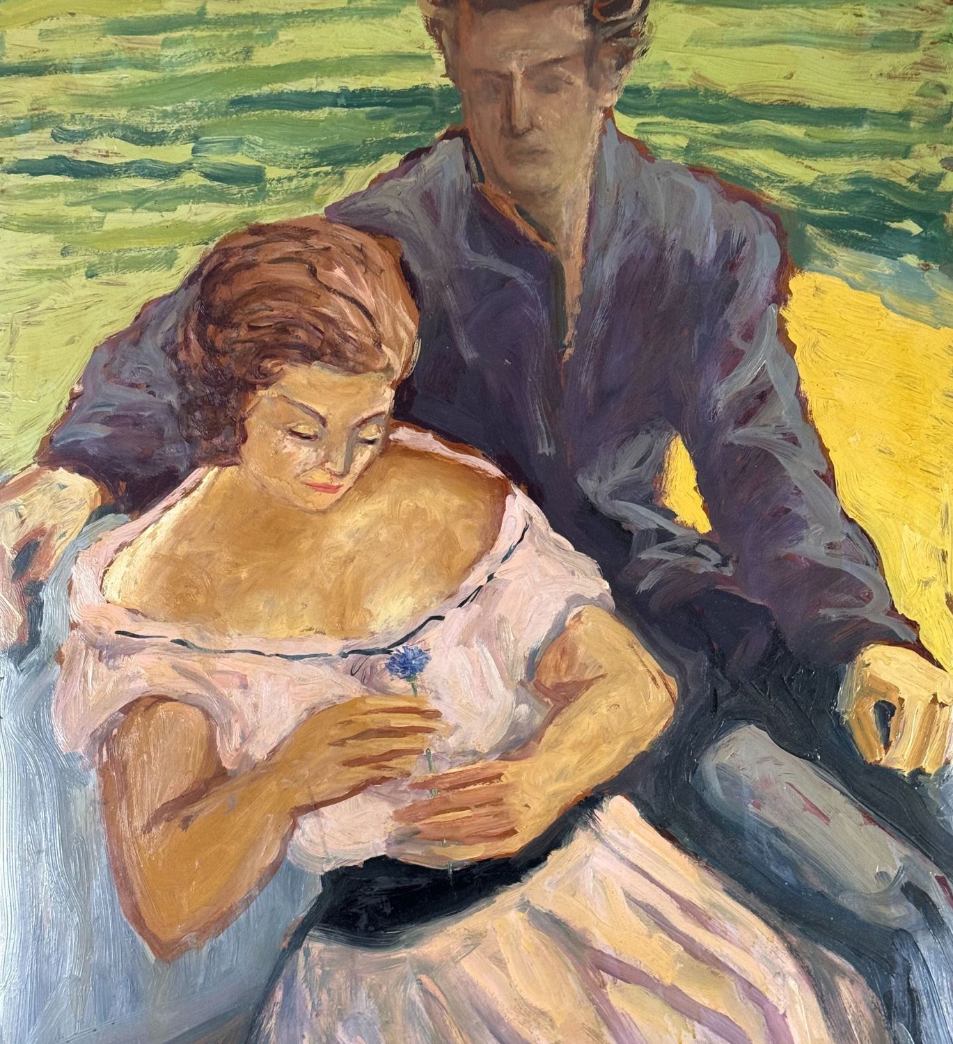 Dipinto olio su cartoncino, periodo XX secolo scuola Italiana, raffigurante Due personaggi. Dimensioni compreso cornice: 106x130 cm. Dimensioni interno cornice: 70x97 cm. Da artista anonimo. Opera in buone condizioni.