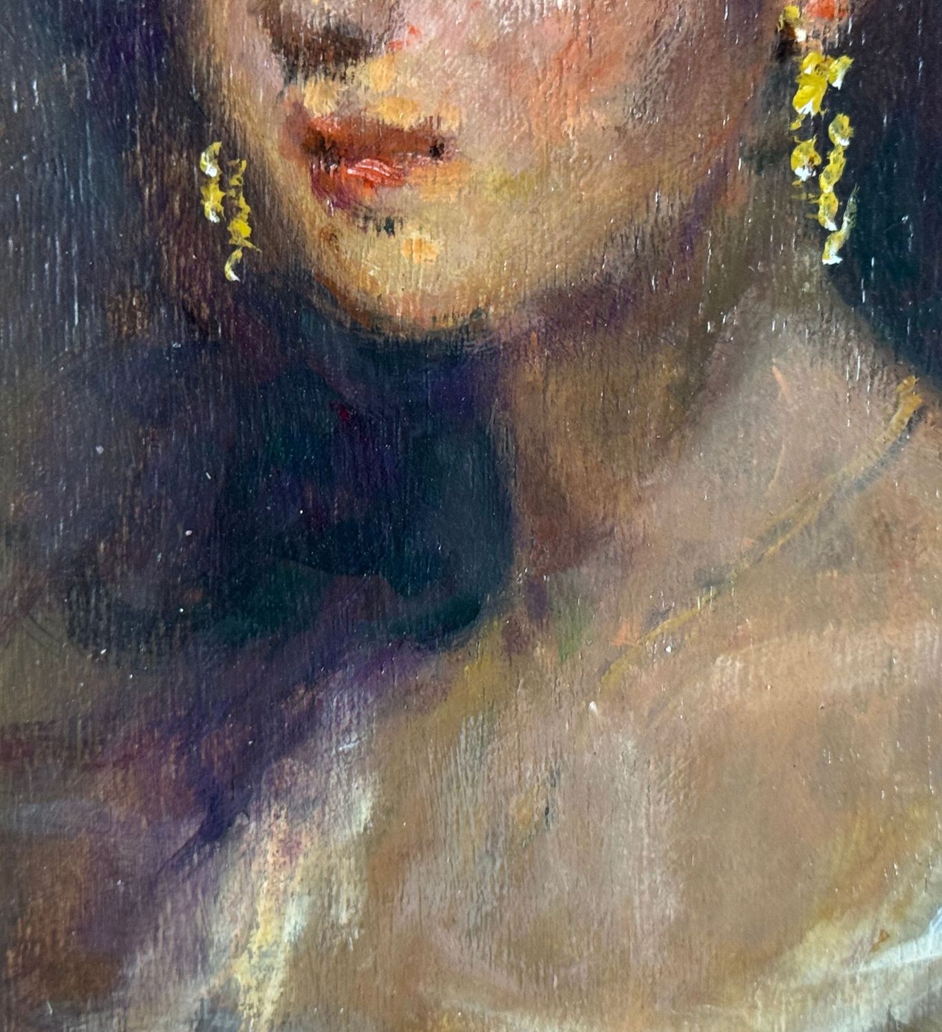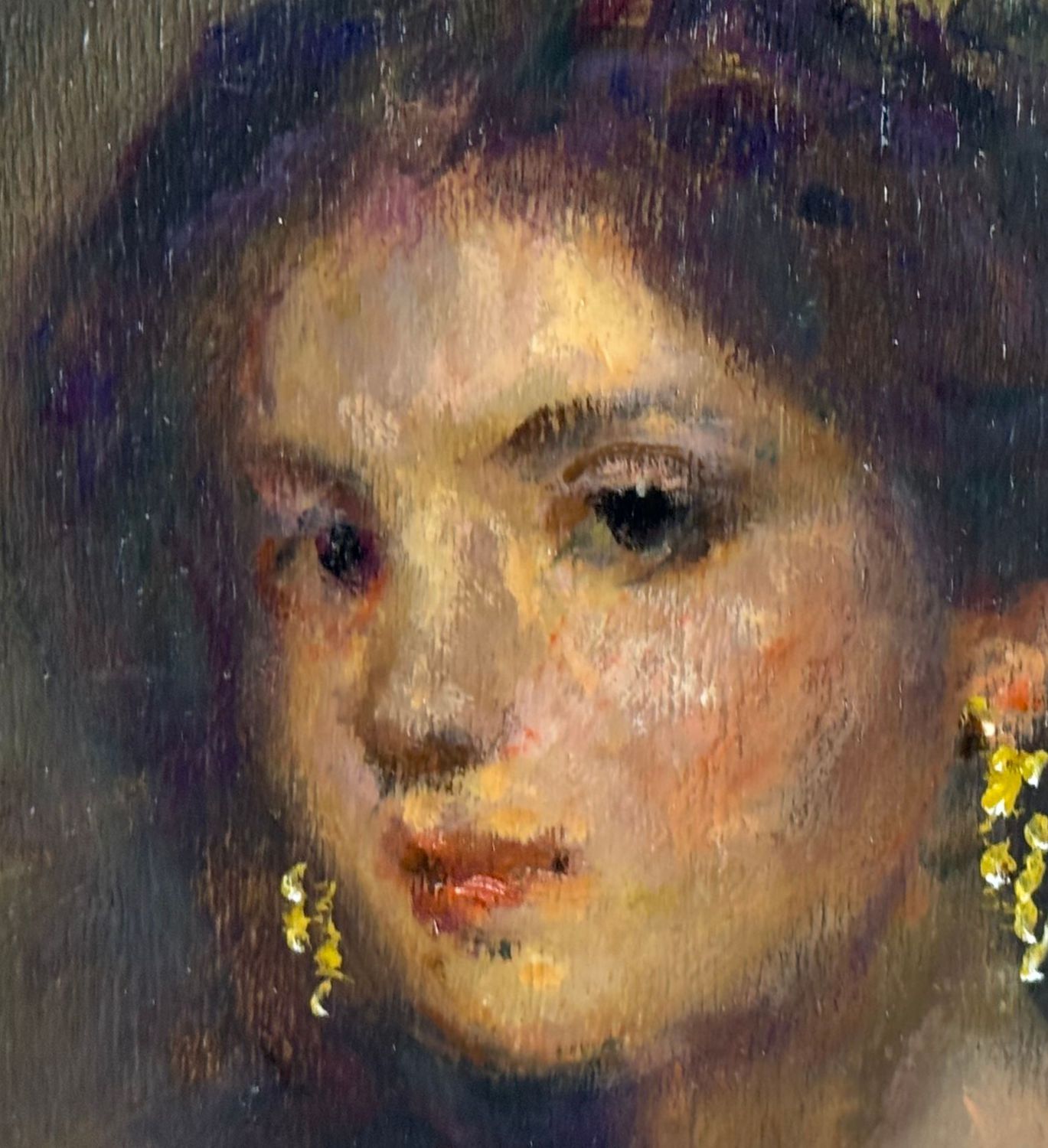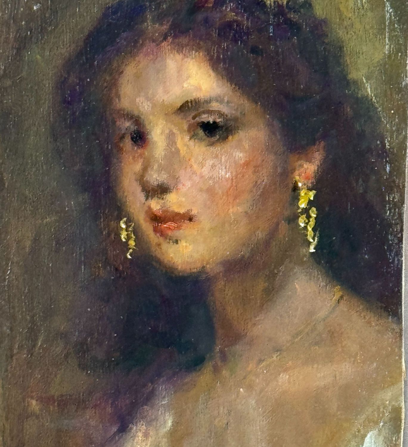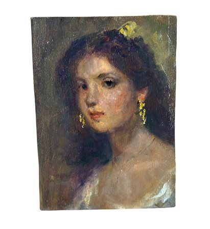 Dipinto olio su tavola, periodo XX secolo, scuola Italiana, raffigurante Profilo di donna. Dimensioni: 20x14,5 cm. Artista anonimo. Opera in buone condizioni e di ottima qualità artistica.