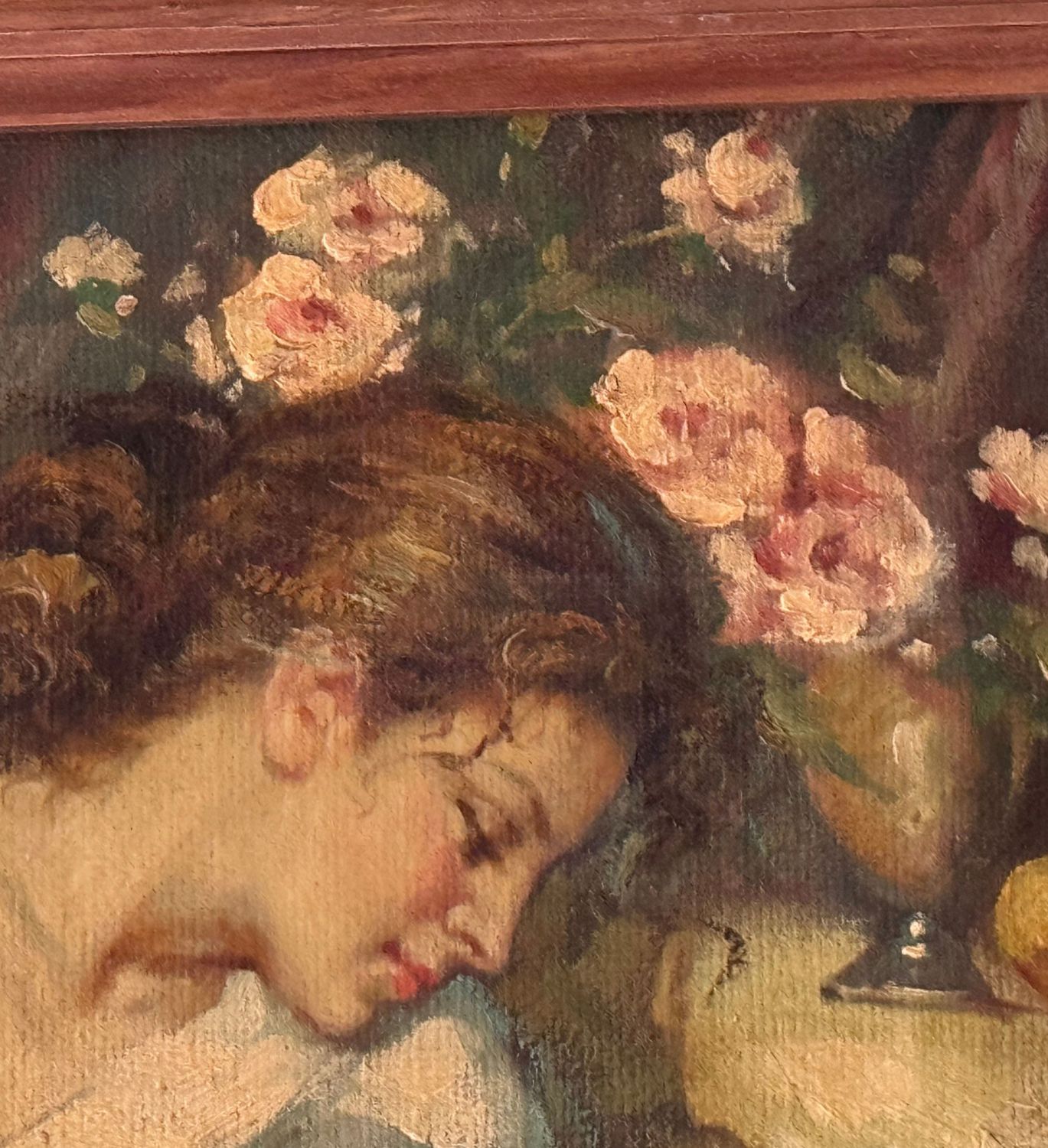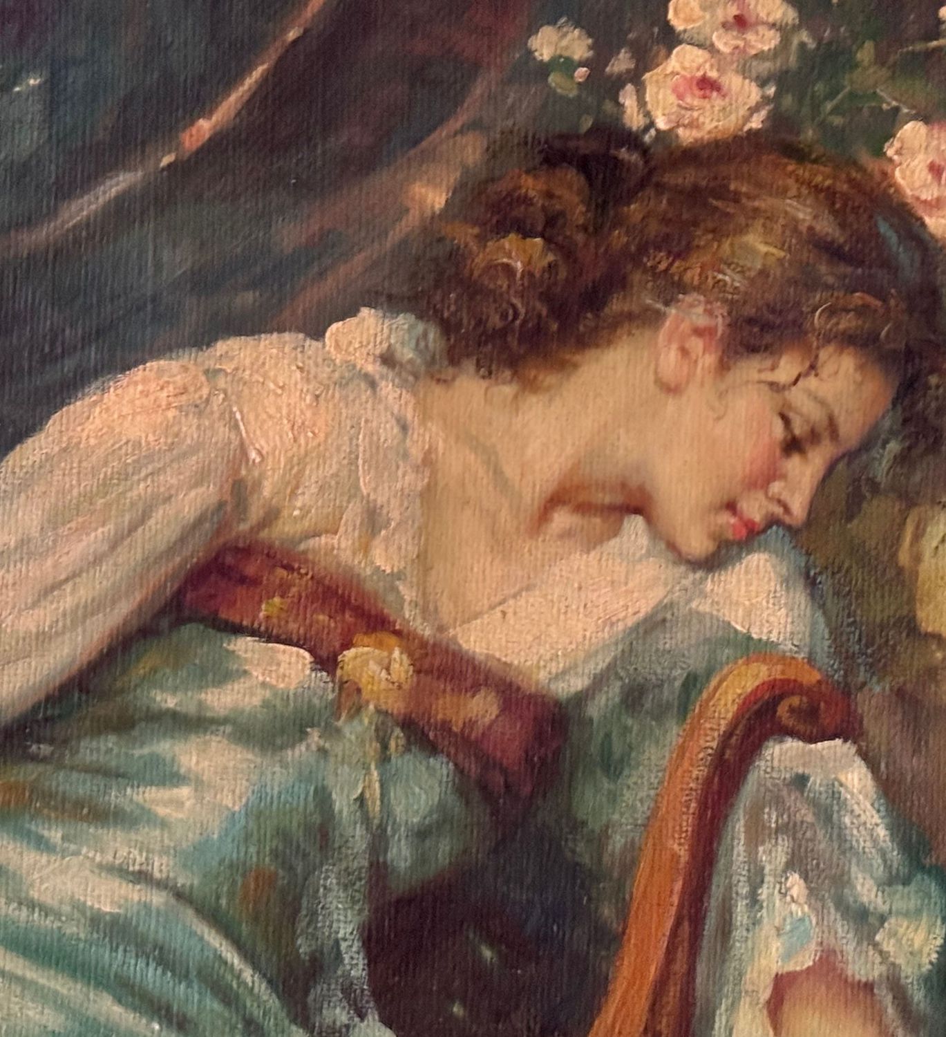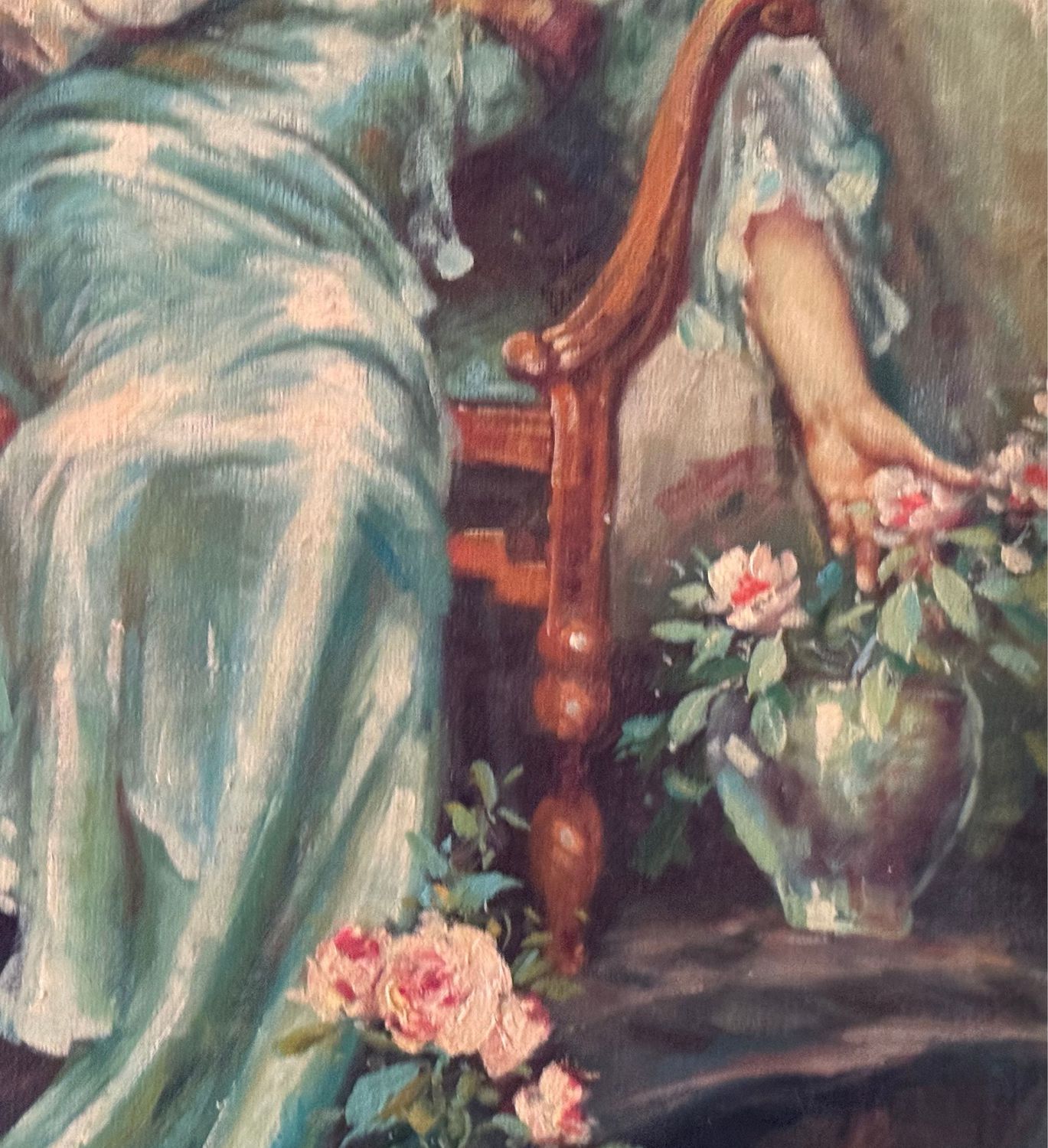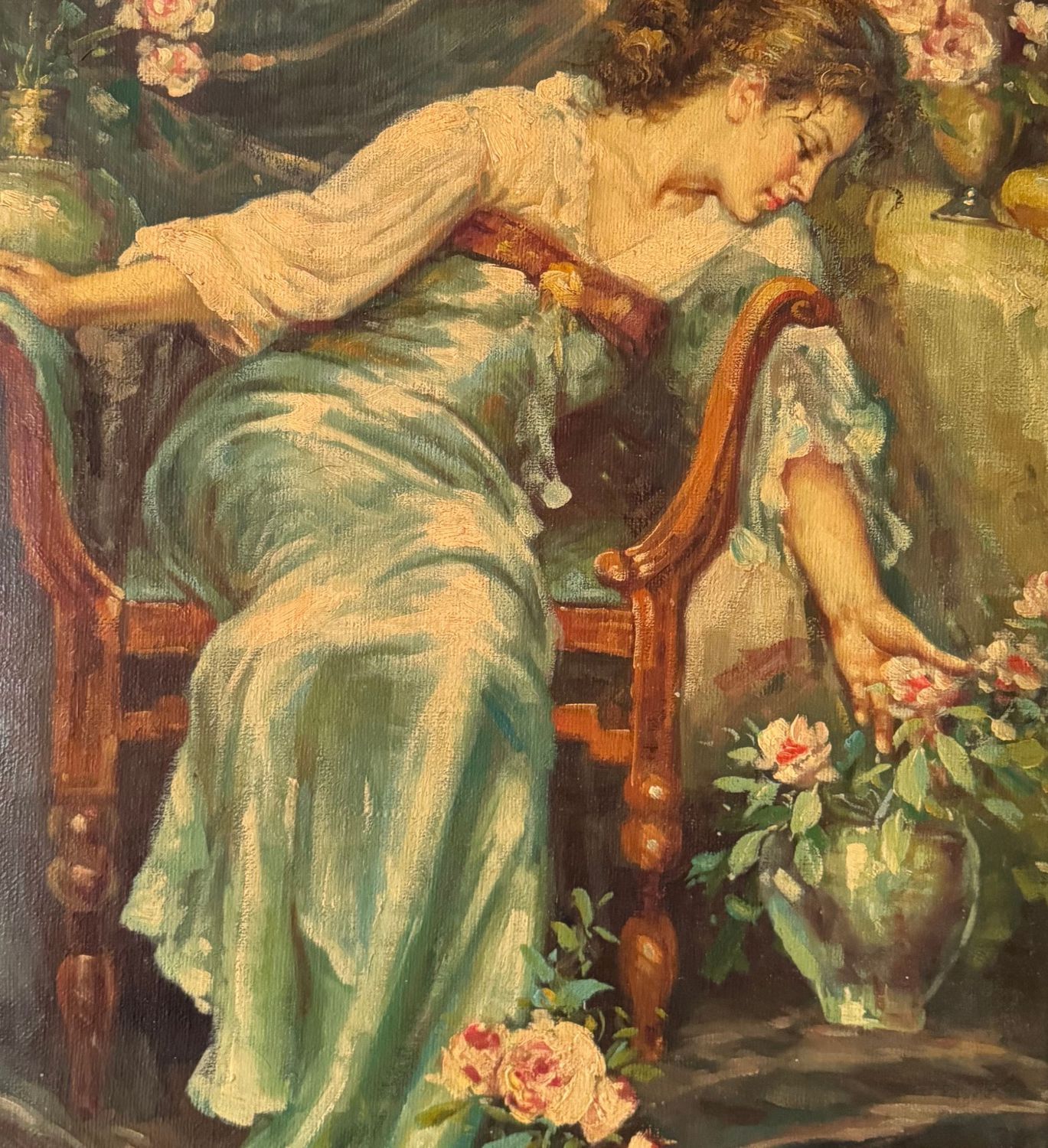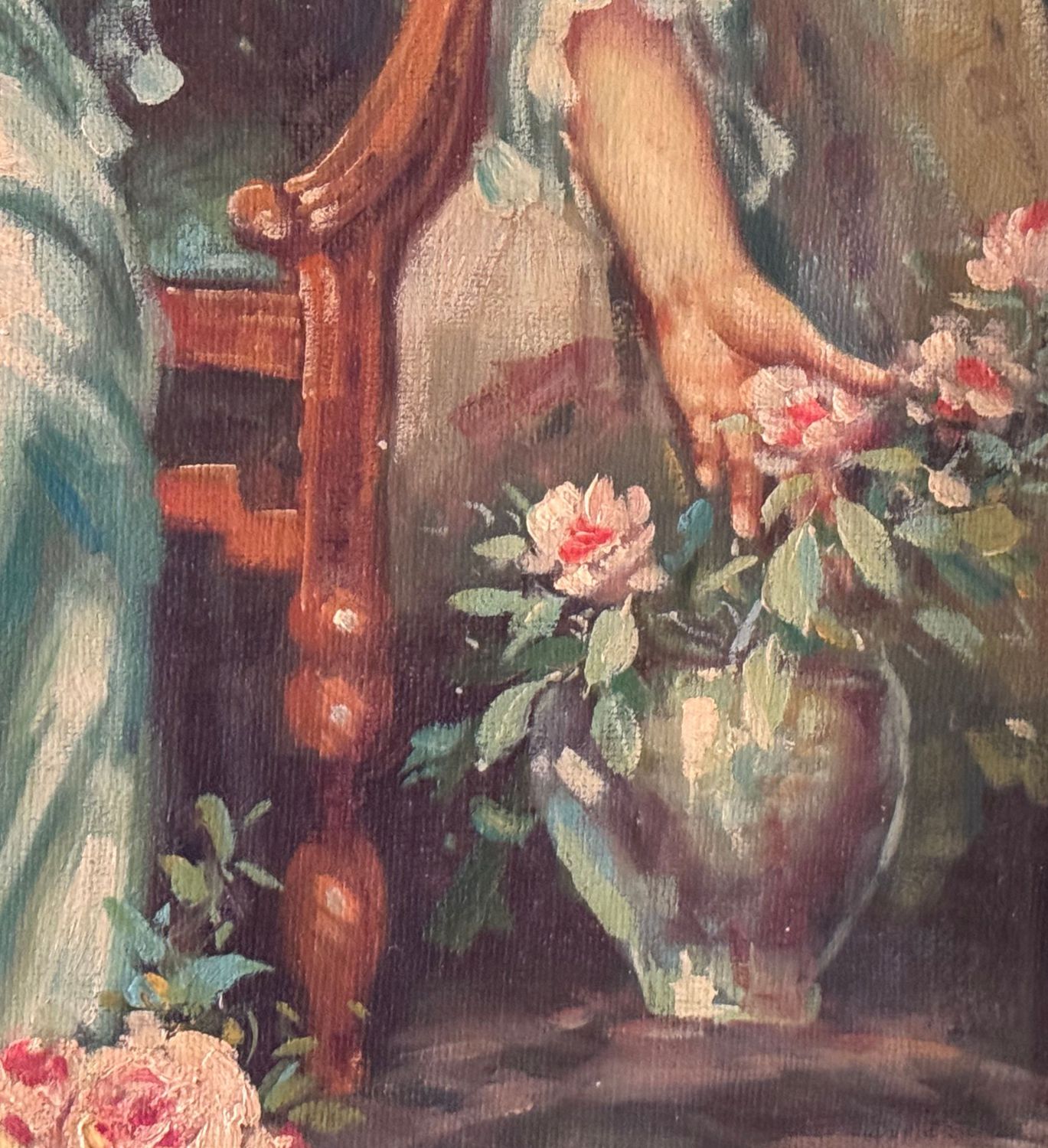 Dipinto olio su tela, periodo XX secolo scuola Italiana, raffigurante Ritratto di donna. Nella maniera di Vincenzo Irolli. Dimensioni compreso cornice: 89x119 cm. Dimensioni interno cornice: 69x100 cm. Da artista anonimo. Opera in buone condizioni.