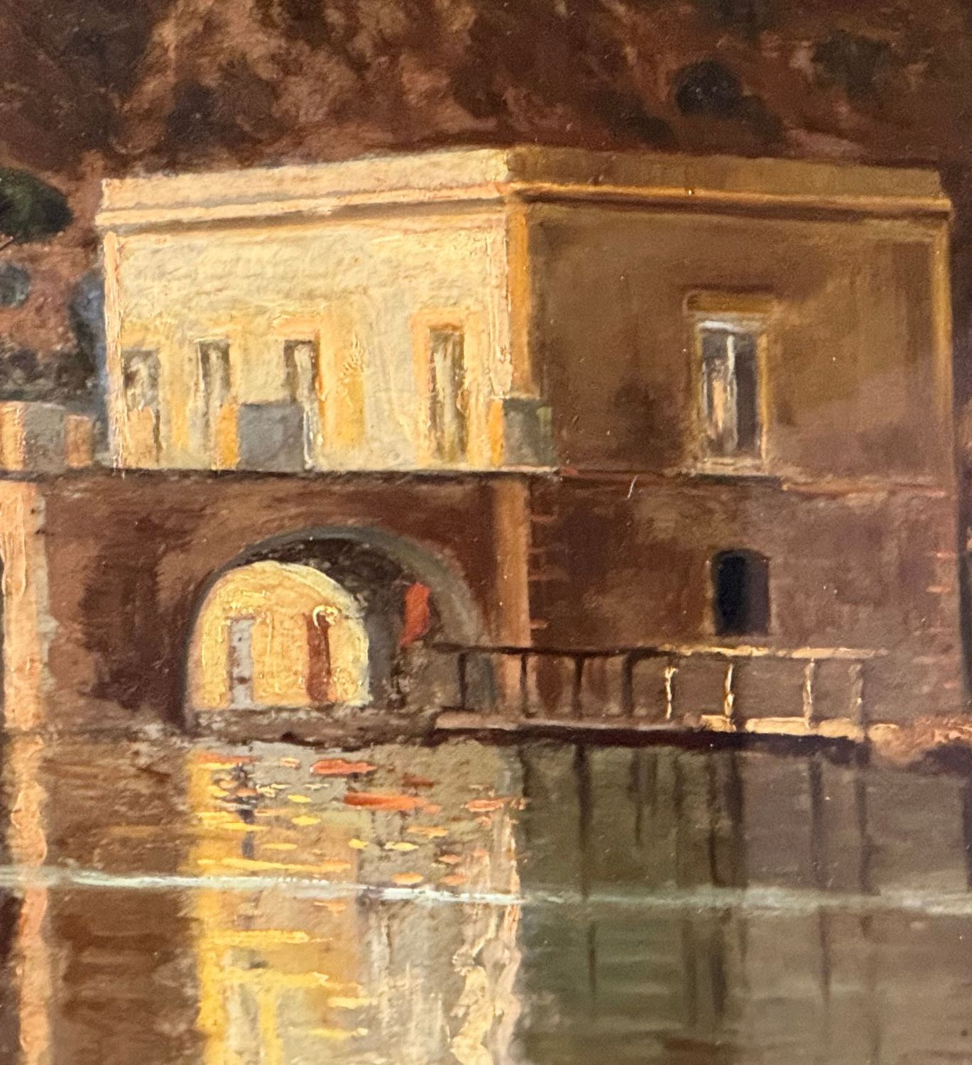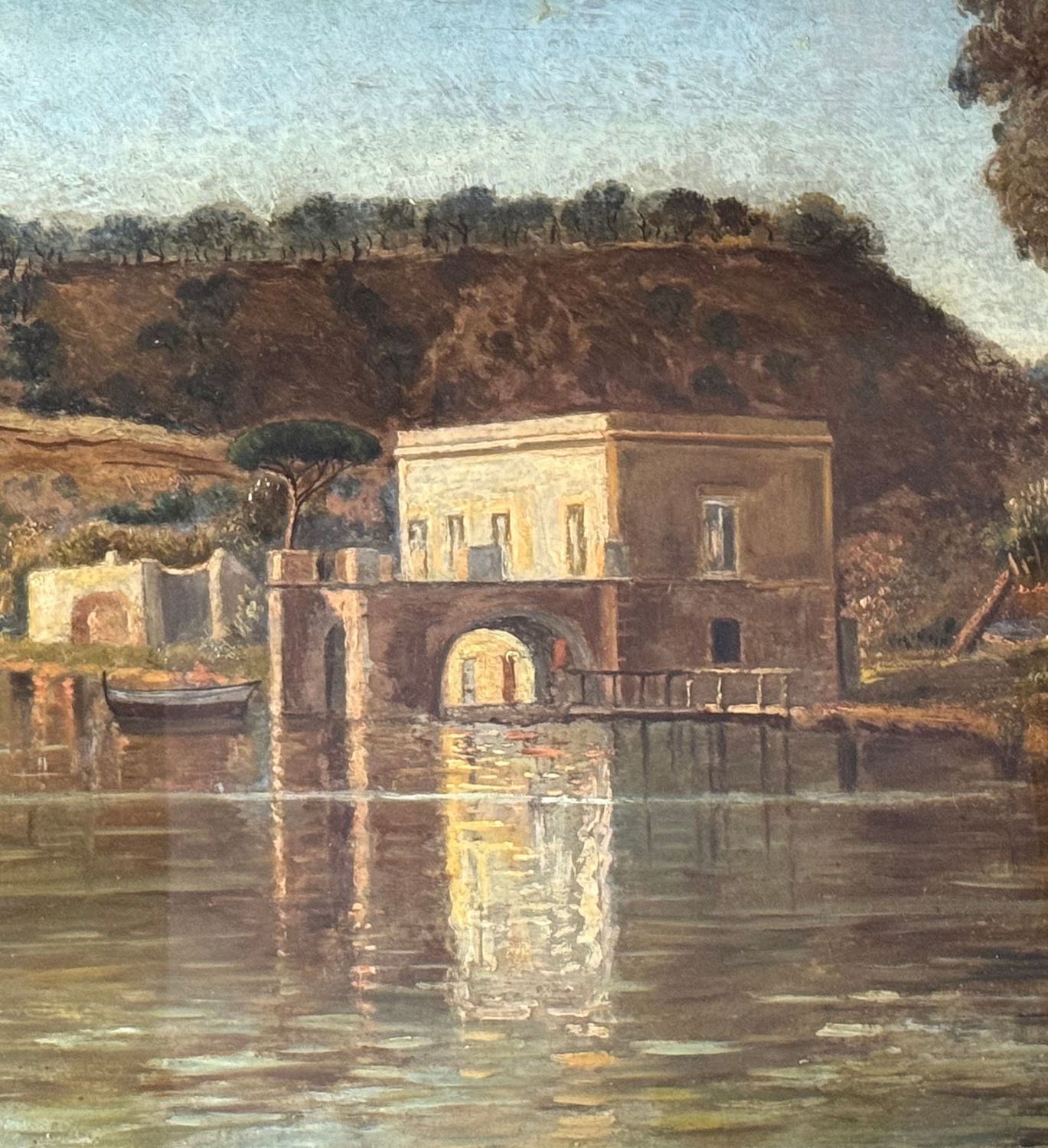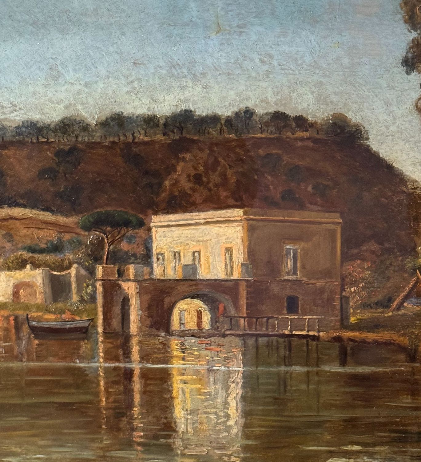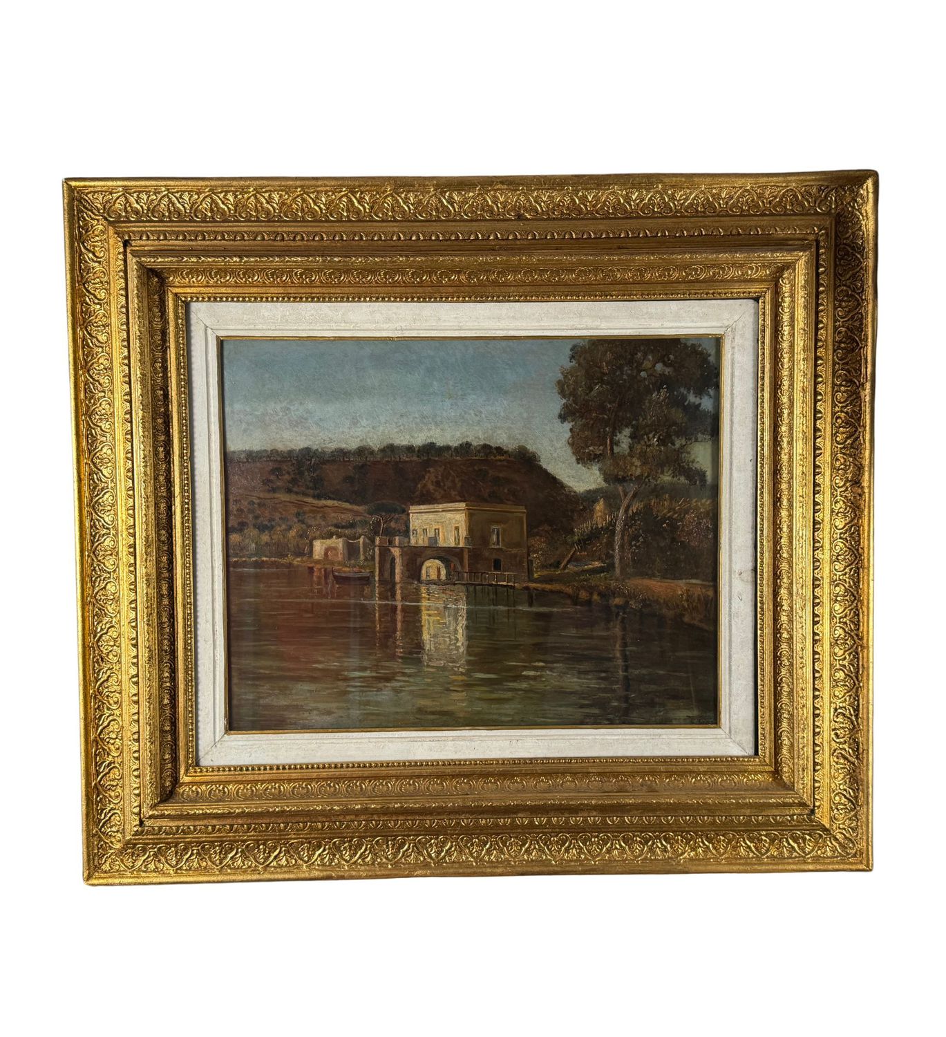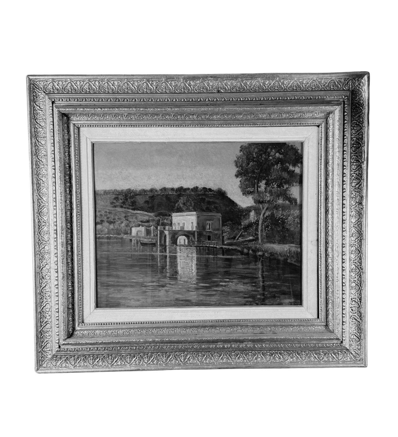 Dipinto olio su tavola, periodo XX secolo scuola Italiana, raffigurante Paesaggio con lago. Dimensioni compreso cornice: 99x87 cm. Dimensioni interno cornice: 62x50 cm. Reca firma in basso a destra Gaetano Ierace. Opera in buone condizioni.