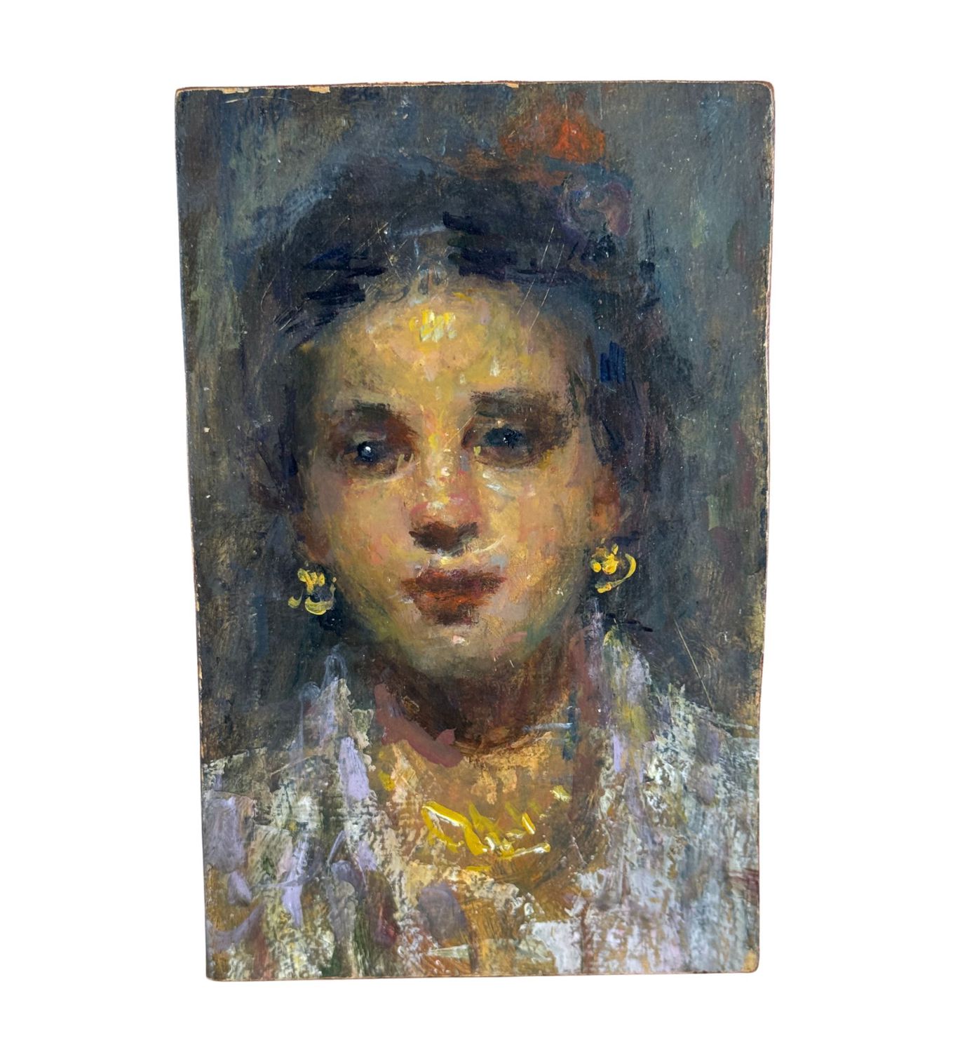 Dipinto olio su tavola, periodo XX secolo, scuola Italiana, raffigurante Ritratto di donna. Dimensioni: 13x20 cm. Artista anonimo. Opera in buone condizioni e di ottima qualità artistica.