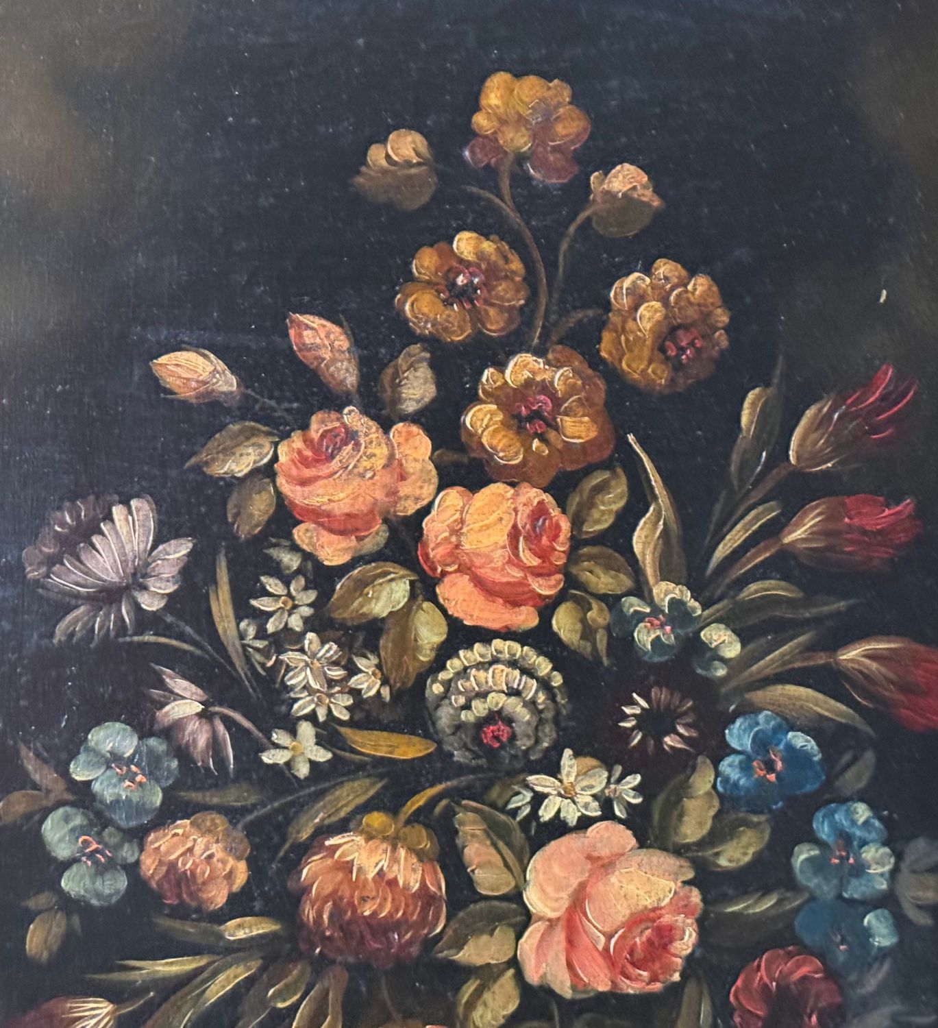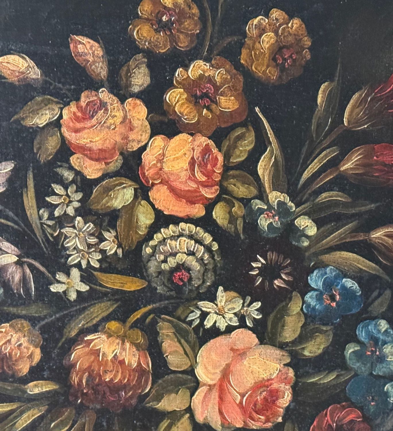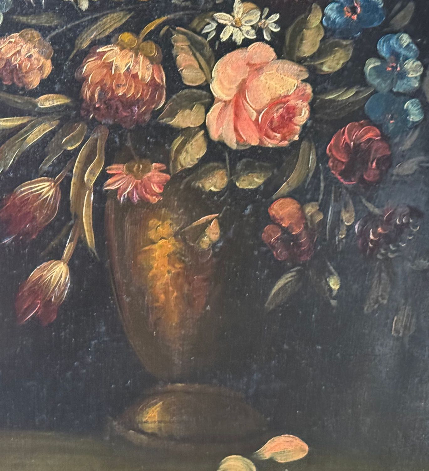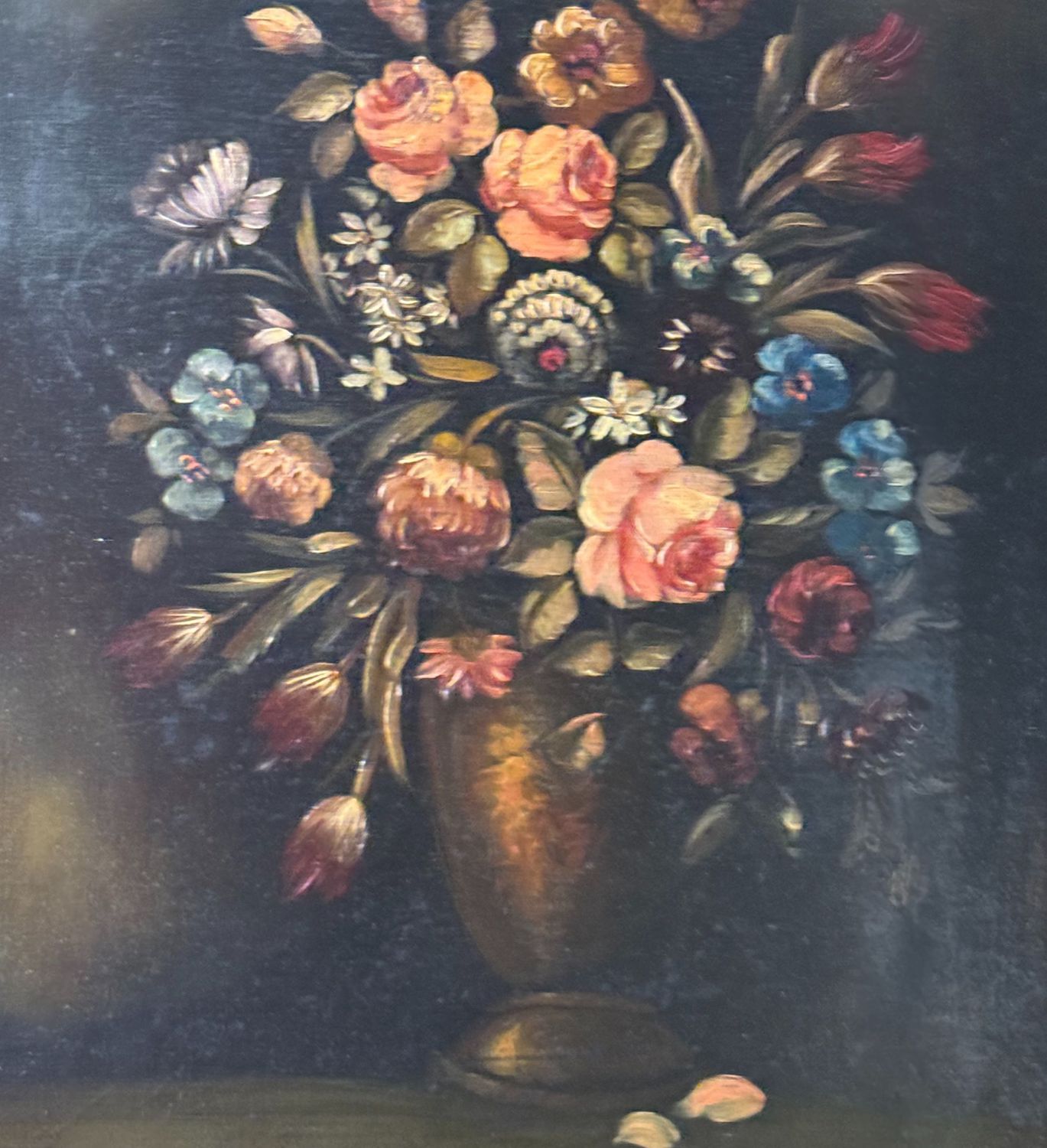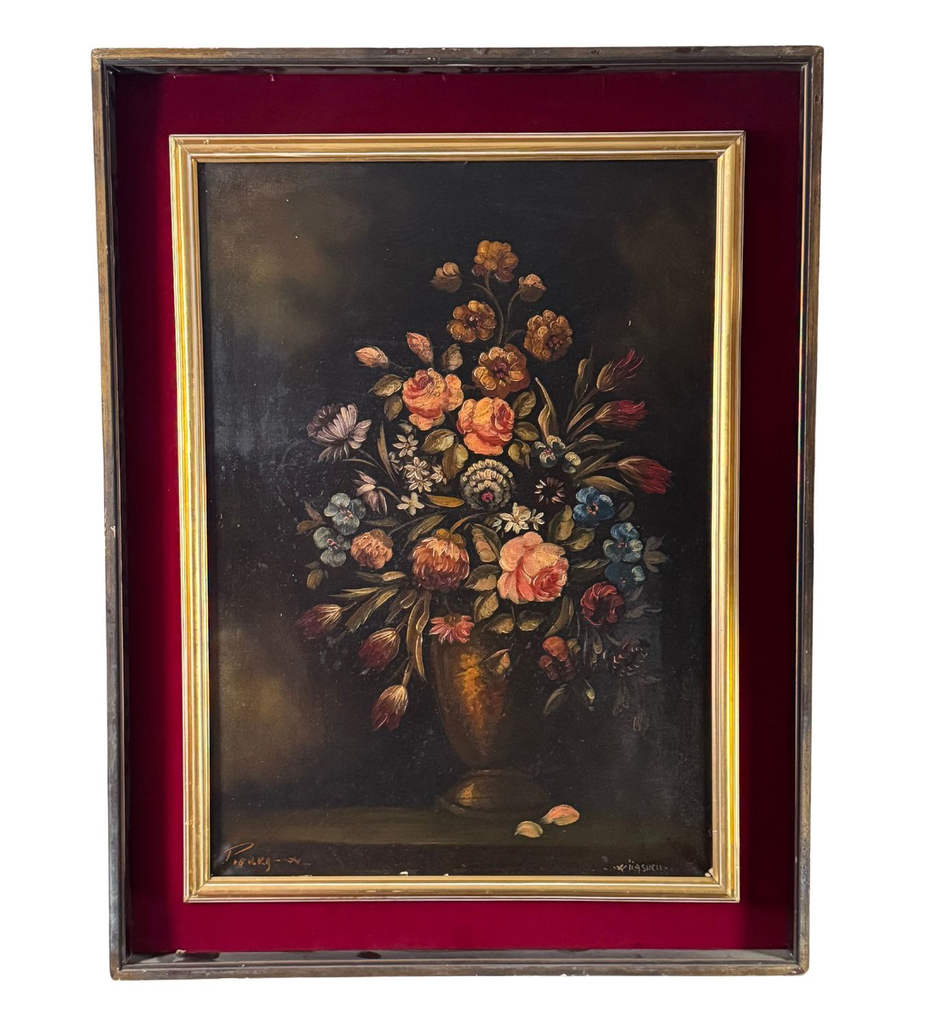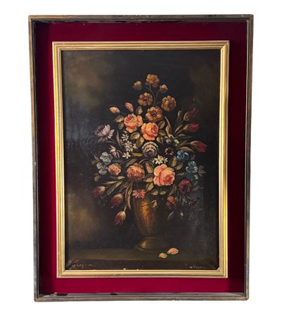 Dipinto olio su tela, periodo prima metà del XX secolo, scuola Italiana, raffigurante Composizione di fiori. Dimensioni compreso cornice: 68x89 cm. Dimensioni interno cornice: 50x70 cm. Reca firma in basso a sinistra artista non identificato. Opera in buone condizioni con lievi segni di vissuto come da foto allegate.