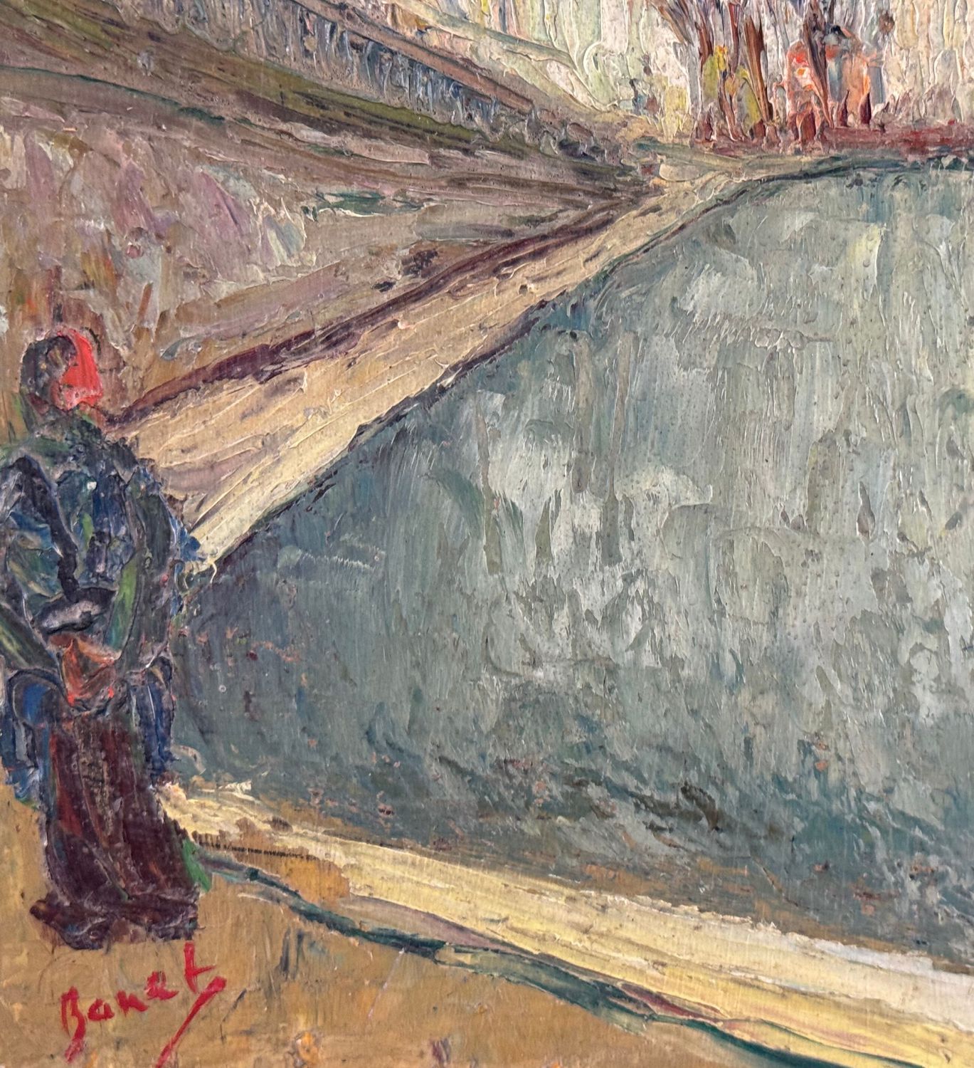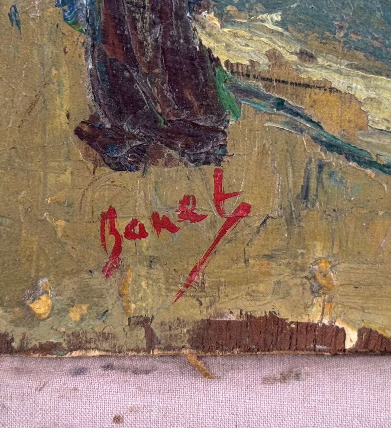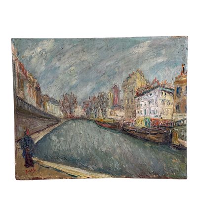 Dipinto olio su pannello, periodo XX secolo, scuola Italiana, raffigurante Scena portuale. Dimensioni: 45x37 cm. Reca firma in basso a sinistra artista non identificato. Opera in buone condizioni con lievi segni di vissuto come da foto allegate.