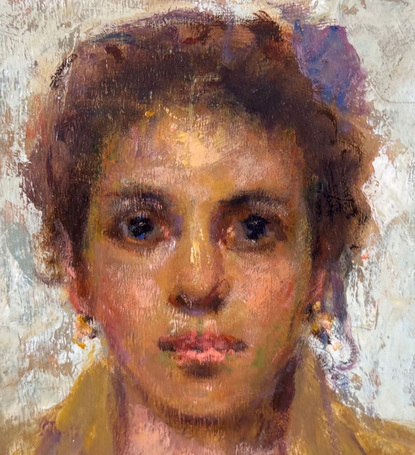 Dipinto olio su tavola, periodo XX secolo, scuola Italiana, raffigurante Ritratto di donna. Dimensioni: 17x23,5 cm. Artista anonimo. Opera in buone condizioni e di ottima qualità artistica.