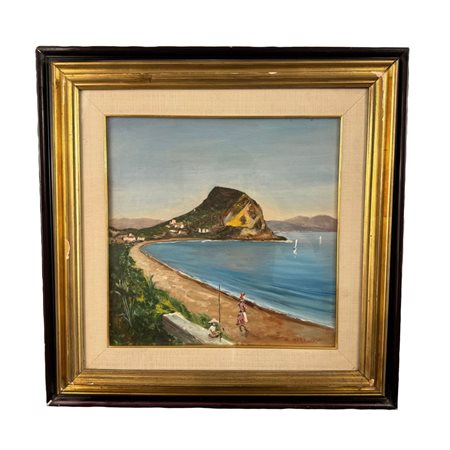 Dipinto olio su tavola, periodo XX secolo scuola Italiana, raffigurante Marina.