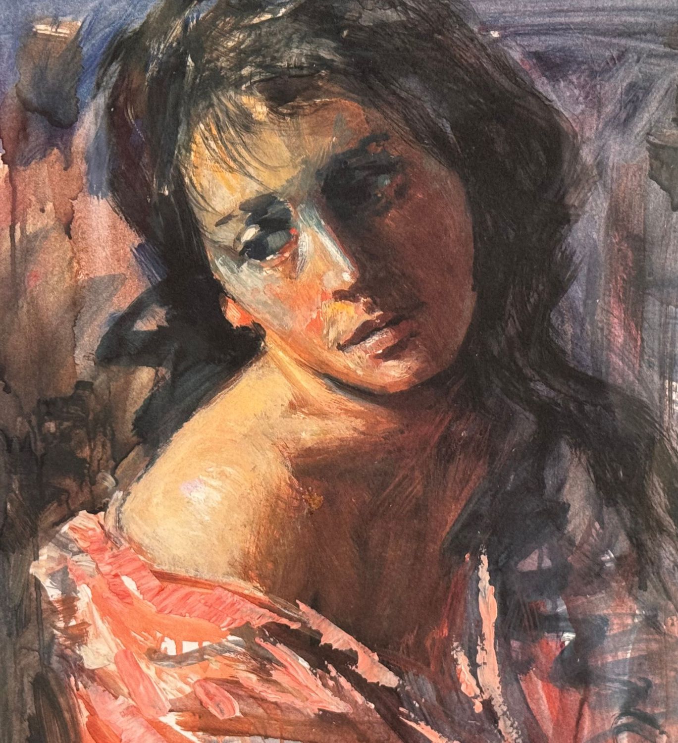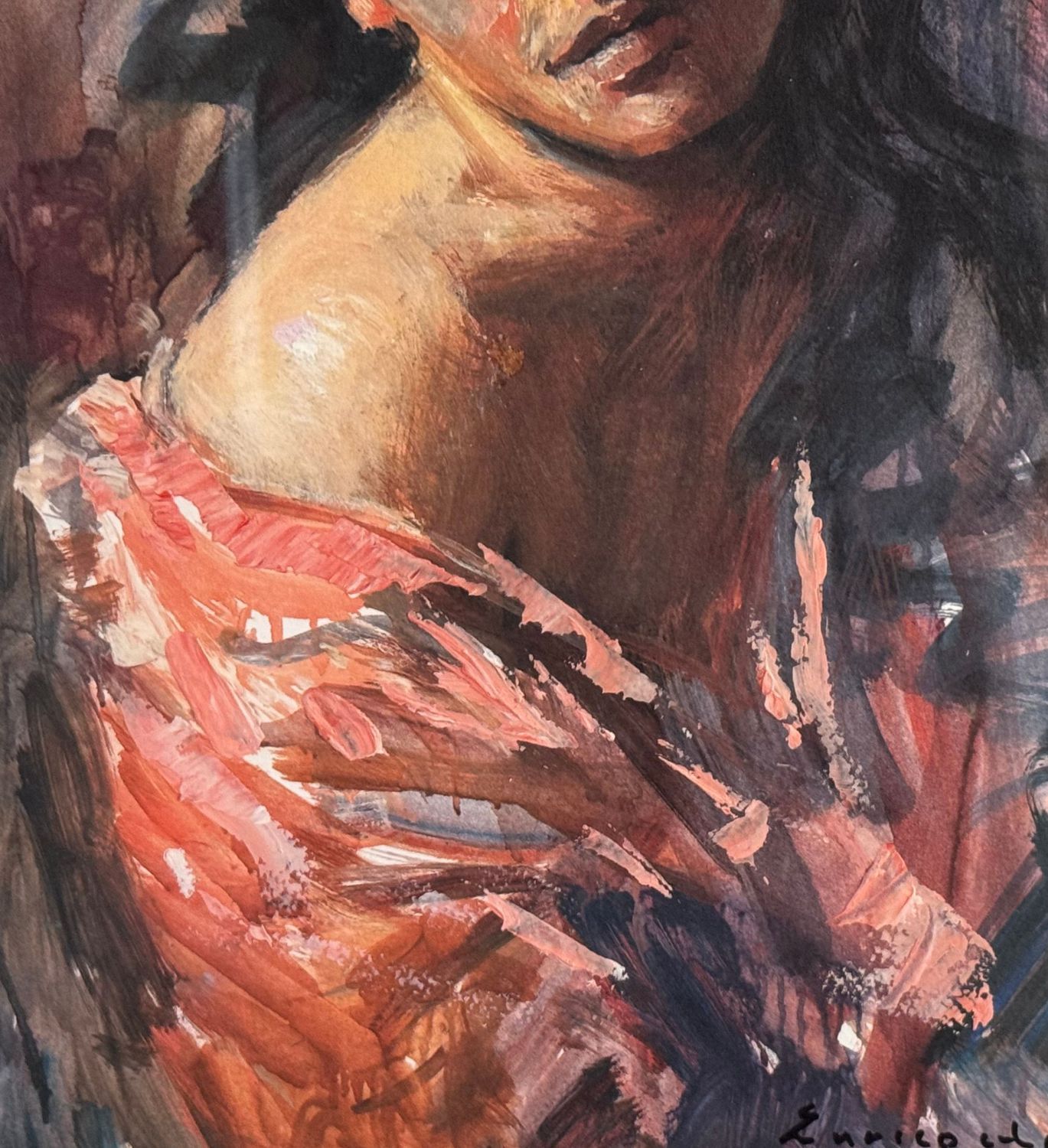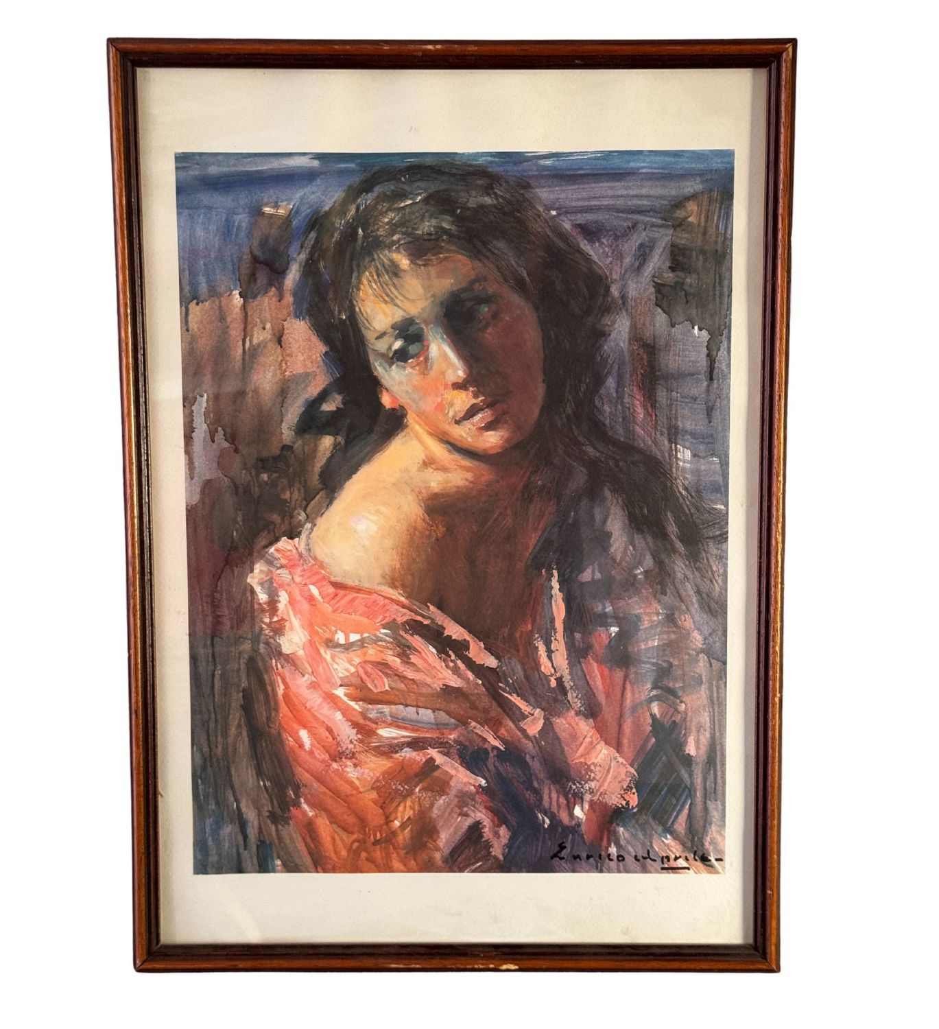 Dipinto tecnica mista su carta, periodo XX secolo scuola Italiana, raffigurante Ritratto di donna. Dimensioni compreso cornice: 36x51 cm. Dimensioni interno cornice: 30x40 cm. Reca firma in basso a destra Enrico Aprile. Opera in buone condizioni.
