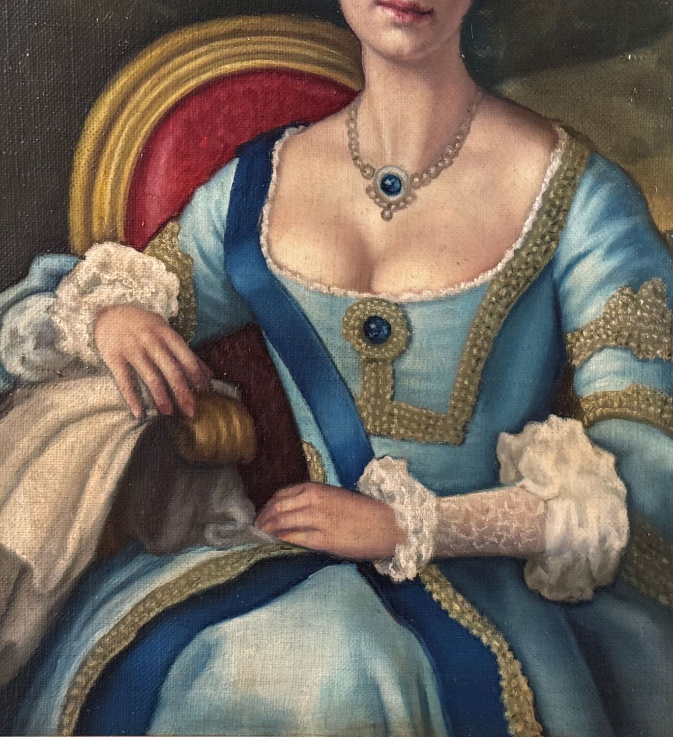 Dipinto olio su tela, periodo XX secolo scuola Italiana, raffigurante Ritratto di Nobil donna. Dimensioni compreso cornice: 73x93 cm. Dimensioni interno cornice: 57x77 cm. Da artista anonimo. Opera in ottime condizioni.