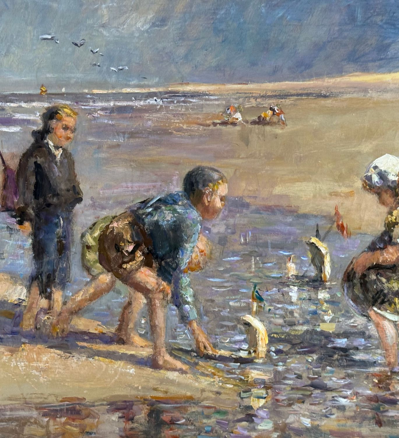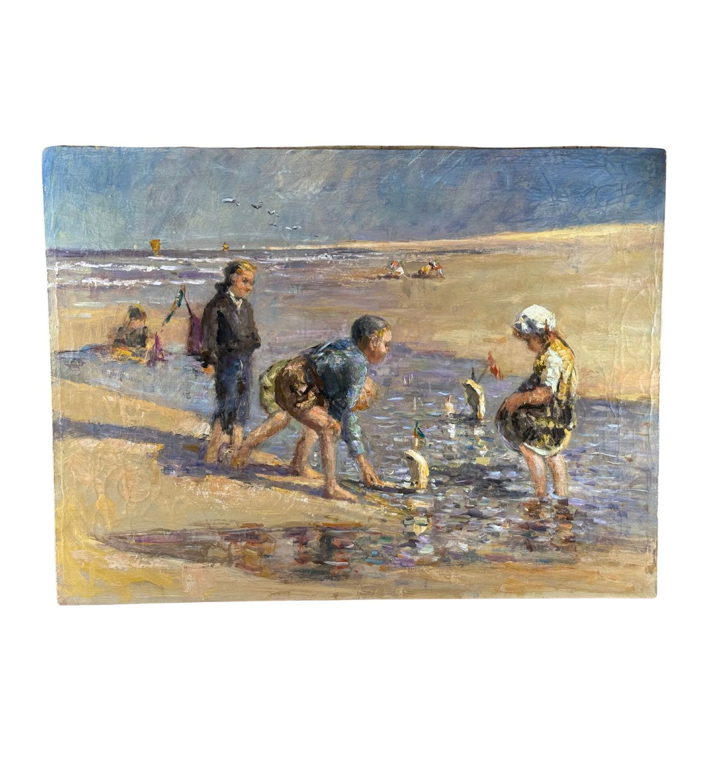 Dipinto olio su tela, periodo XX secolo scuola Italiana, raffigurante Bambini su marina. Tratto da un'opera di Jozef Israels. Dimensioni: 80x60 cm. Da artista anonimo. Opera in buone condizioni con lievi segni di vissuto come da foto allegate.