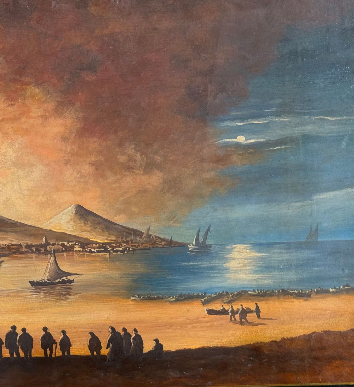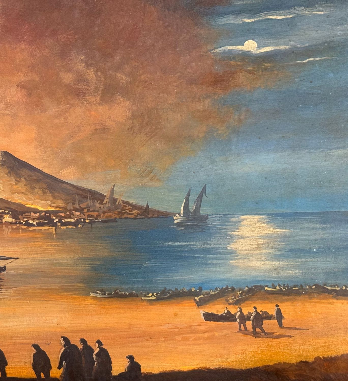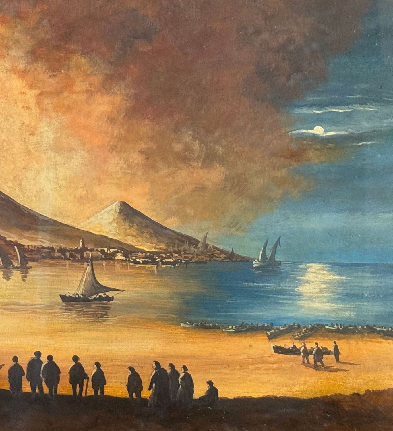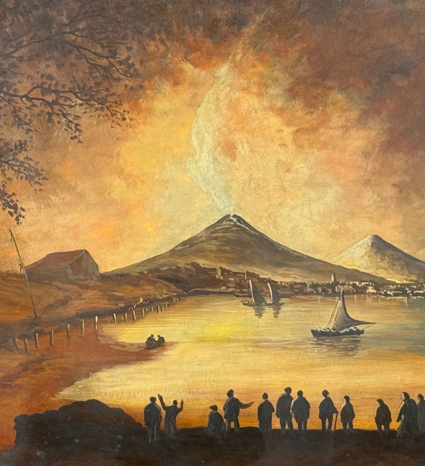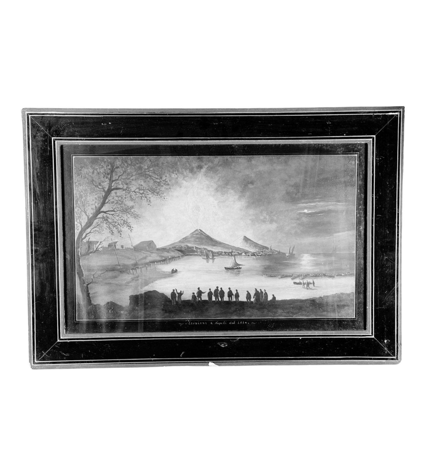 Dipinto guazzo (Acquerello su carta), periodo XX secolo scuola Italiana, raffigurante Eruzione del Vesuvio di notte. Dimensioni compreso cornice: 60x87 cm. Dimensioni interno cornice: 44x71 cm. Da artista anonimo. Opera in buone condizioni. Cornice con lievi segni di vissuto come da foto allegate.