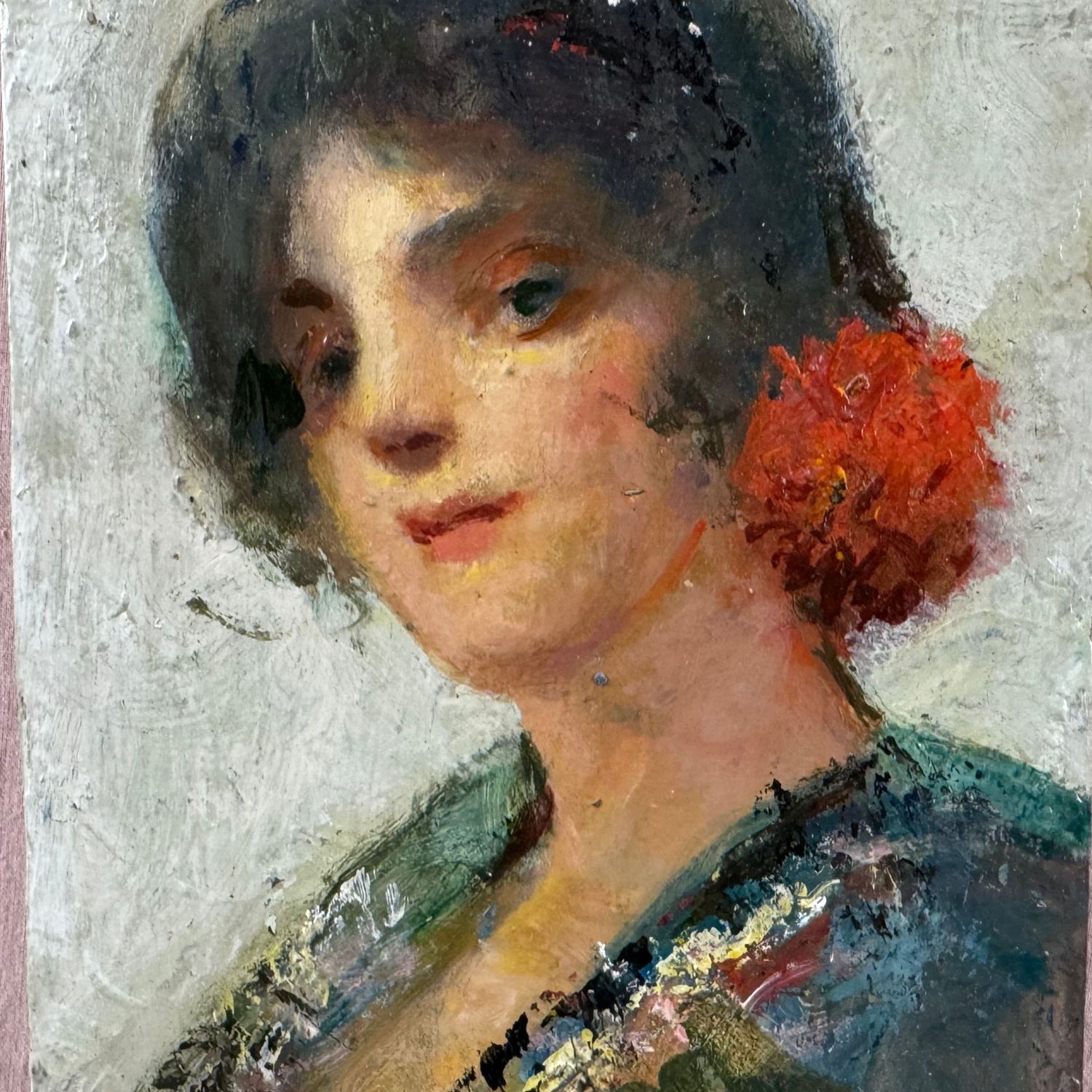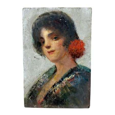 Dipinto olio su tavola, periodo XX secolo scuola Italiana, raffigurante Ritratto di donna nella maniera impressionista. Dimensioni: 15x22 cm. Da artista anonimo. Opera in buone condizioni con lievi segni di vissuto come da foto allegate.