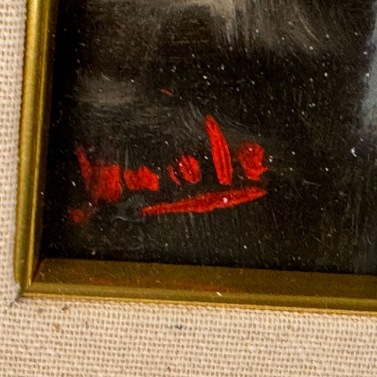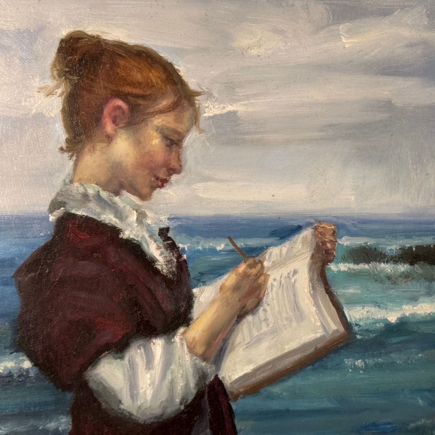 Dipinto olio su tela applicata su cartoncino, periodo XX secolo scuola italiana, raffigurante Donna in lettura su marina. Dimensioni interno cornice: 30x40 cm. Dimensioni compreso cornice: 46x56 cm. Reca firma in basso a sinistra da artista non identificato. Opera in buone condizioni.