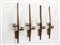 Gruppo di quattro lampade da parete a due luci, con struttura in ferro verniciato, inserti in legno, portalampada in lamina di ottone e paralumi in vetro lattimo acidato. Produzione italiana anni 60 del sec XX (difetti)
