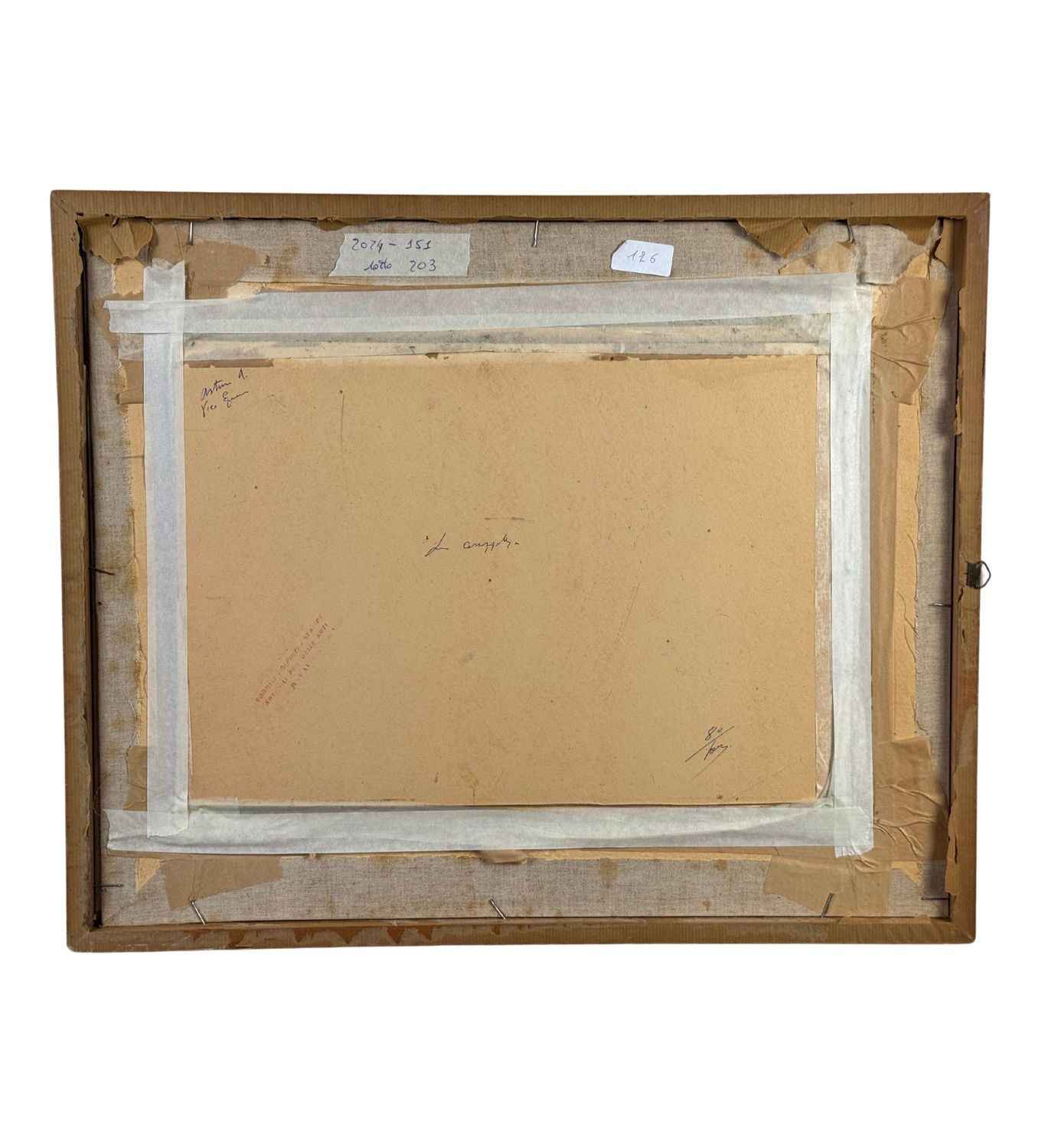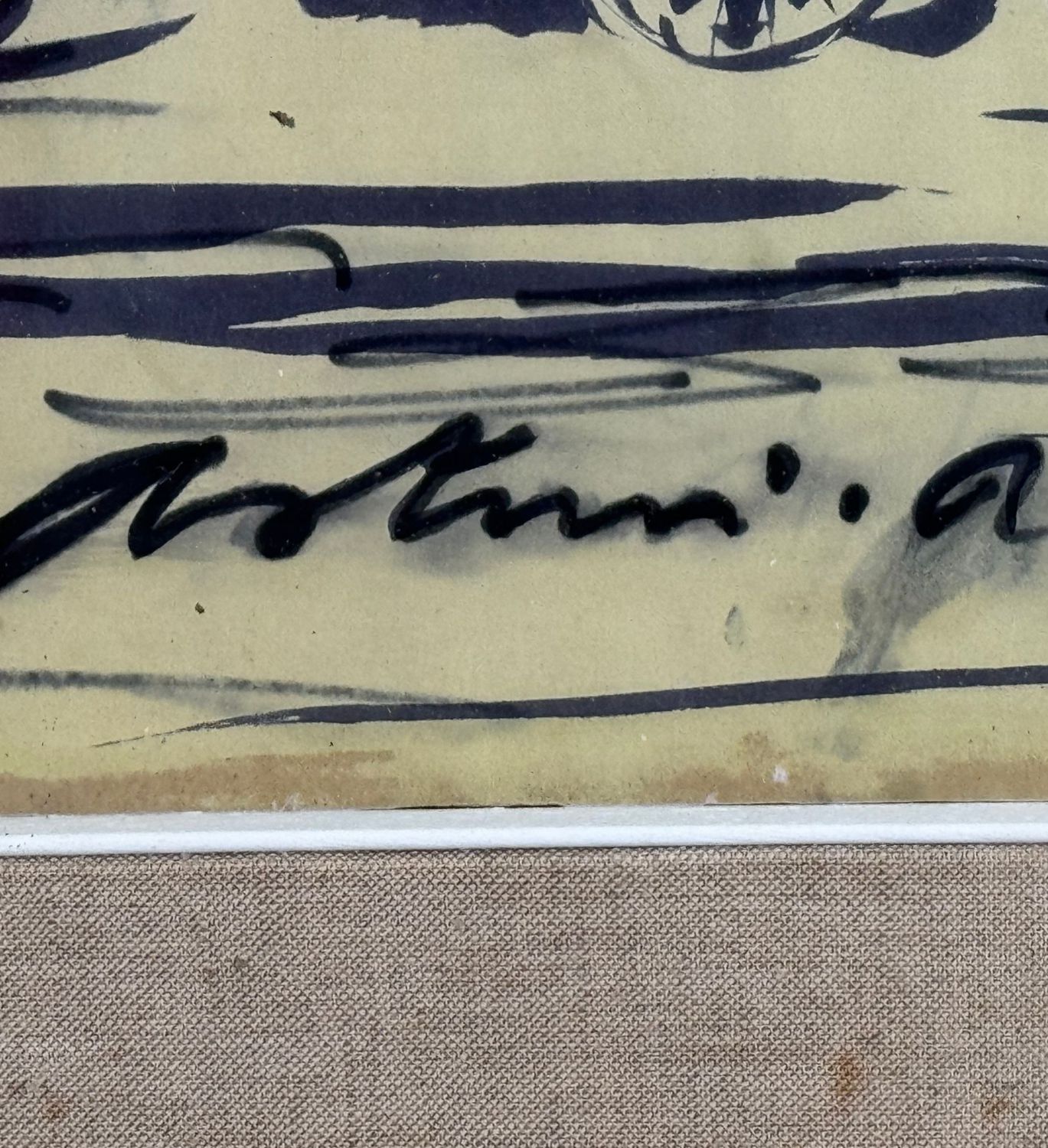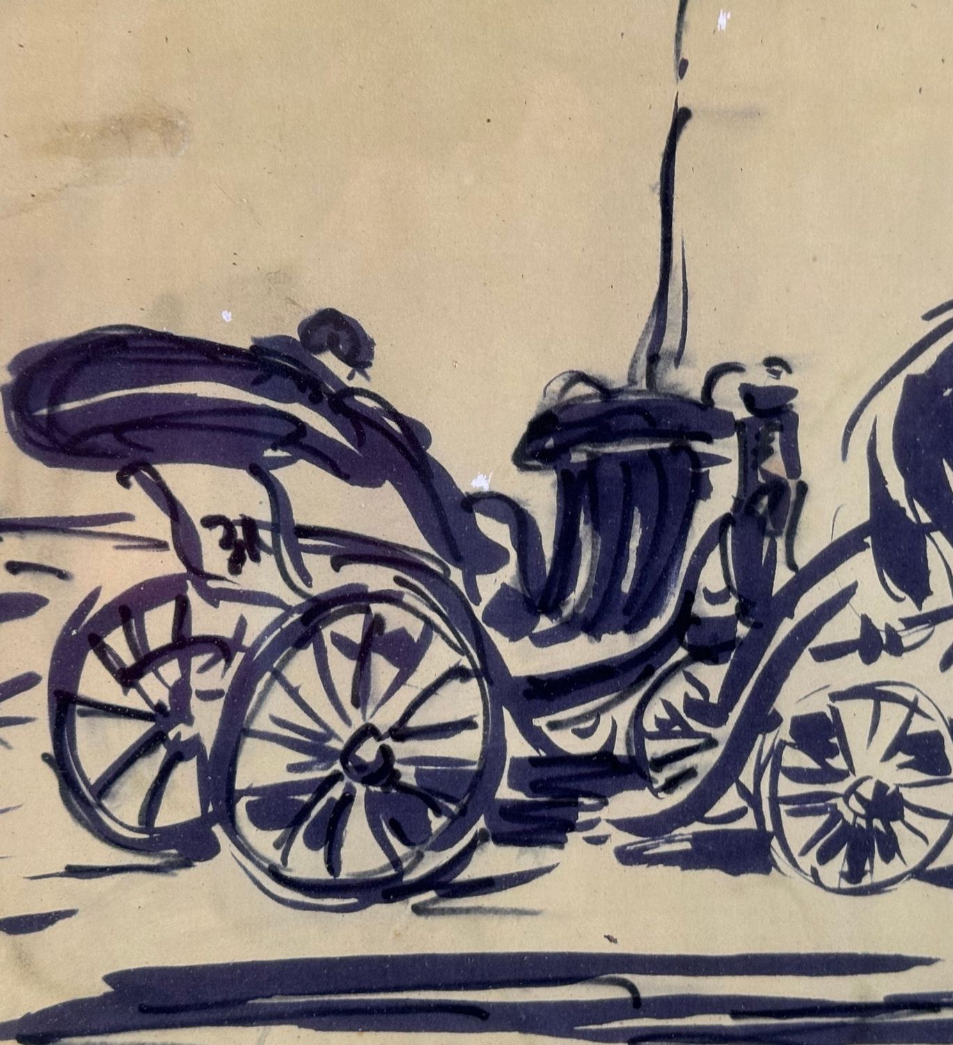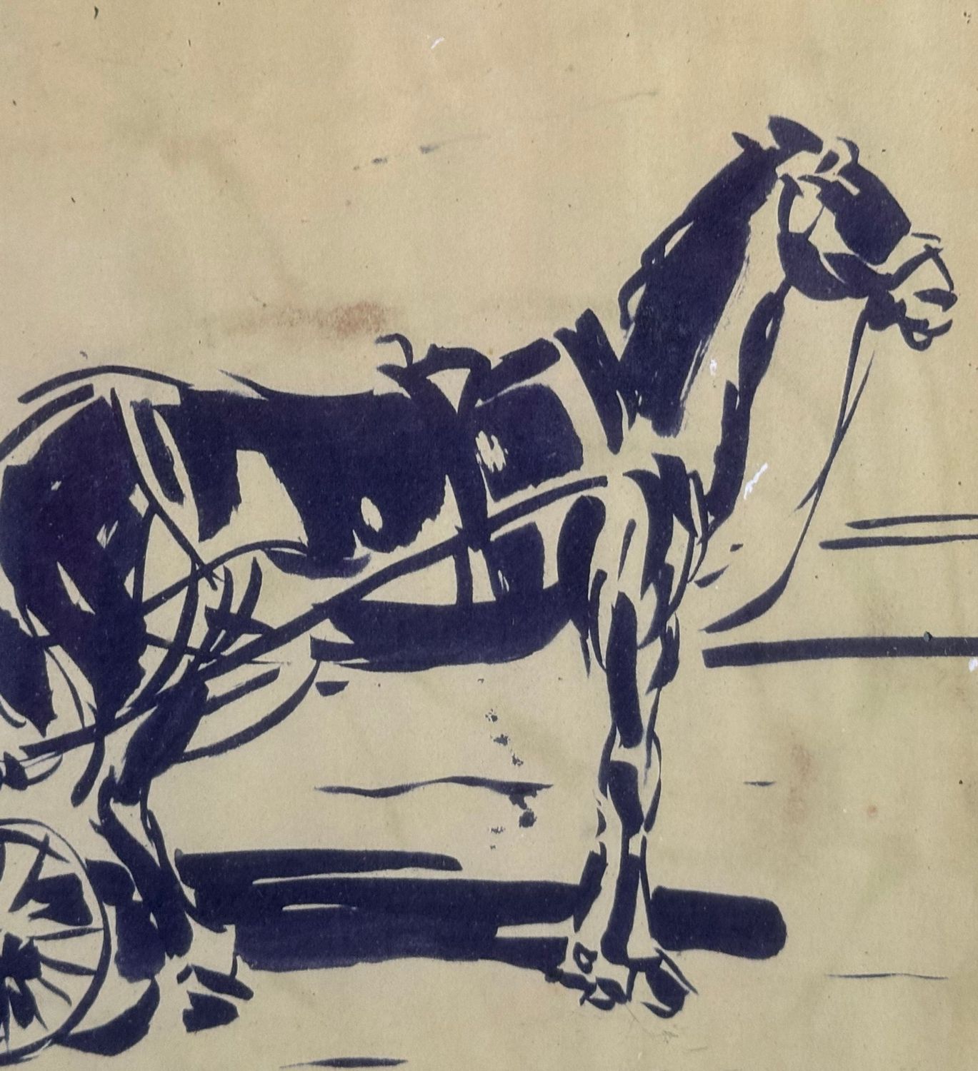 Acquerello su cartoncino, periodo XX secolo scuola Italiana, raffigurante Carrozza con cavallo. Dimensioni compreso cornice: 56,5x46,50 cm. Dimensioni interno cornice: 38,5x29 cm. Reca firma in basso Antonio Asturi (1904 - 1986). Opera in buone condizioni.
