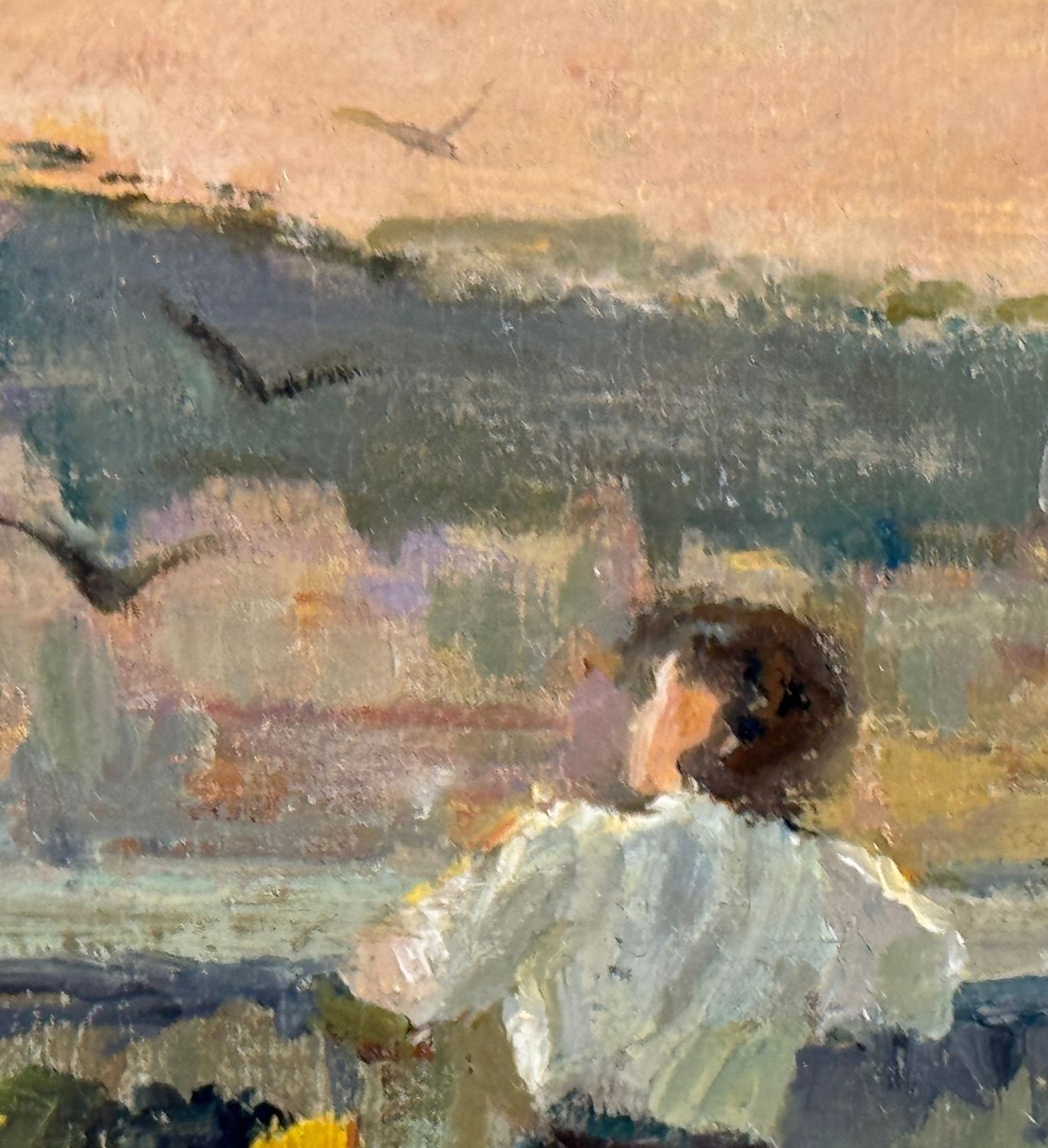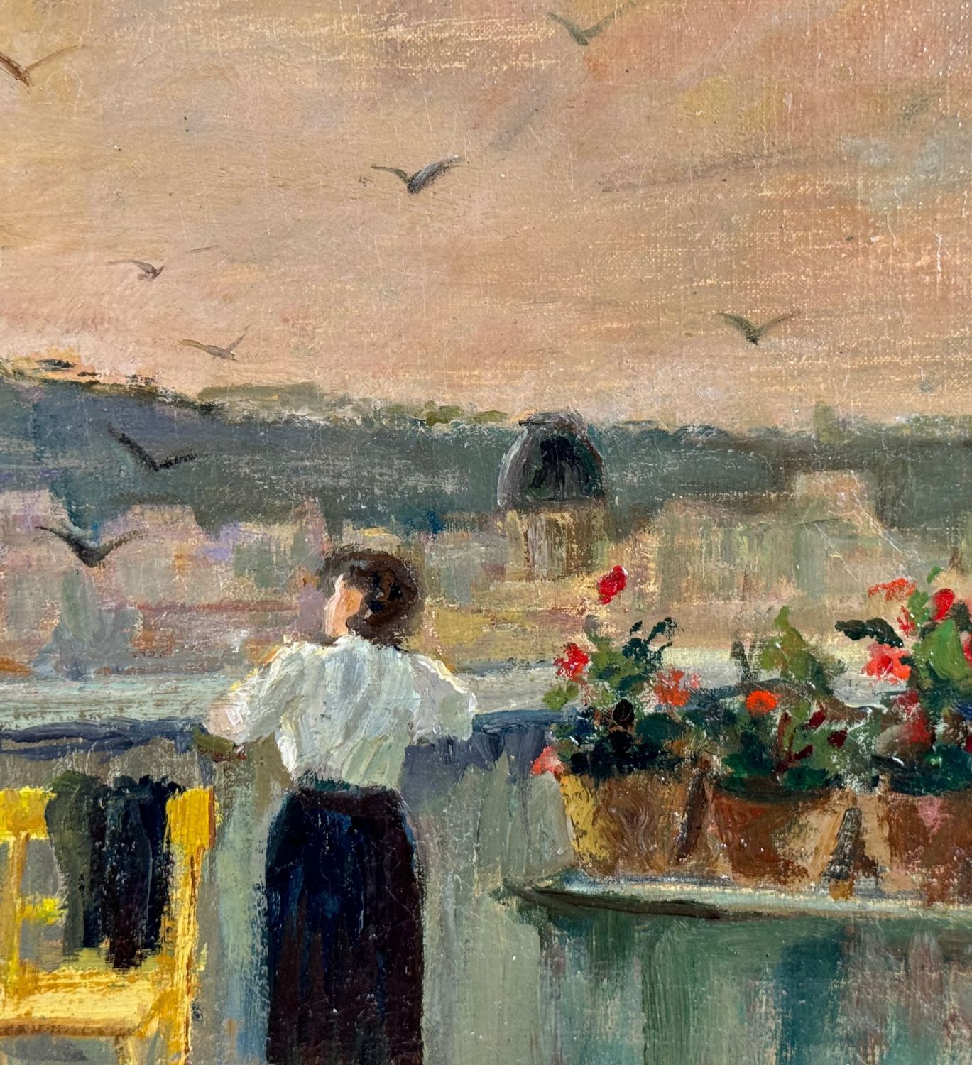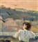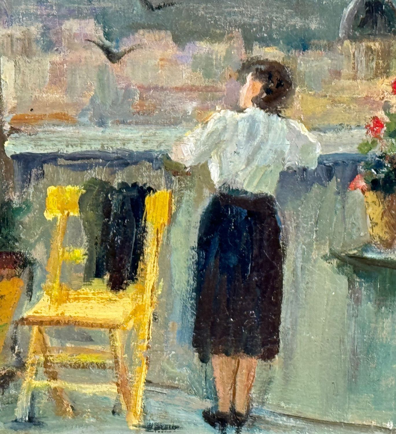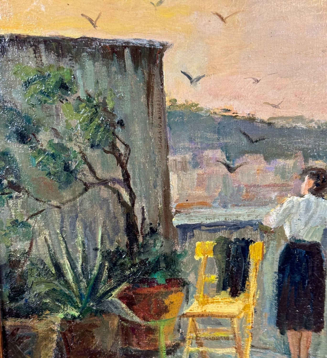 Dipinto olio su tela, periodo XX secolo scuola Italiana, raffigurante Donna in terrazza. Dimensioni compreso cornice: 56,5x46 cm. Dimensioni interno cornice: 41x31 cm. Reca firma in basso a destra da Angela Carugati (1881 - 1977). Opera in buone condizioni.