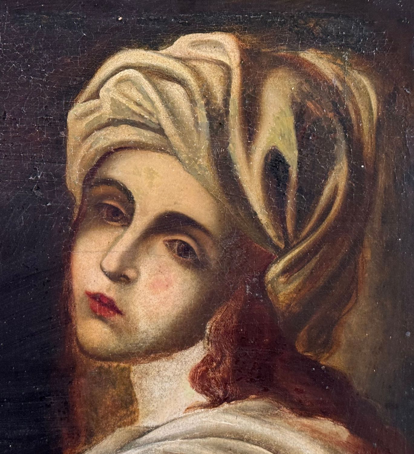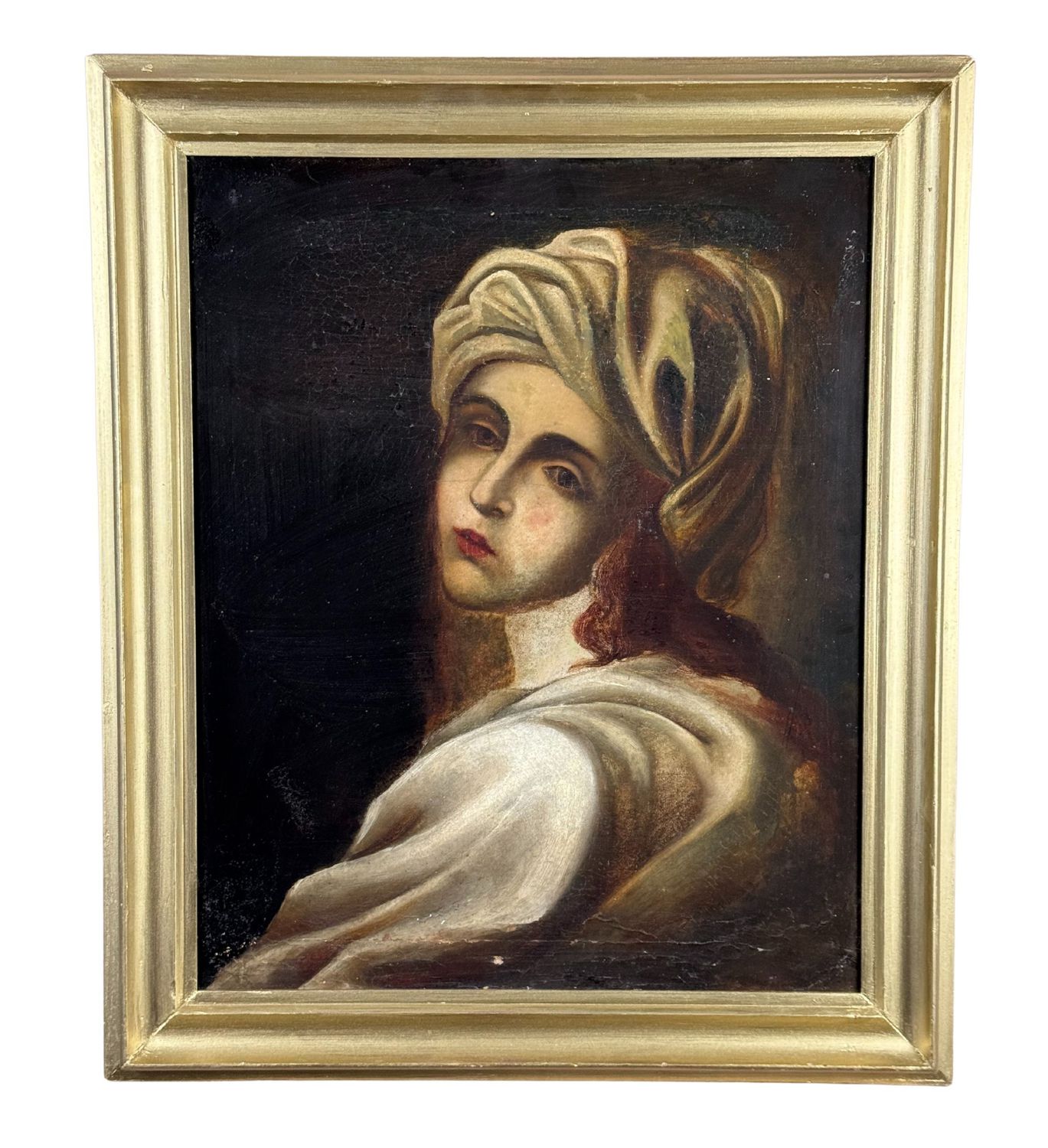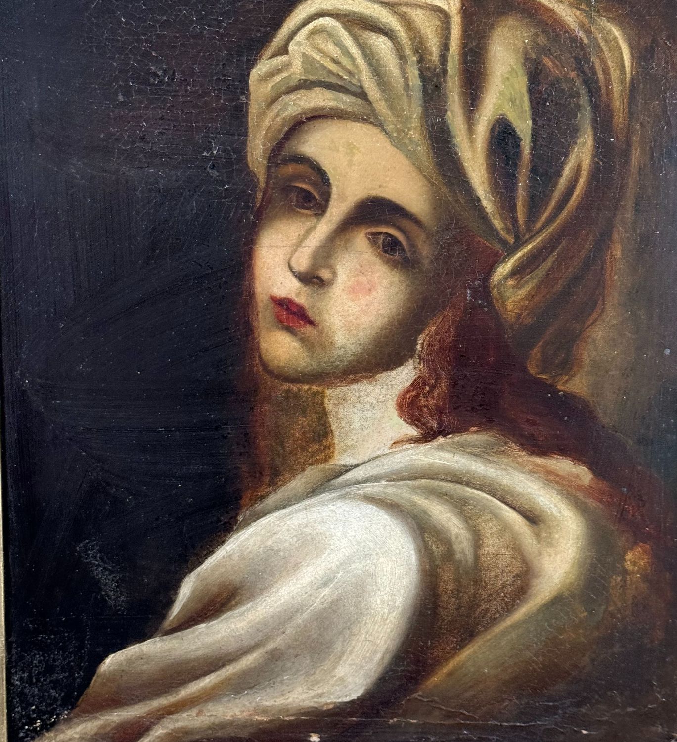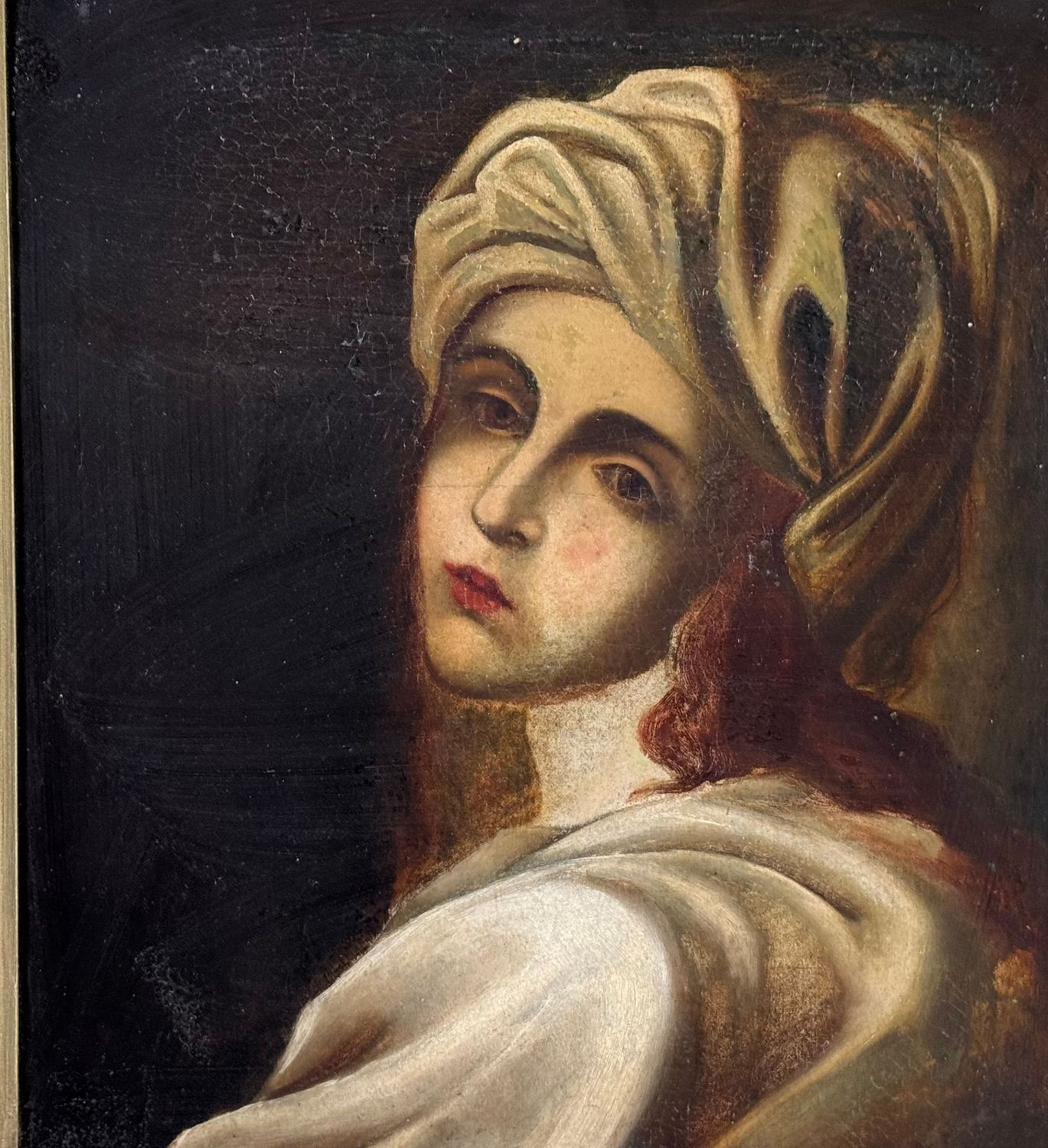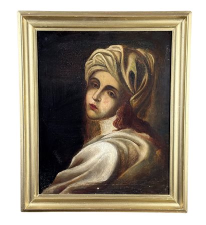 Dipinto olio su tela, periodo XVIII secolo scuola Italiana, raffigurante Ritratto di Beatrice Ceci nella maniera di Guido Reni. Dimensioni compreso cornice: 66,5x56 cm. Dimensioni interno cornice: 45x56 cm. Da artista anonimo. Opera in discrete condizioni con vari punti di restauro.
