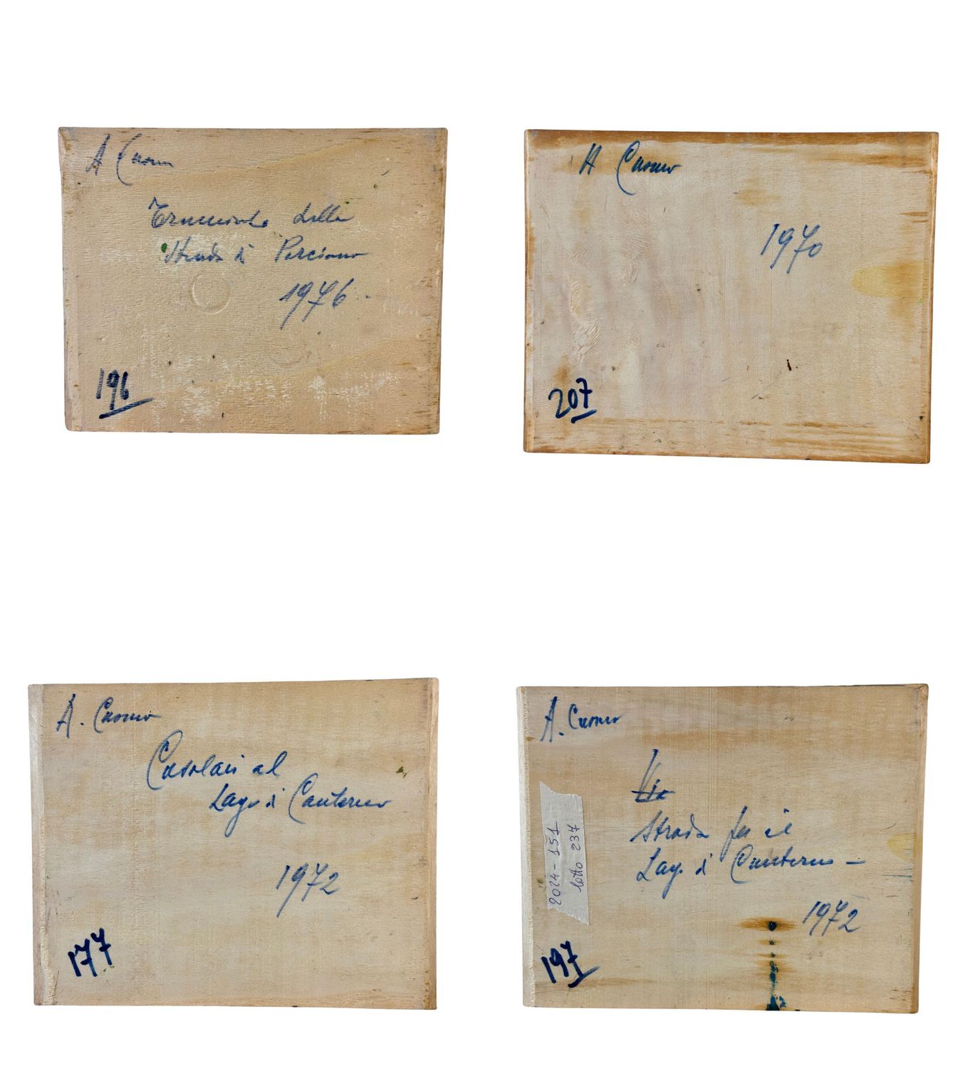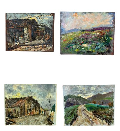 Lotto di 4 dipinti olio su tavola da A. Cuomo. Dimensioni cadauno: 20x25 cm. Opere in buone condizioni.